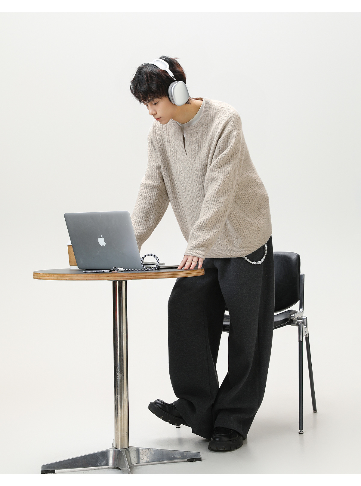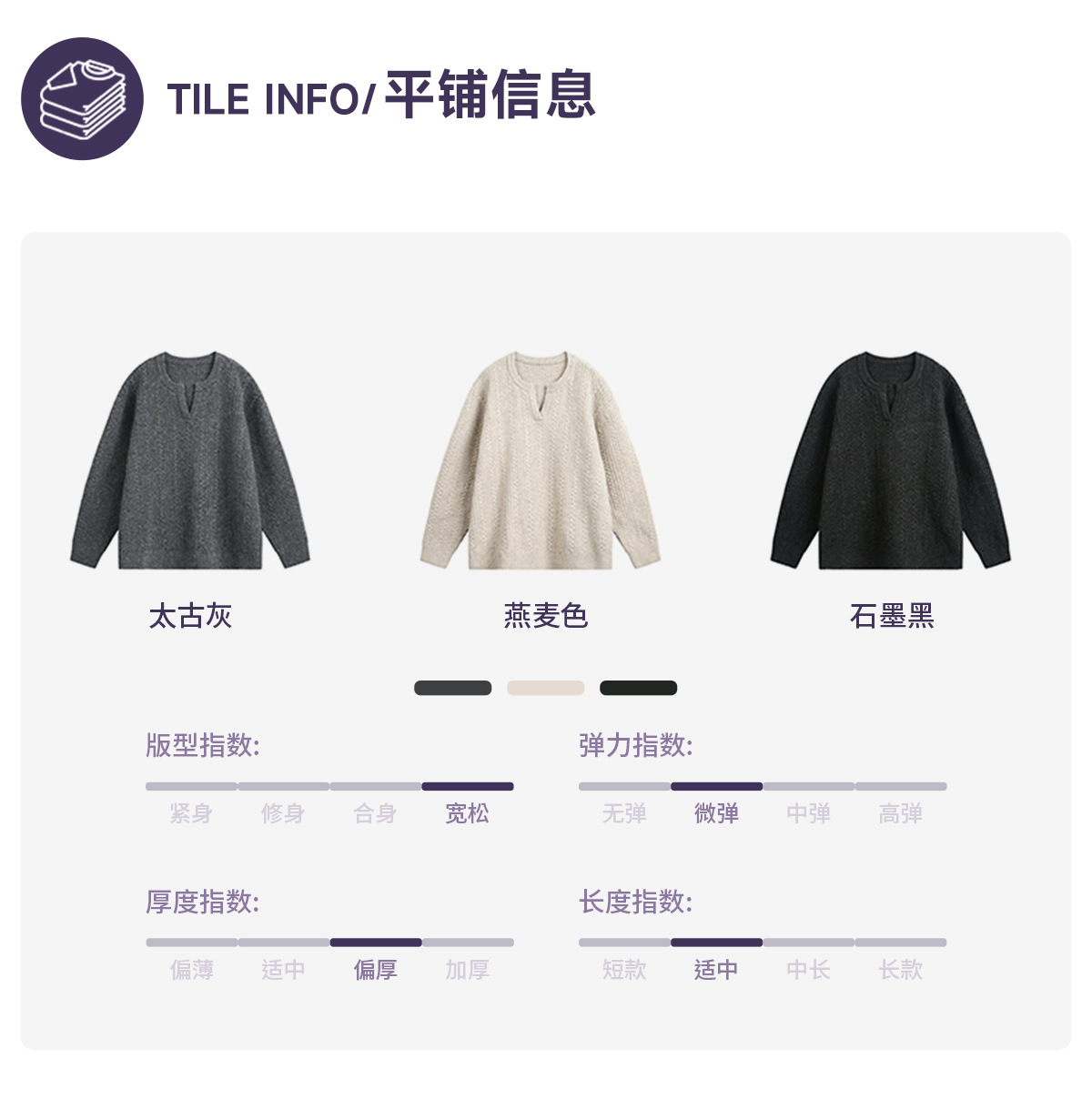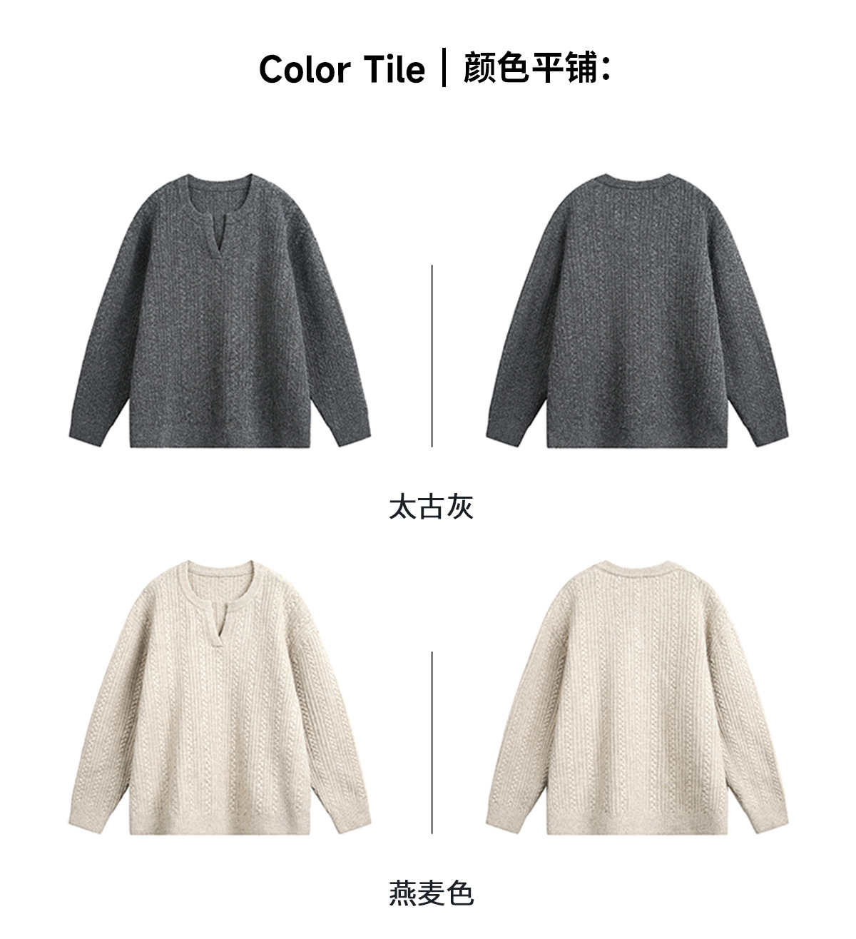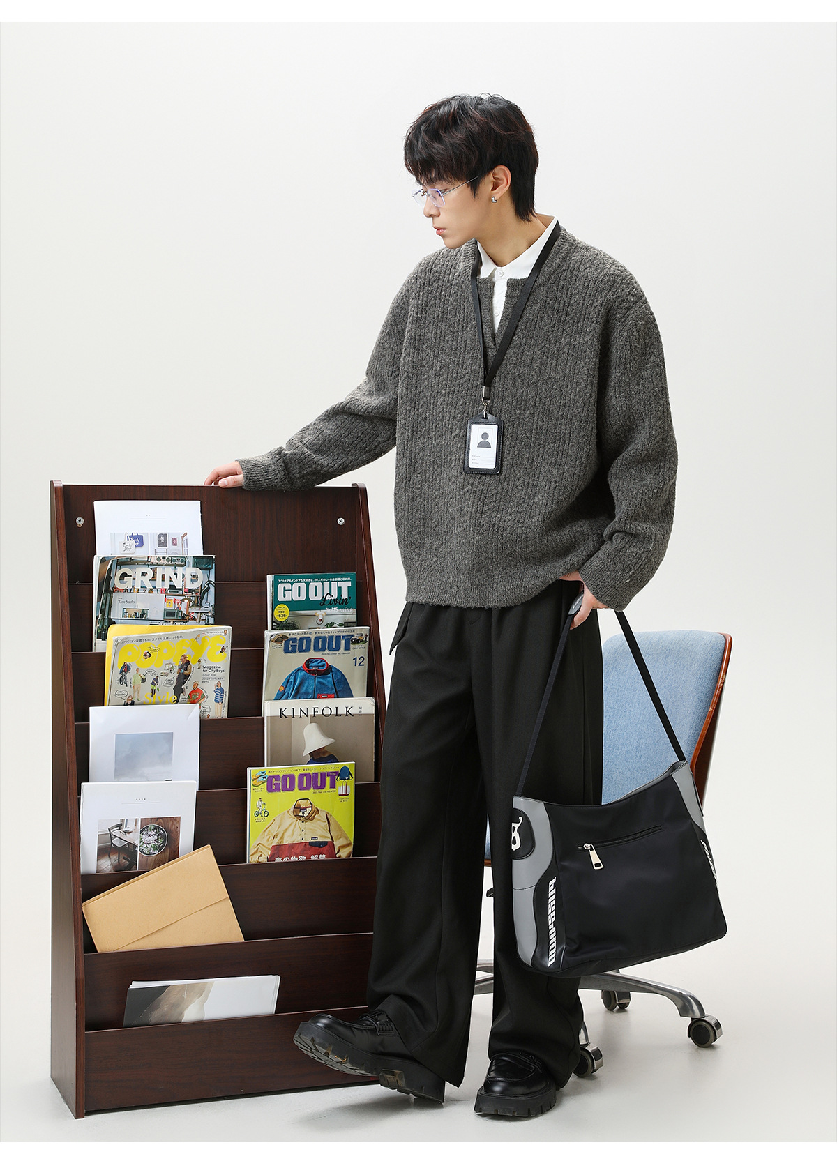 SYP日系不系男生秋冬立體絞花肌理復古寬松重磅小v領毛衣針織衫