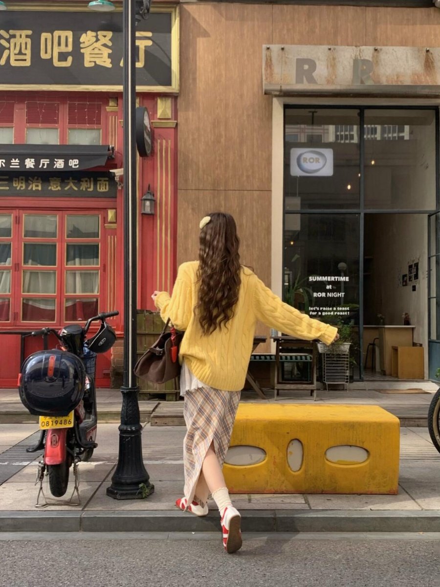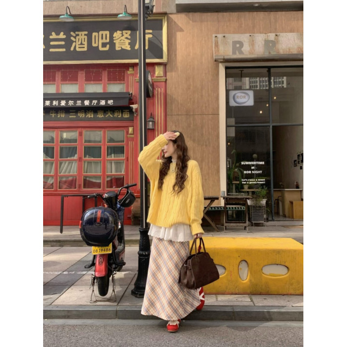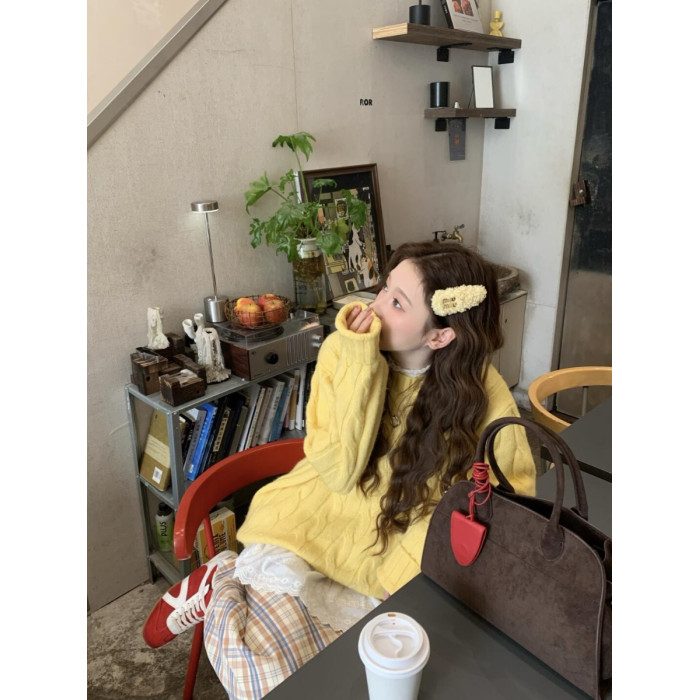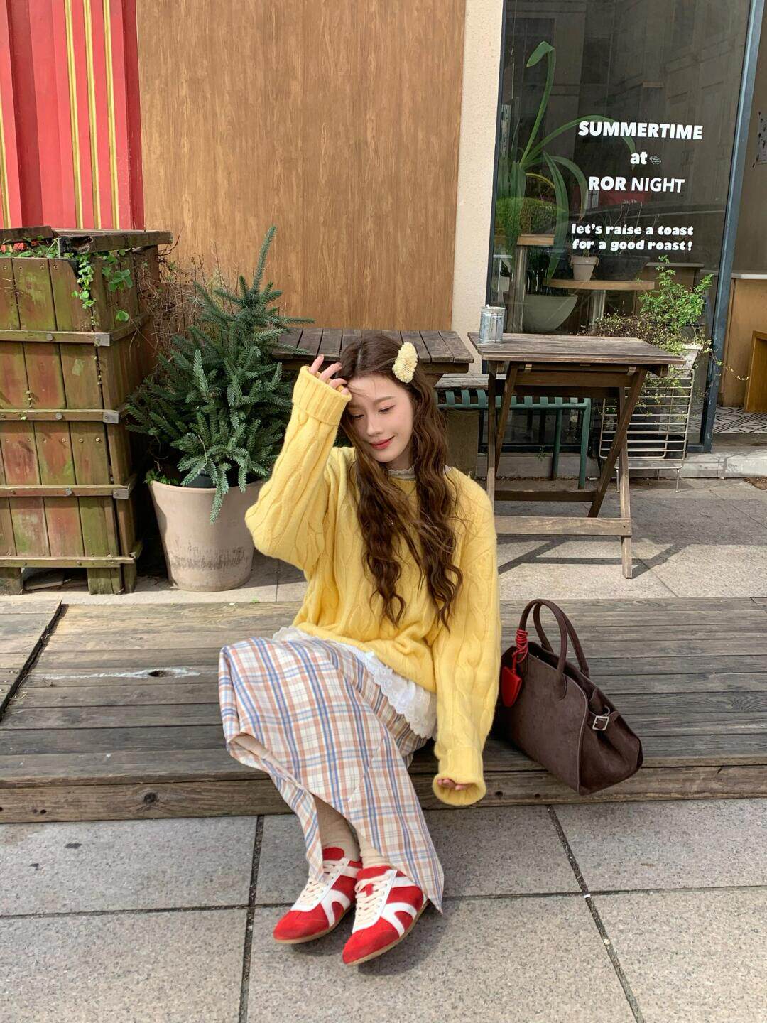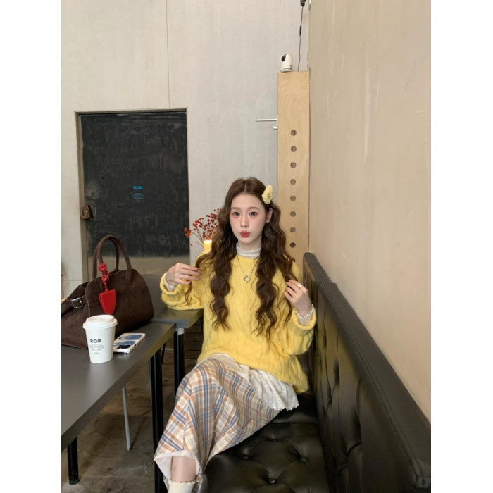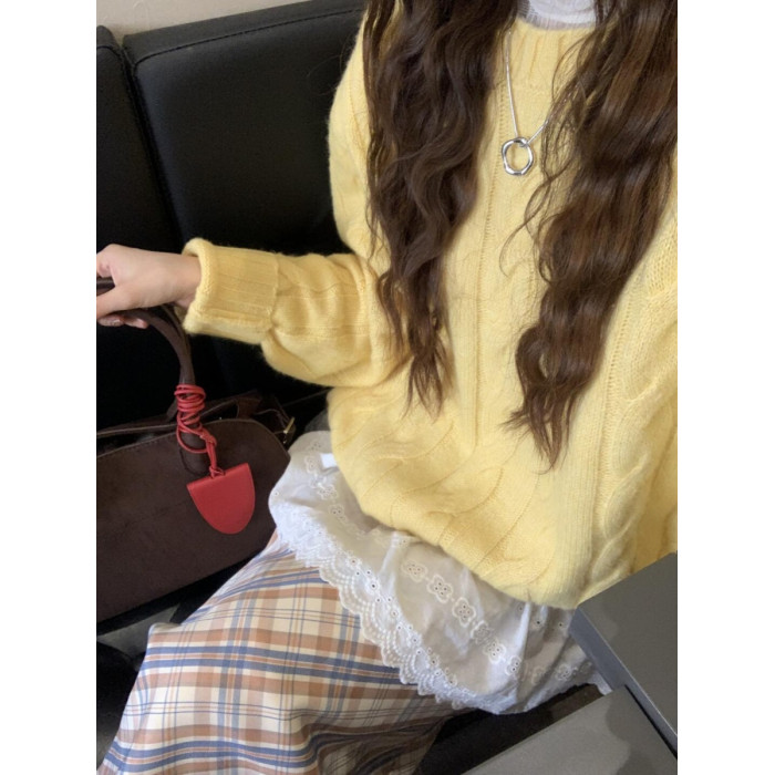 黃色奶fufu超好看麻花毛衣高級感冬季加厚慵懶軟糯寬松外穿上衣女