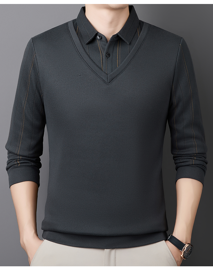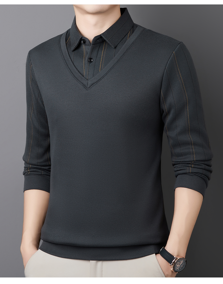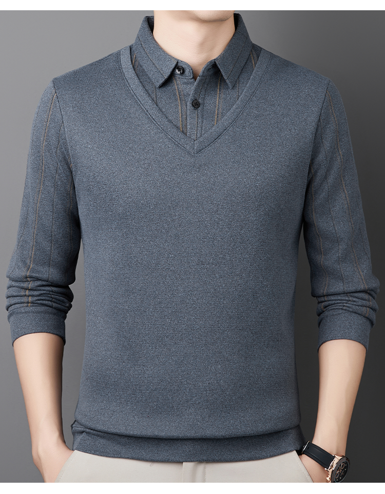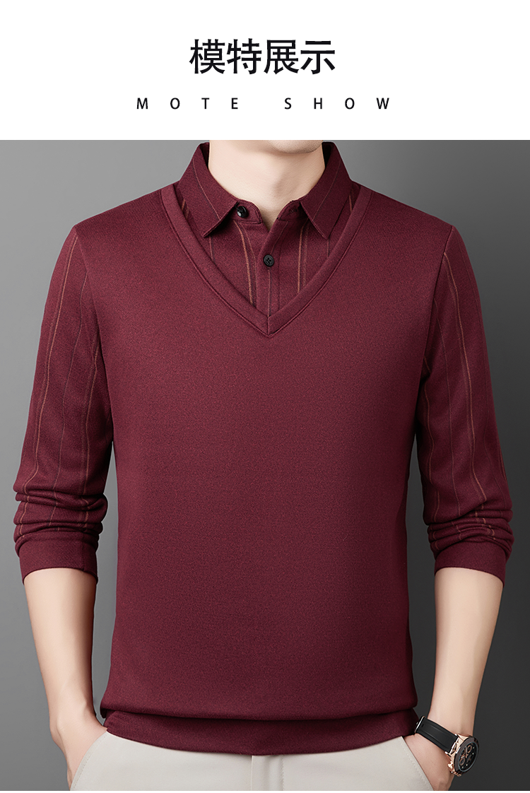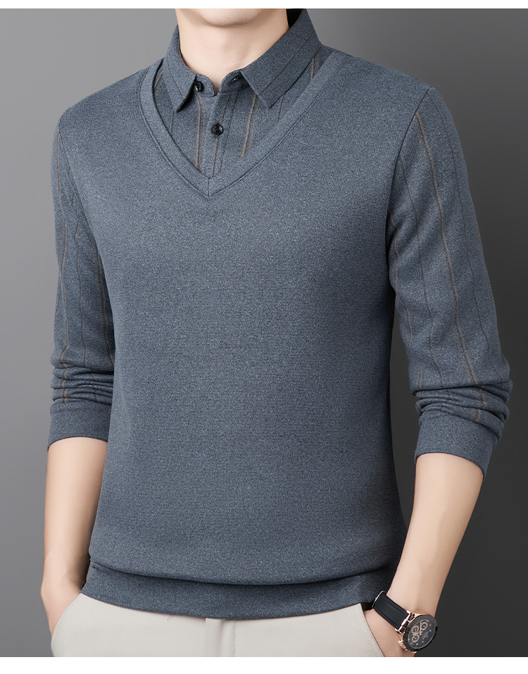 培矇2025年冬季新款假兩件保暖針織衫商務休閒加絨加厚男上衣毛衣