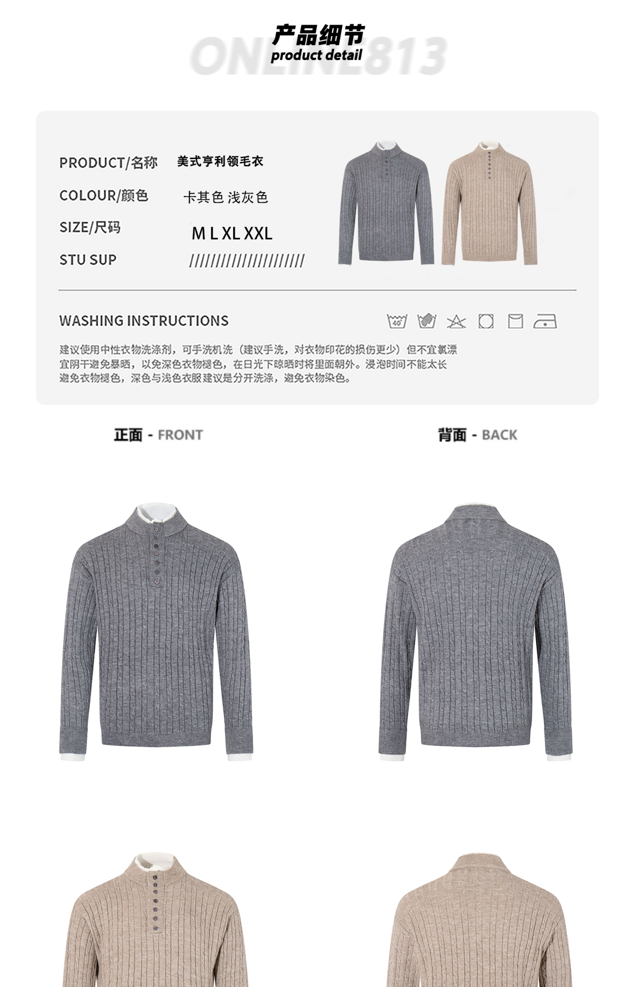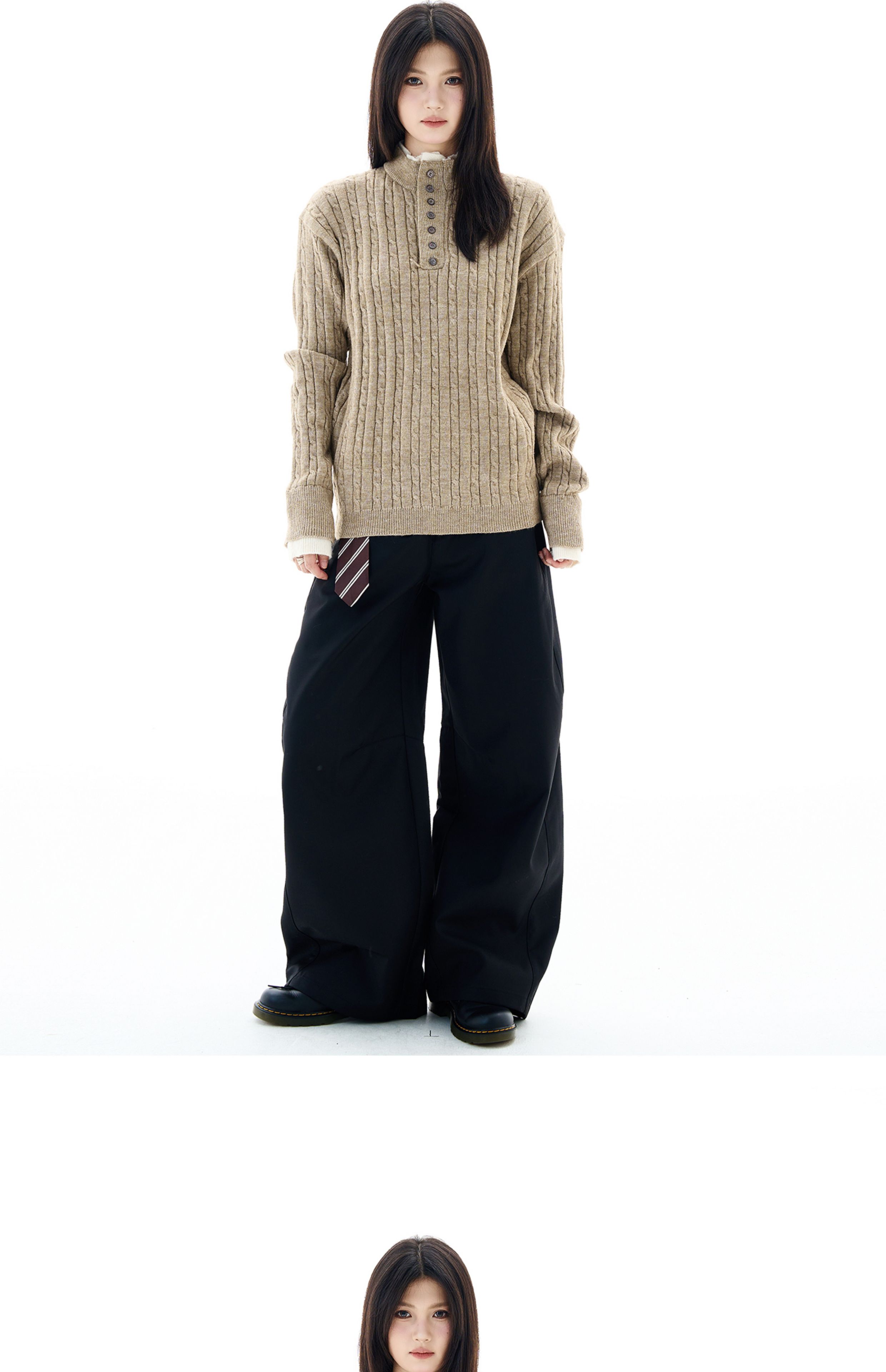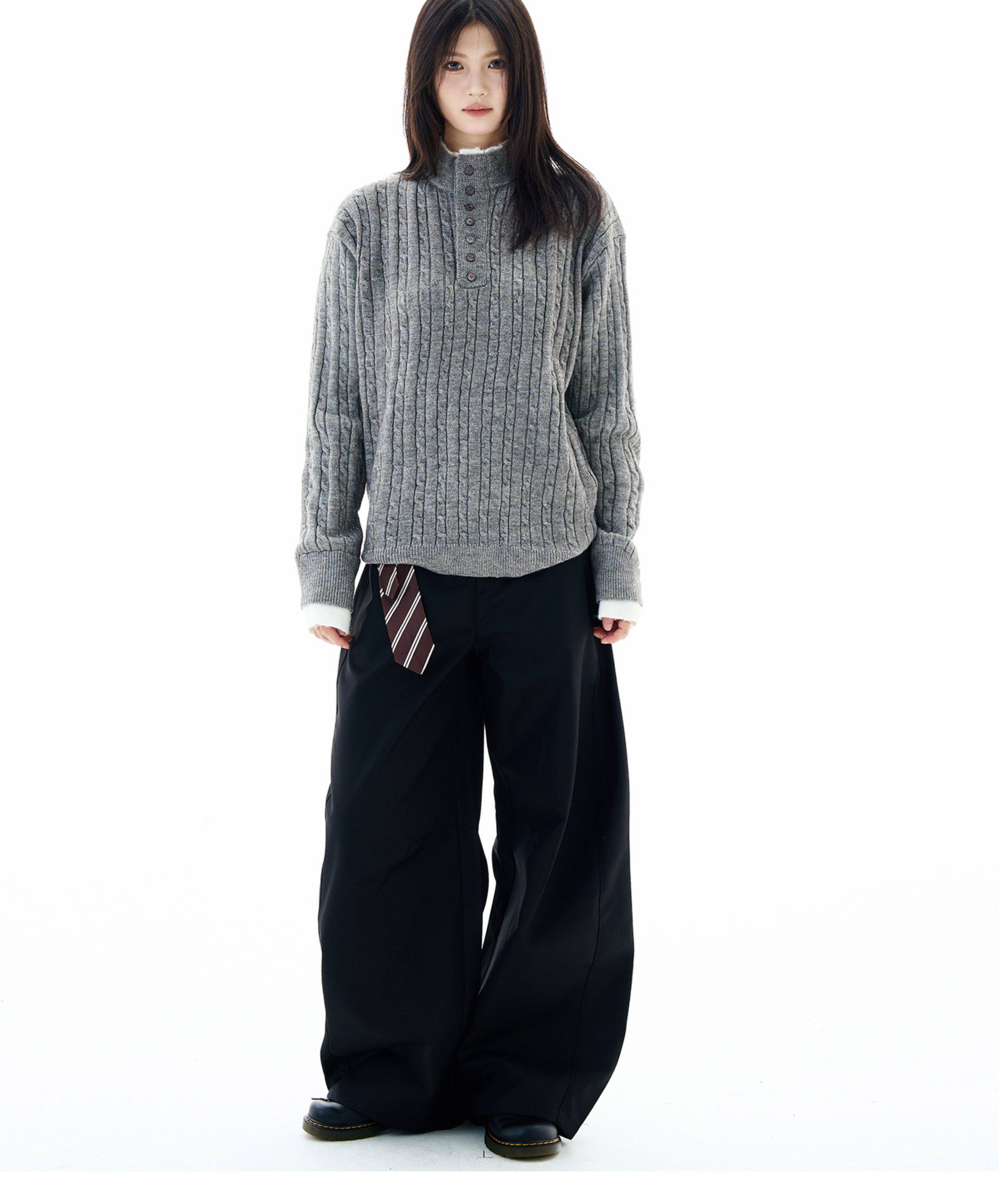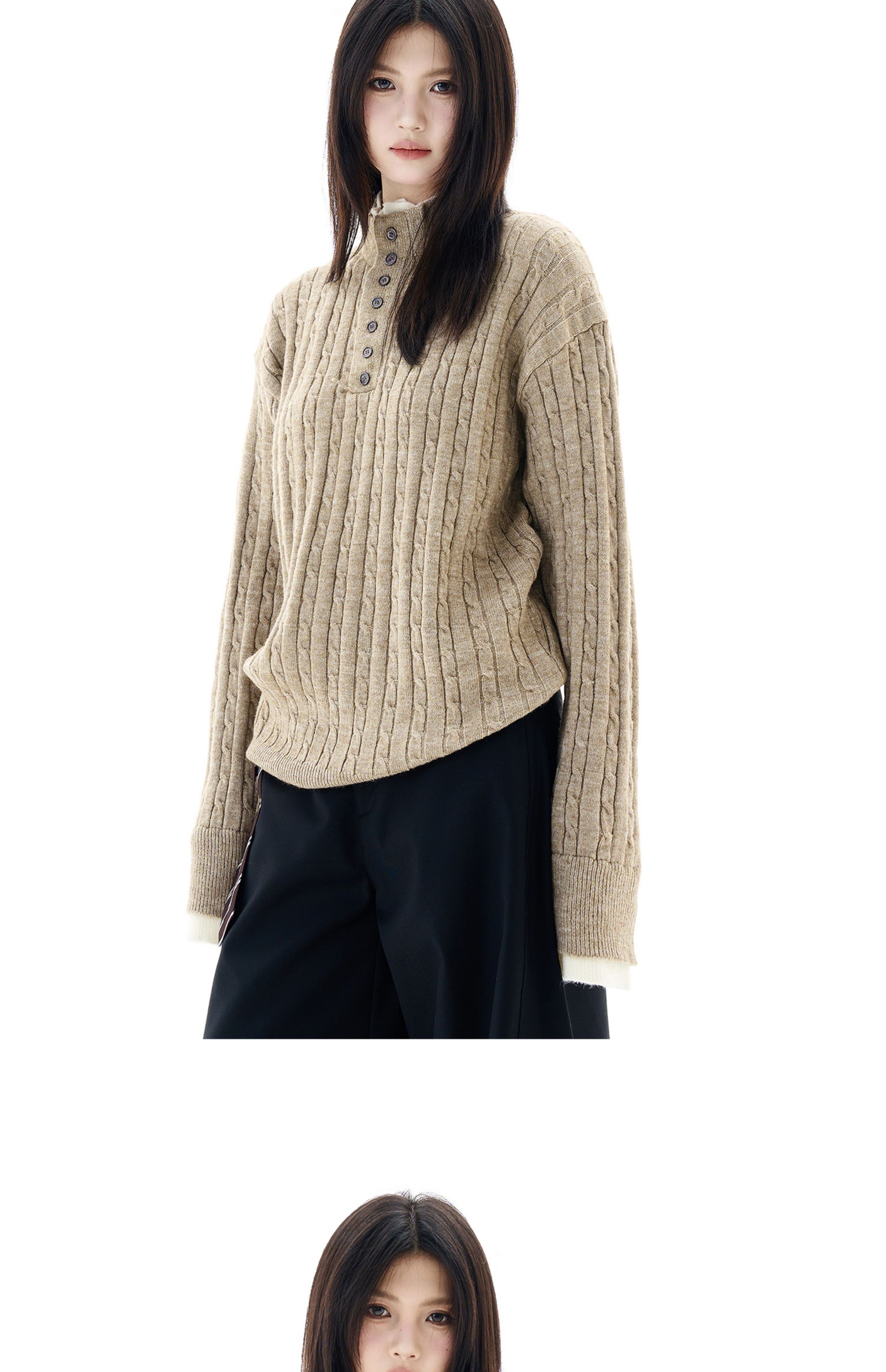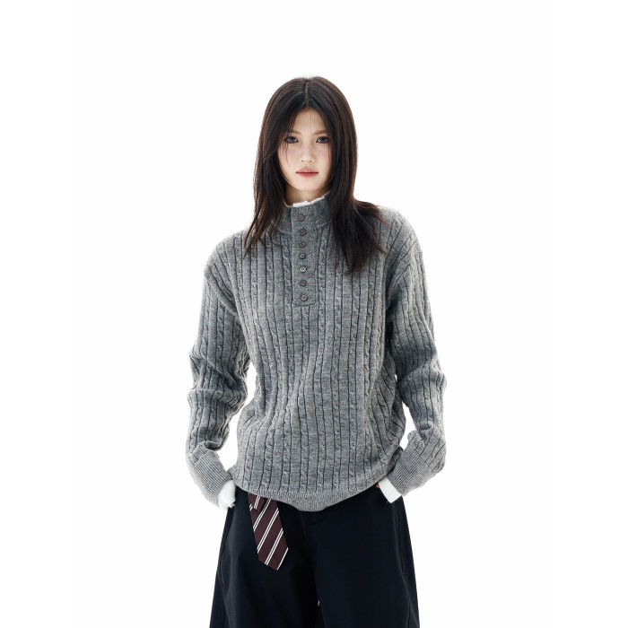 OEOT美式假兩件設計麻花亨利領毛衣男女慵懶高級感寬松套頭針織衫