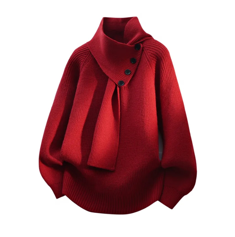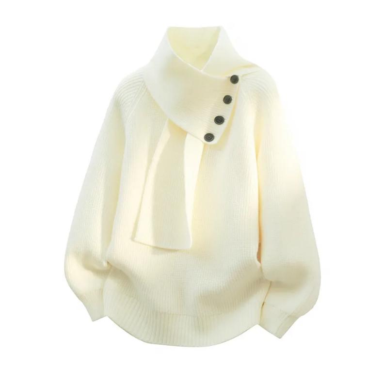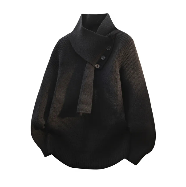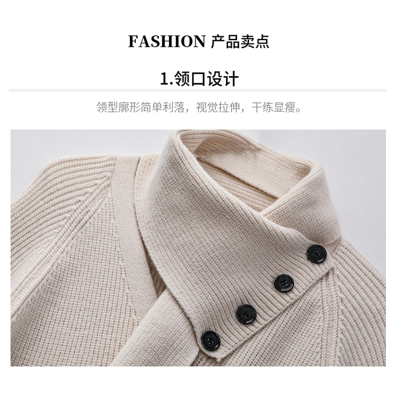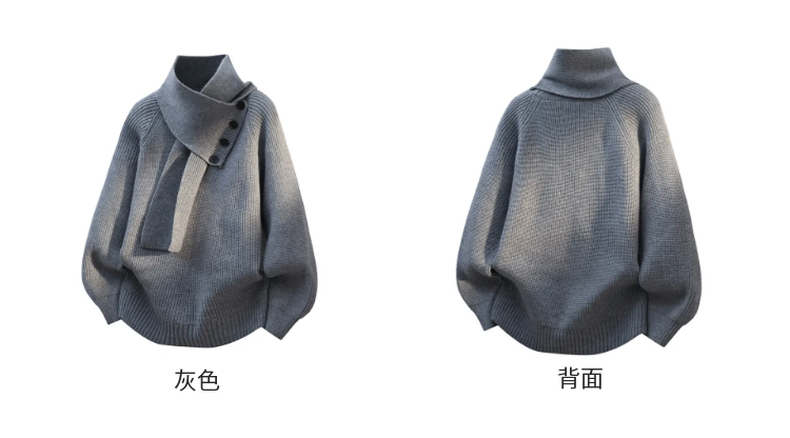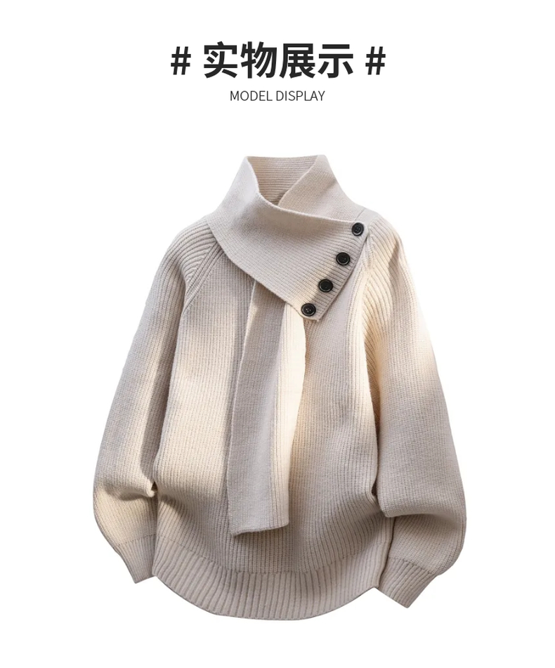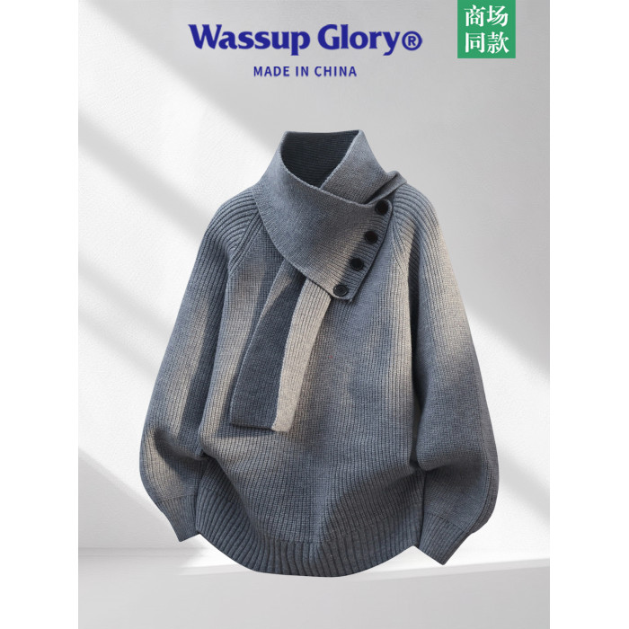 WASSUP GLORY設計感圍巾領針織衫男冬季2025新款寬松保暖套頭毛衣