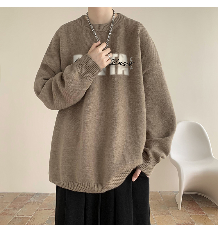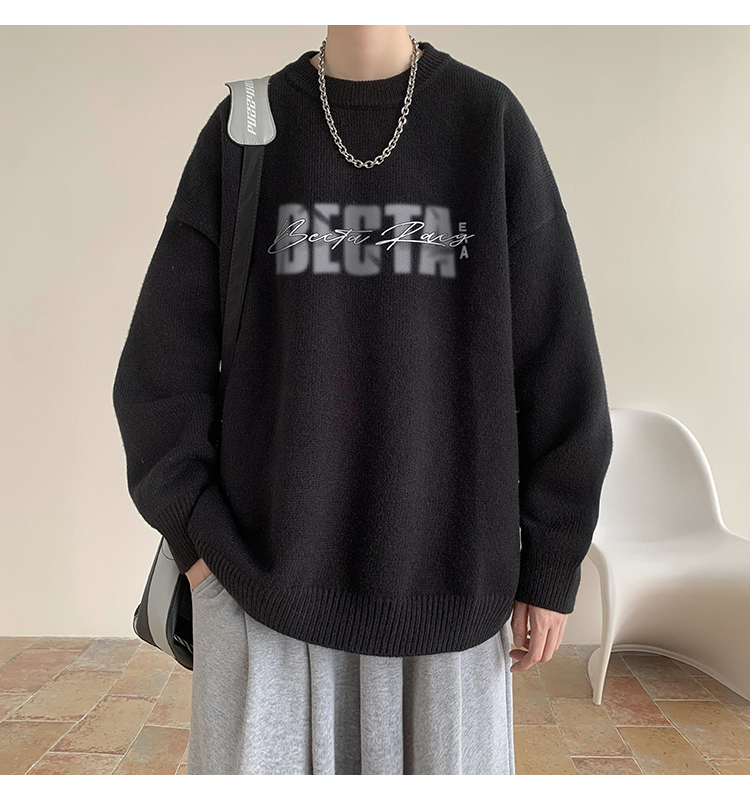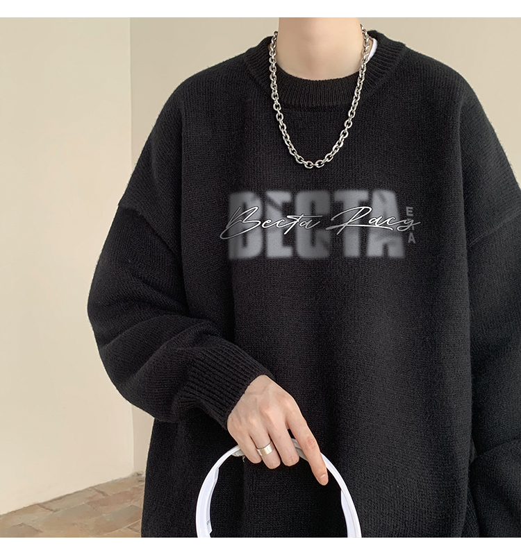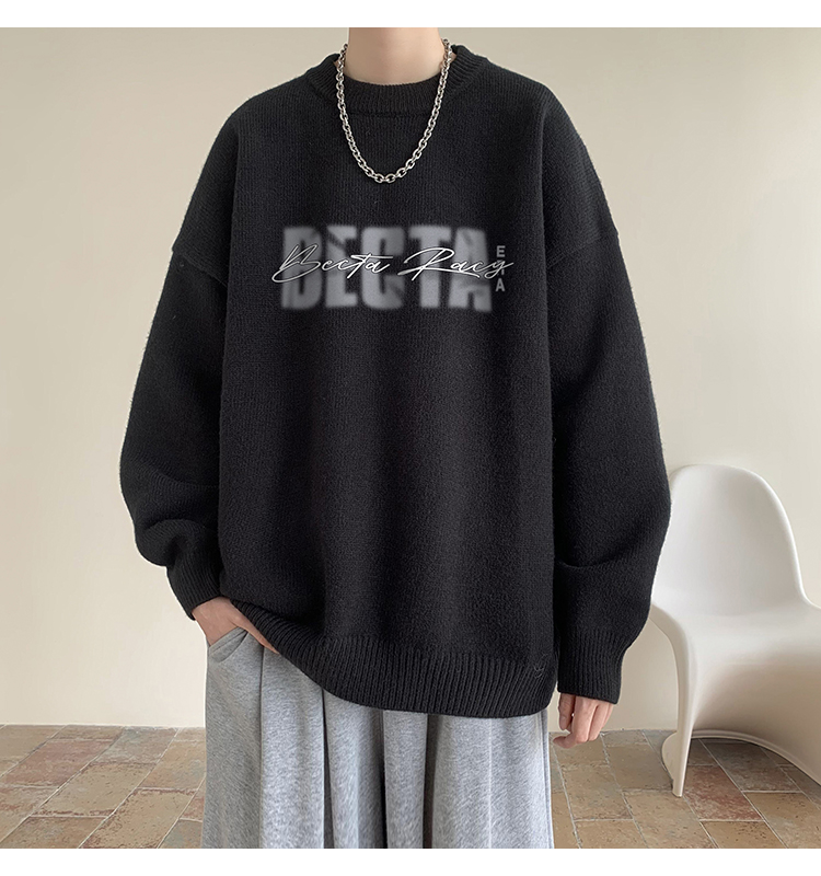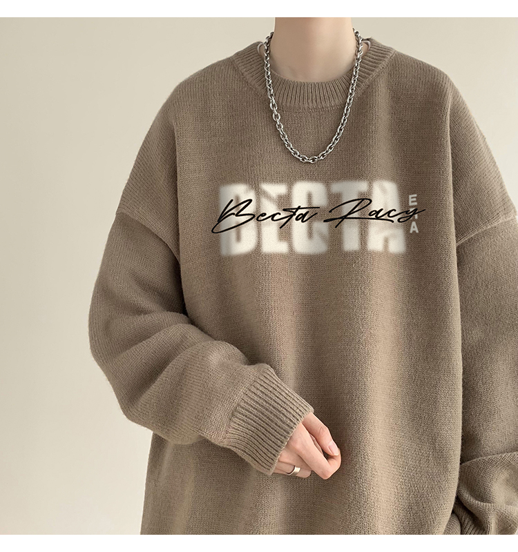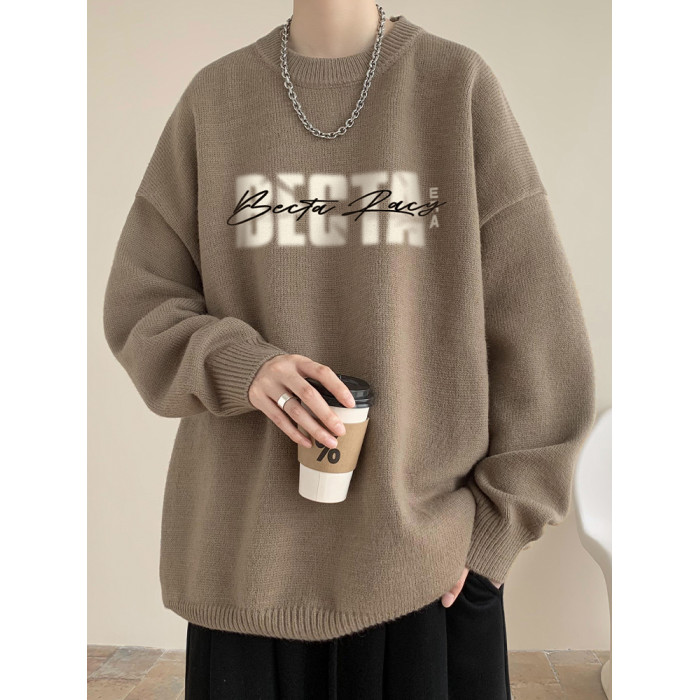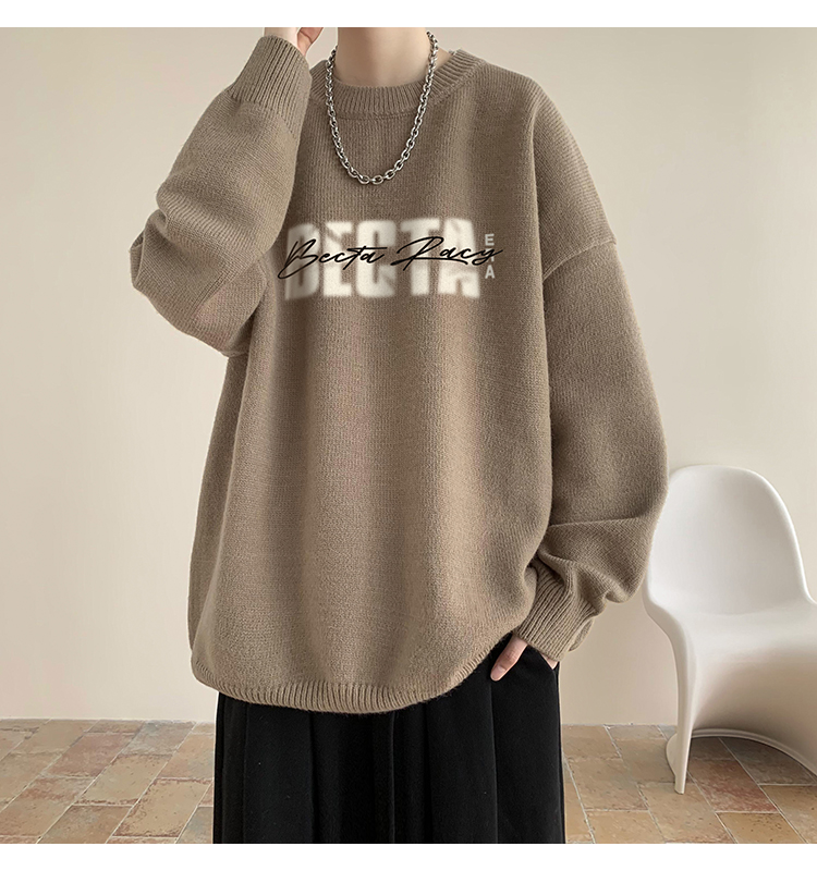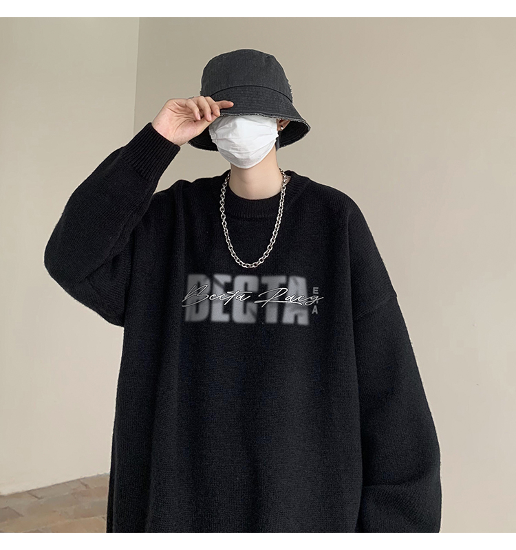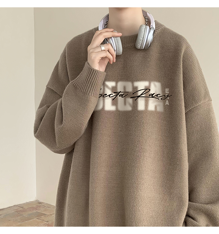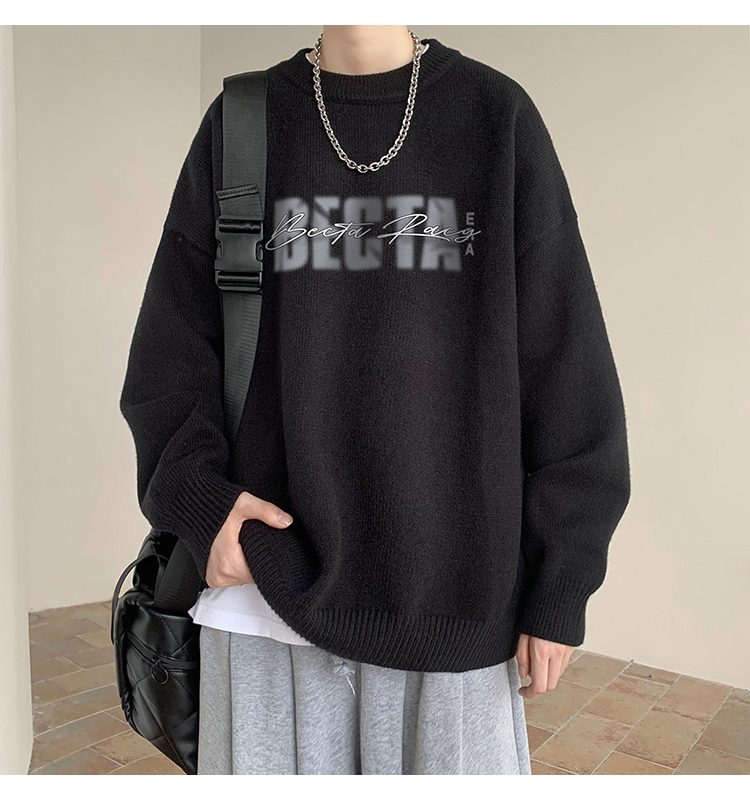 字母印花毛衣男秋冬季美式潮牌寬松圓領套頭針織衫慵懶風線衣外套