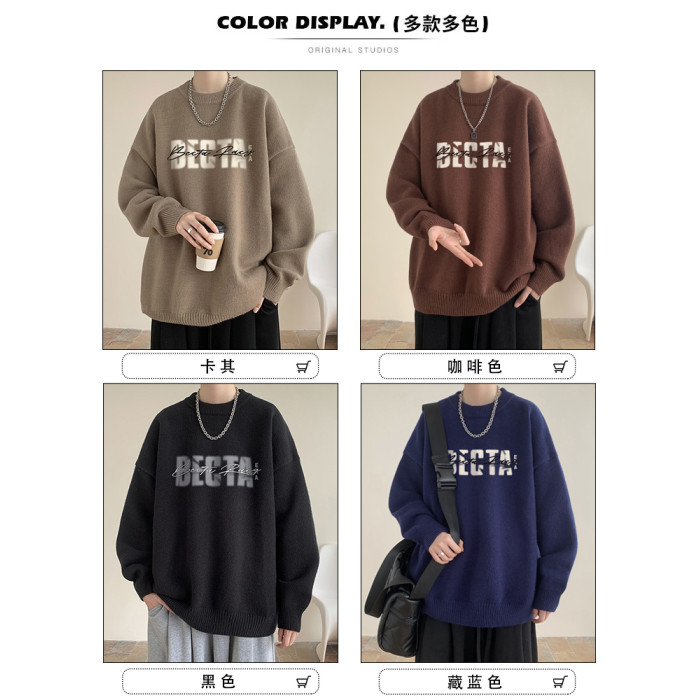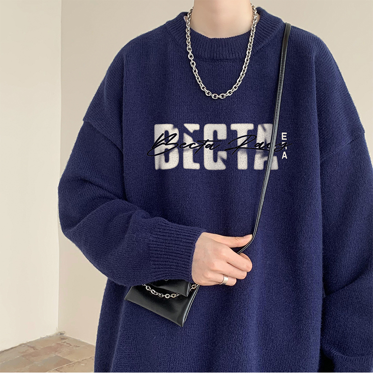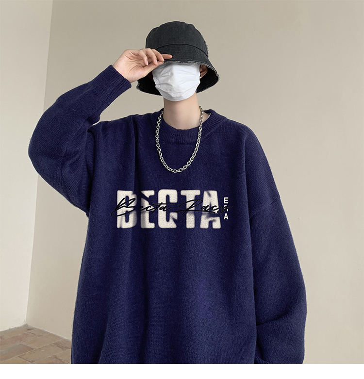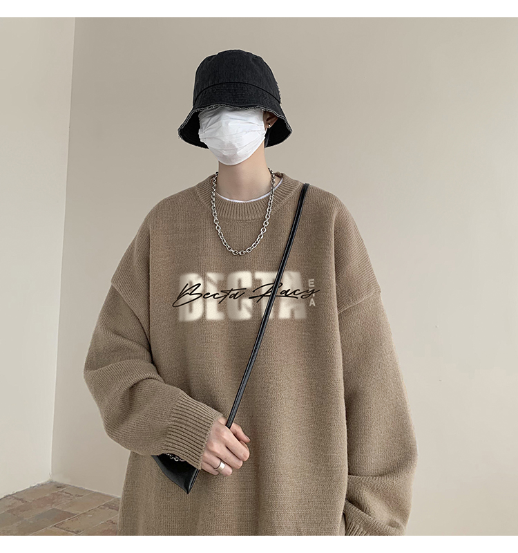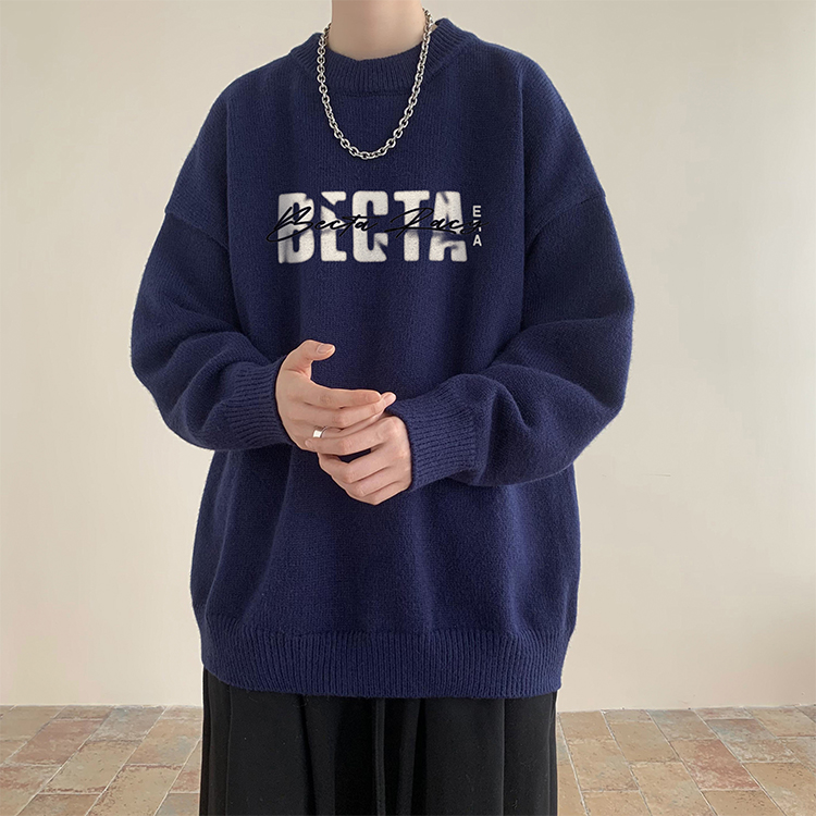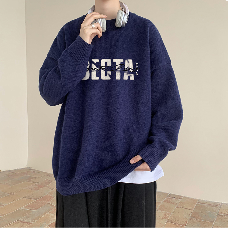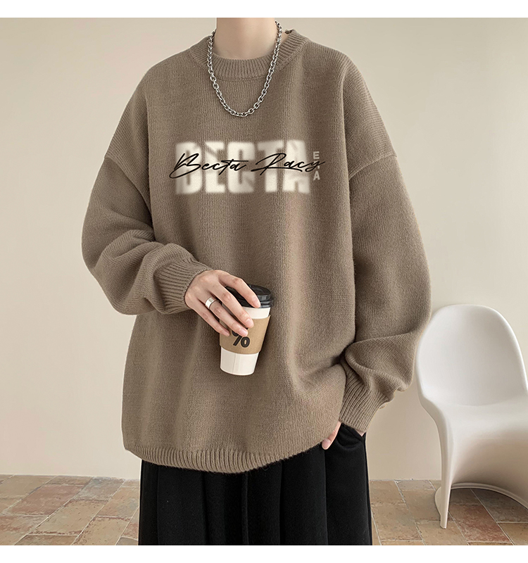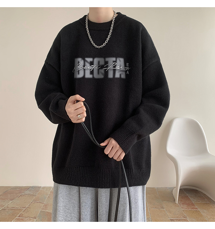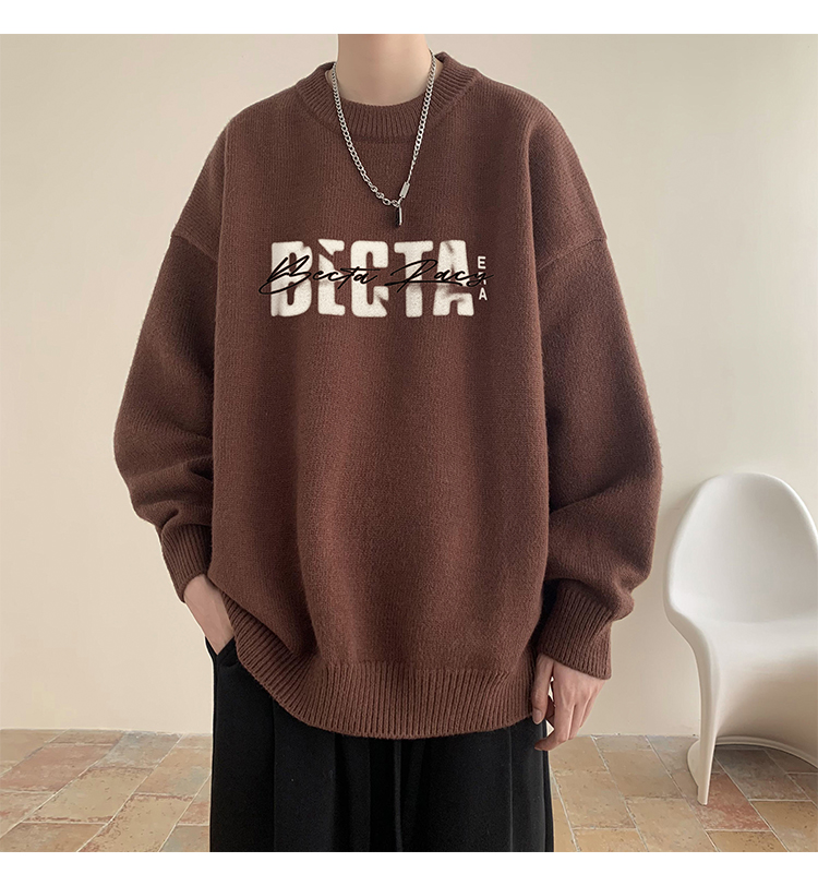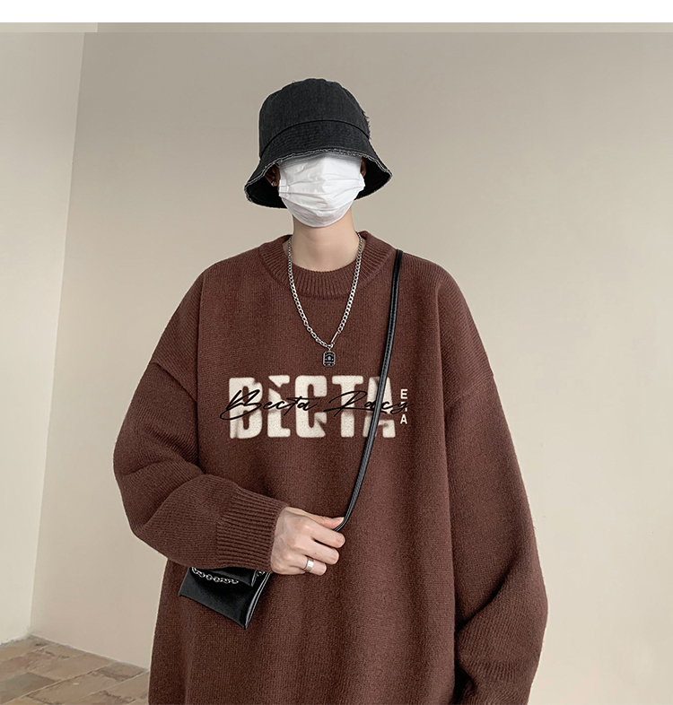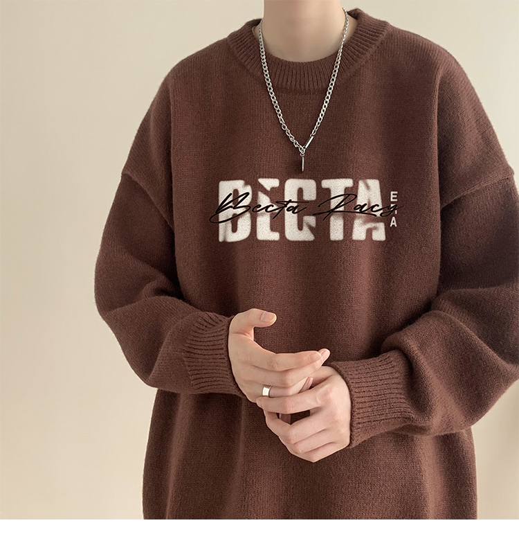 字母印花毛衣男秋冬季美式潮牌寬松圓領套頭針織衫慵懶風線衣外套
