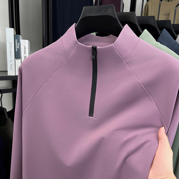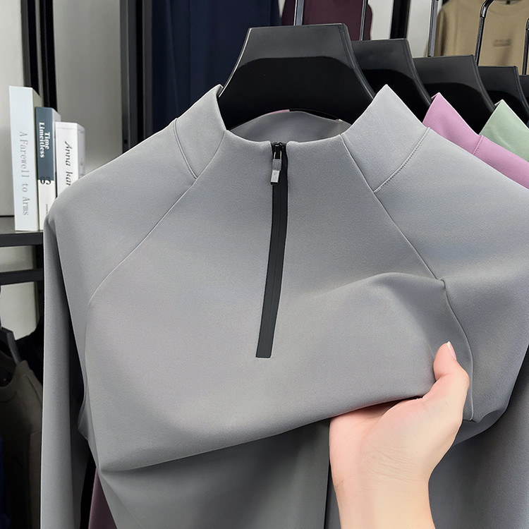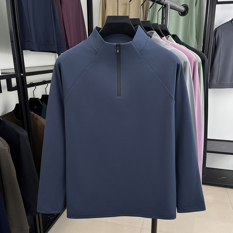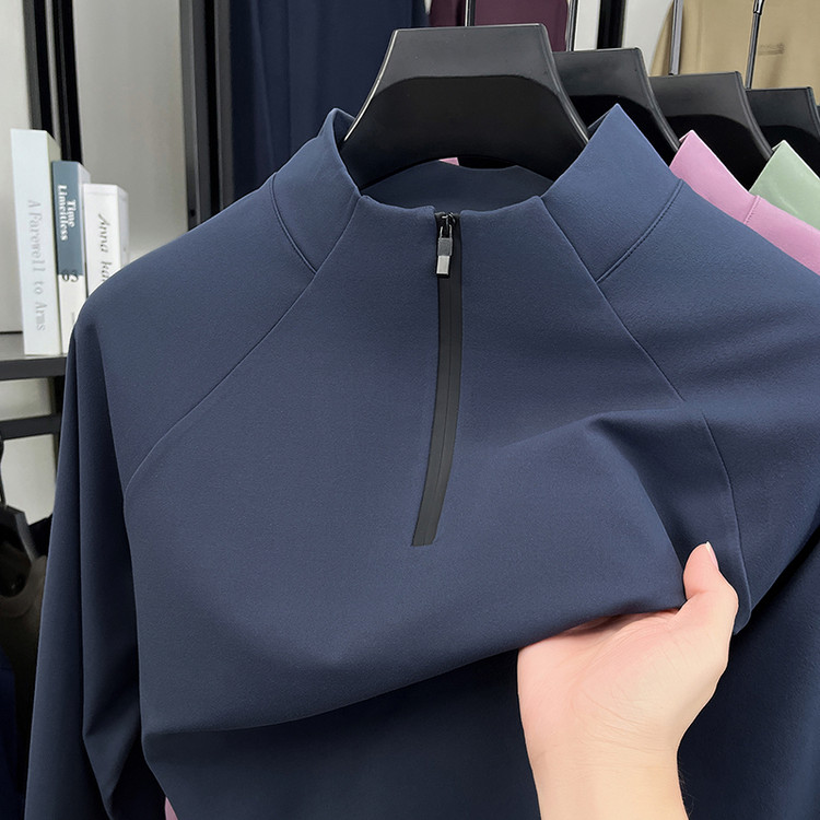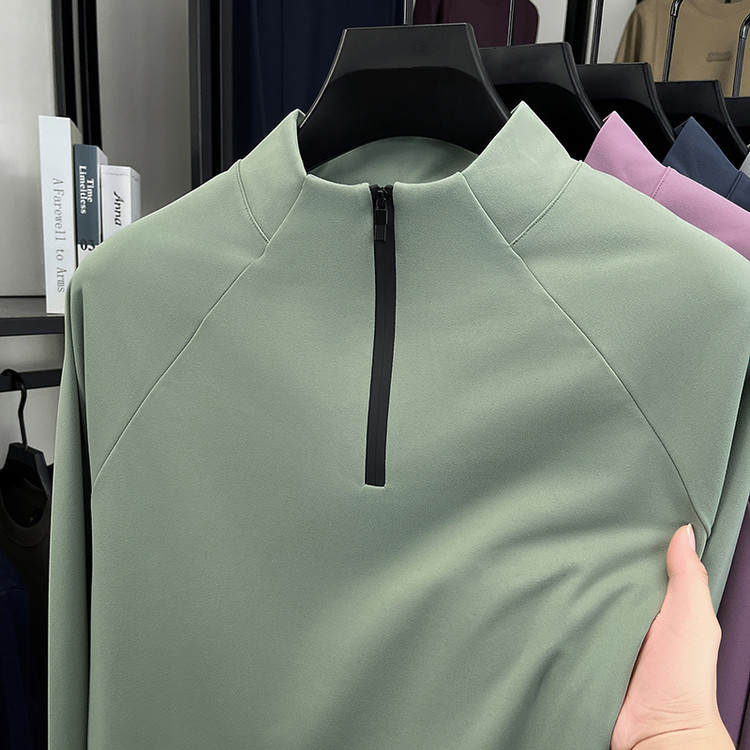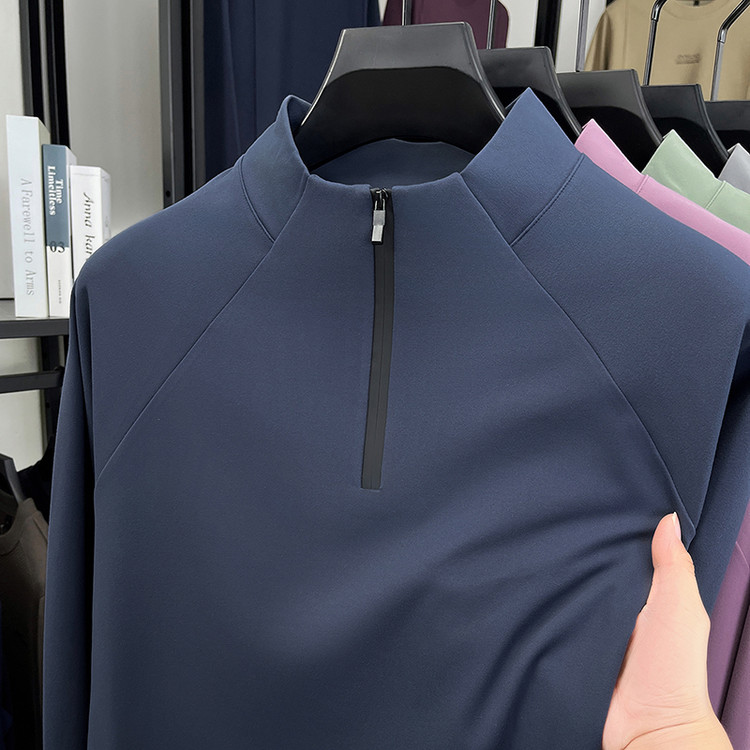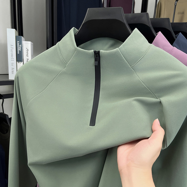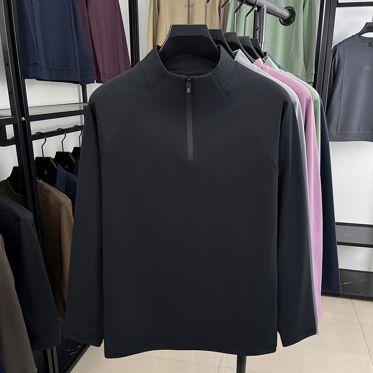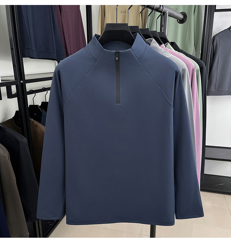 某桑特平替戶外男裝長袖T恤春秋拉鍊時尚立領騎行服跑步健身速乾