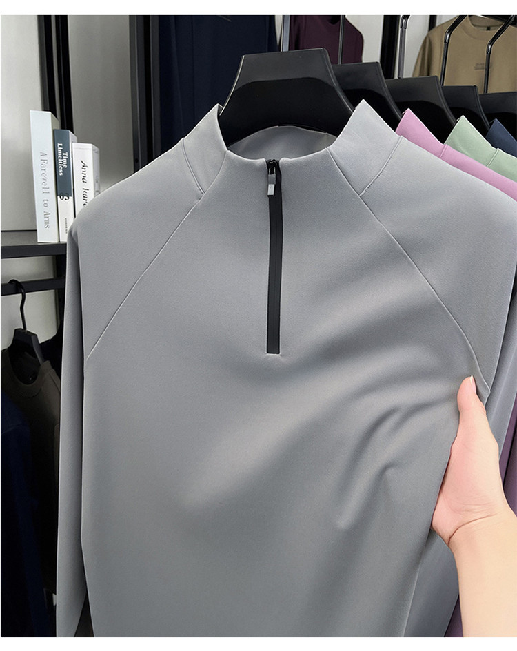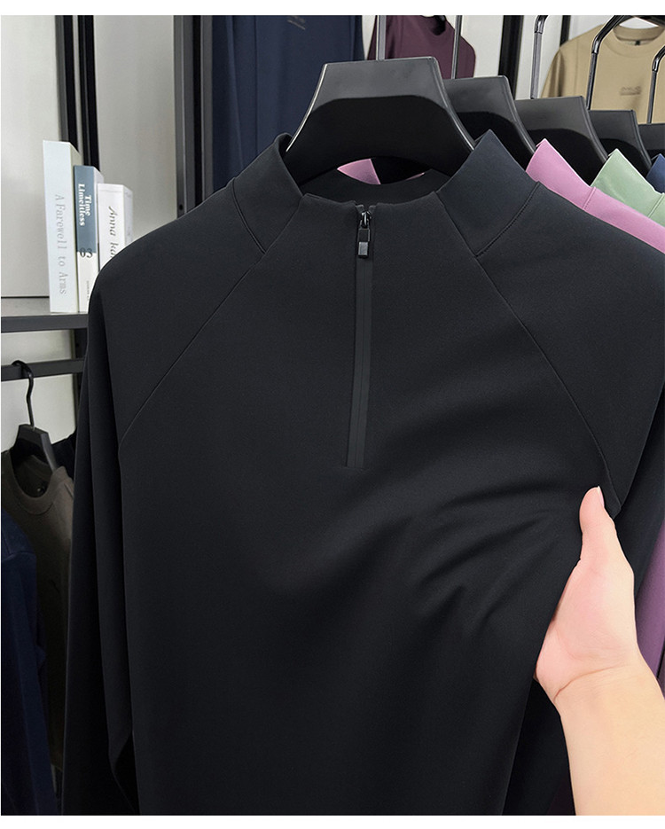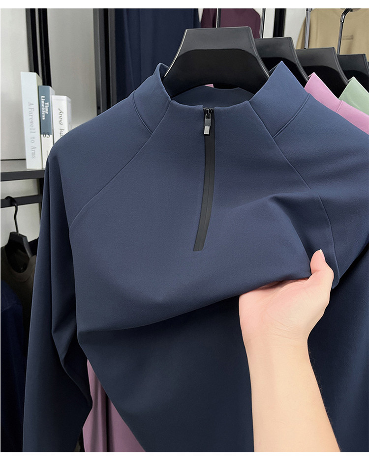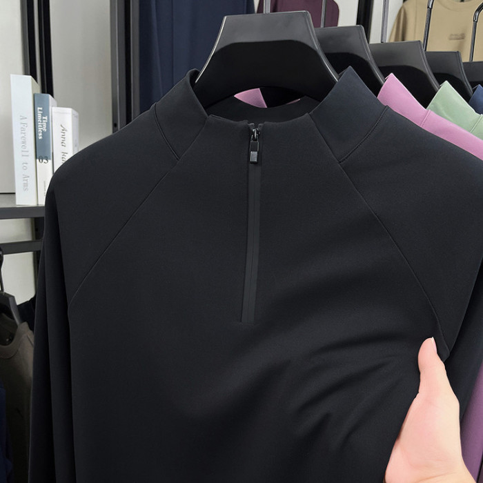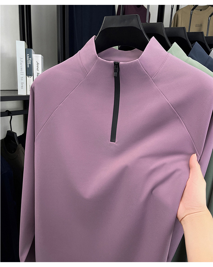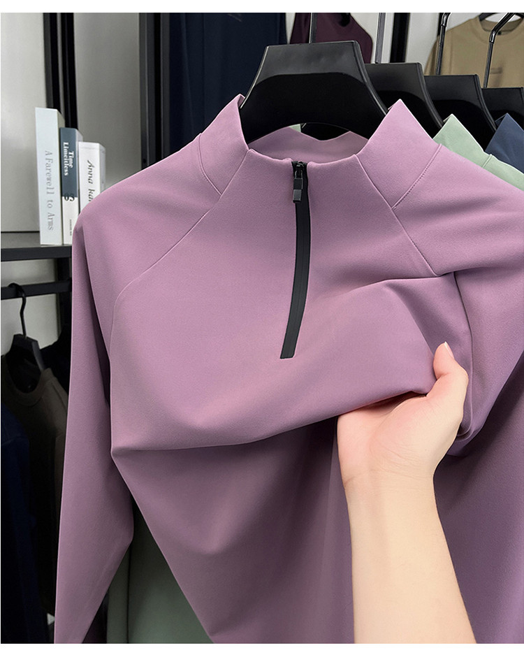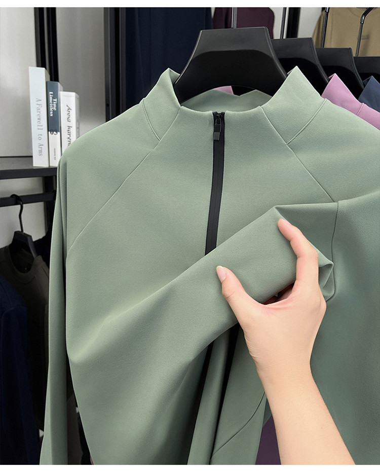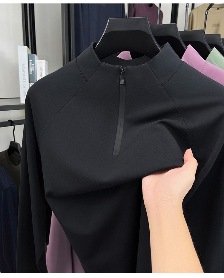 某桑特平替戶外男裝長袖T恤春秋拉鍊時尚立領騎行服跑步健身速乾