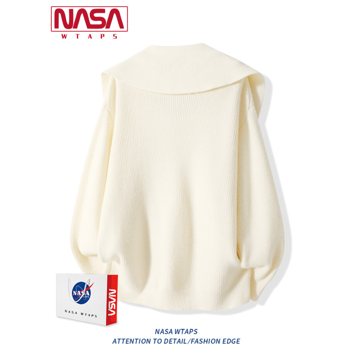 NASA WTAPS美式秋季高級感圍領毛衣男女款休閒潮牌圓領設計感線衣