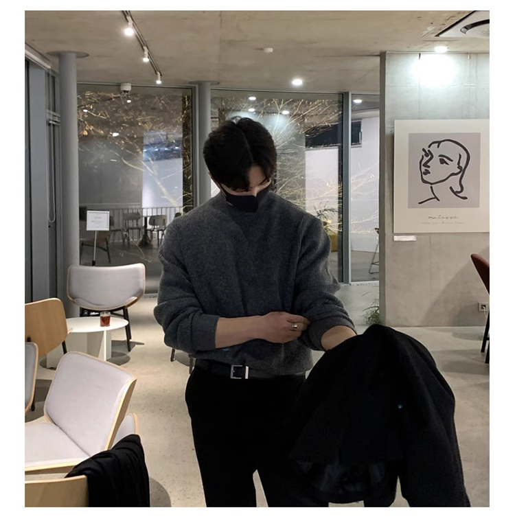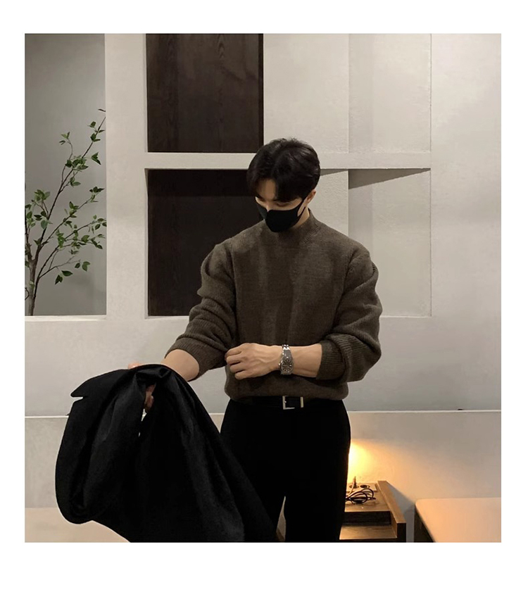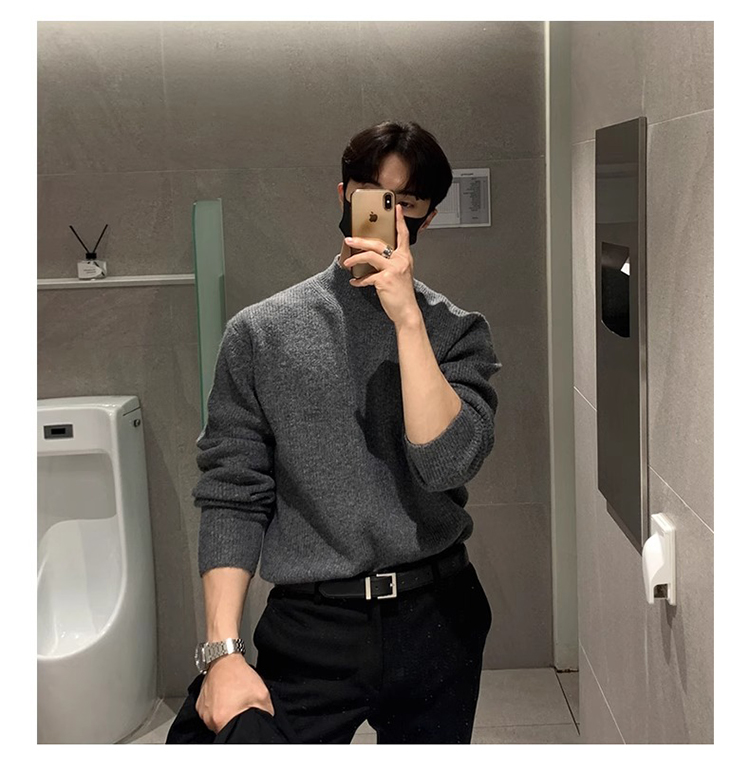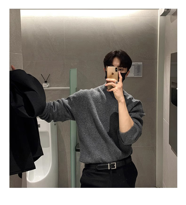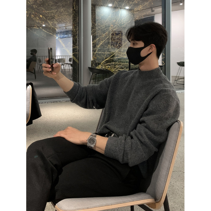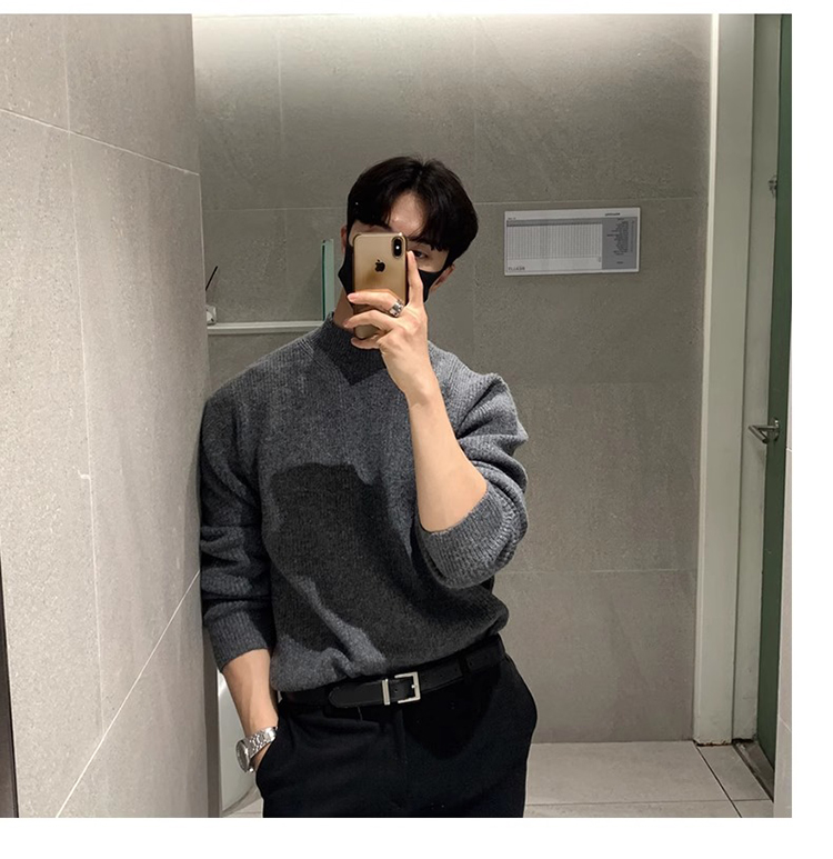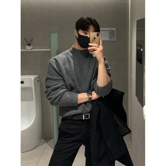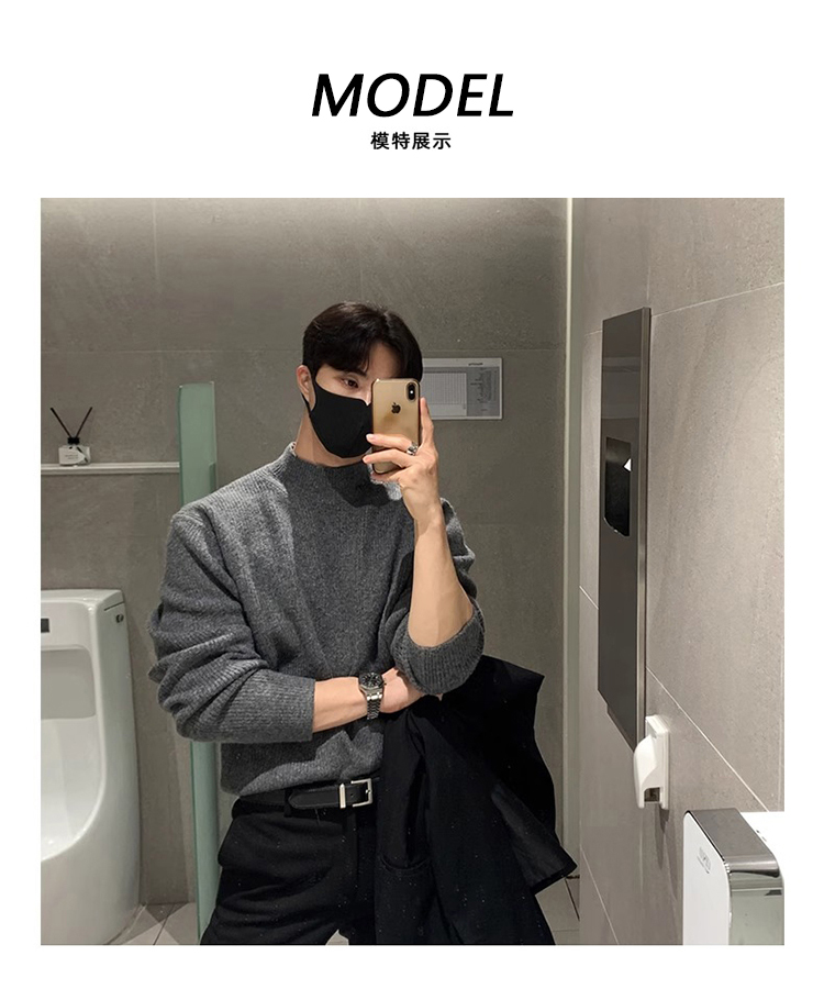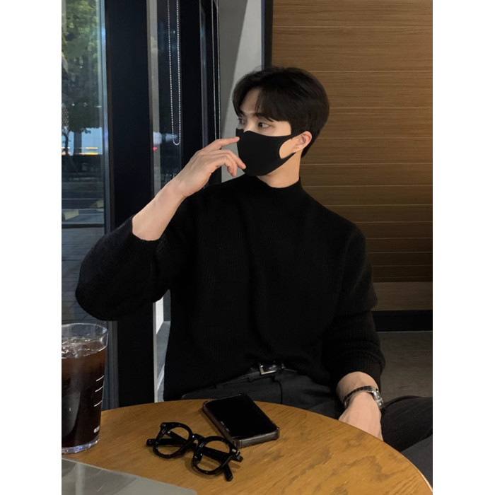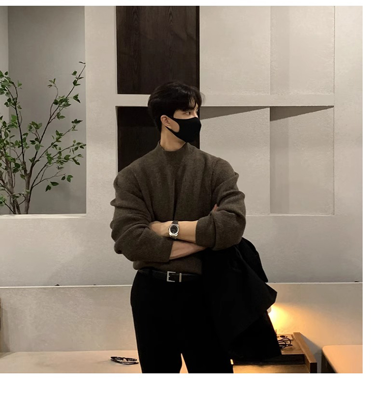 半高領毛衣男士秋冬季高級感韓版寬松打底針織衫休閒慵懶潮牌上衣