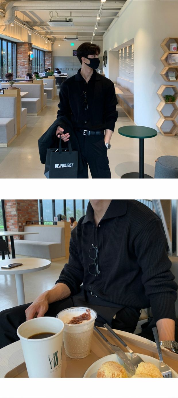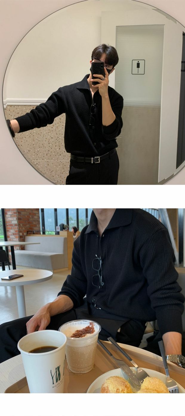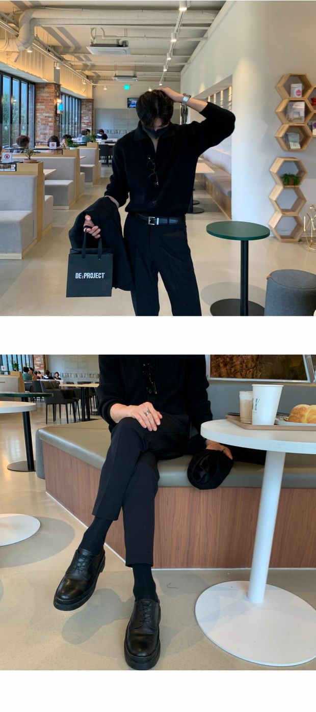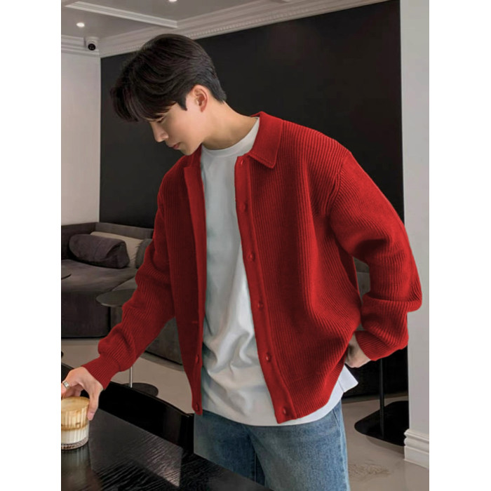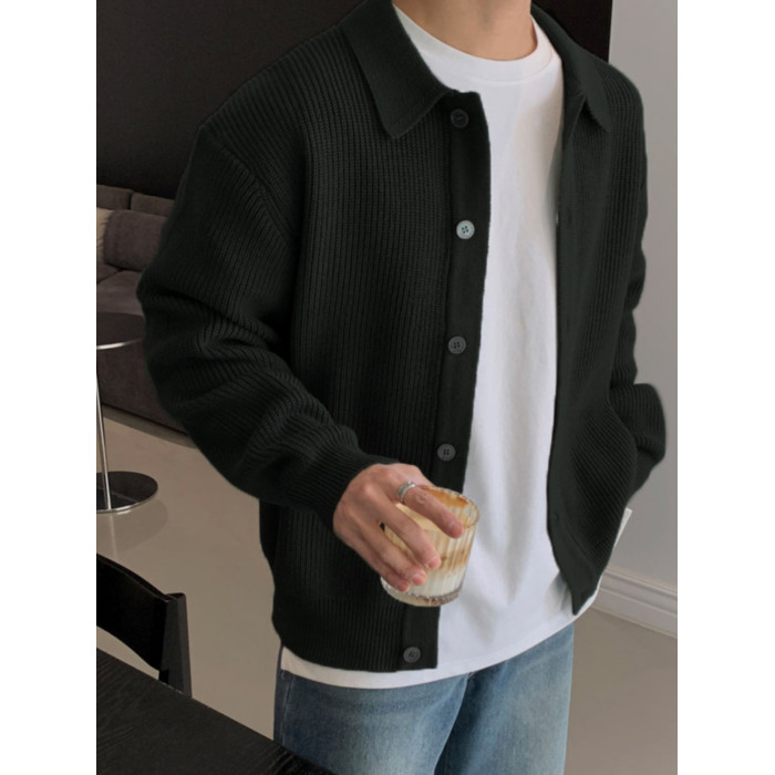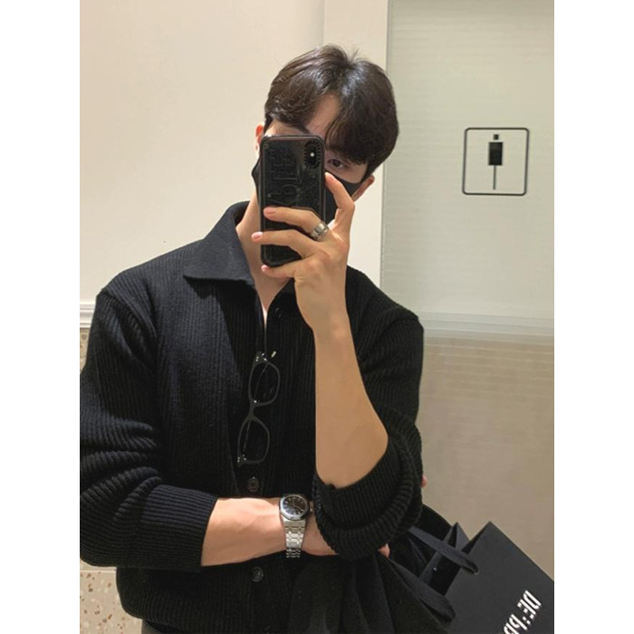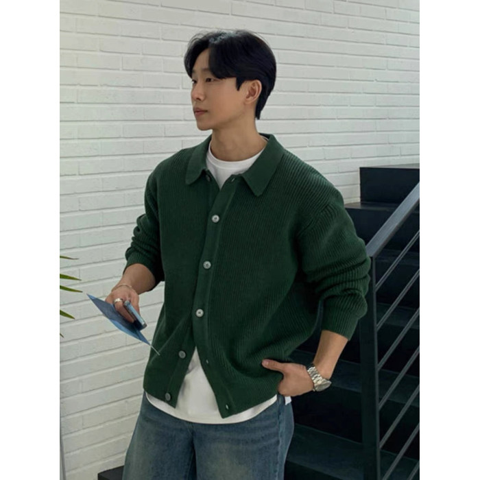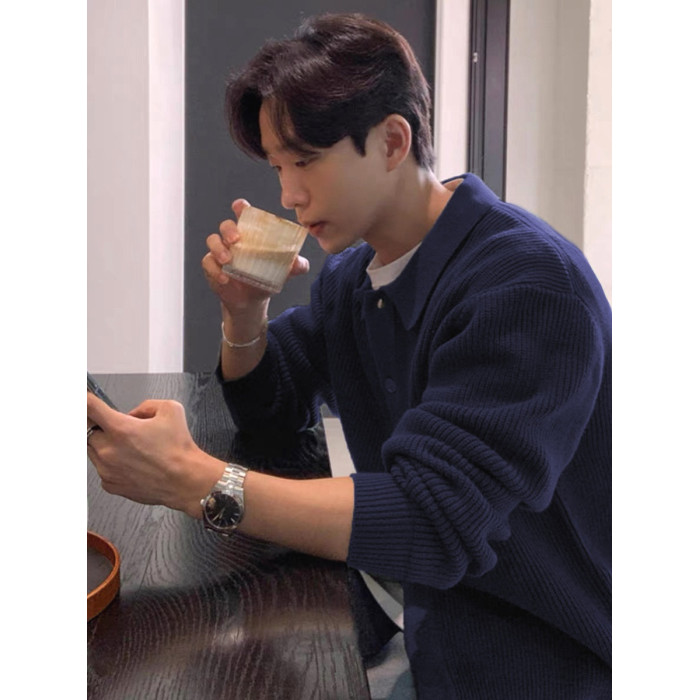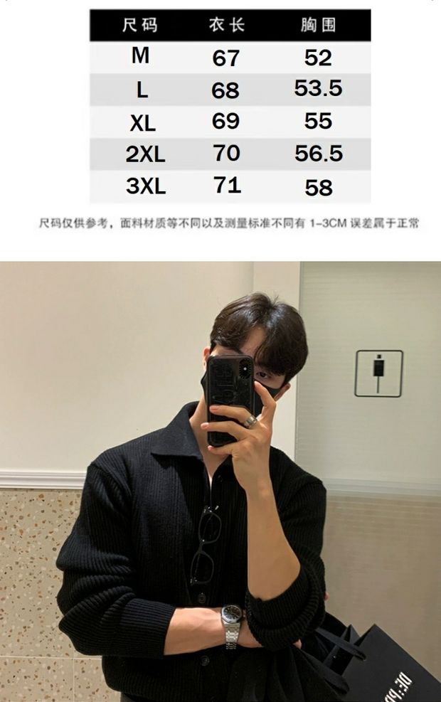 韓系輕奢包芯紗針織開衫男高級感修身排釦翻領外套美式坑條紋毛衣
