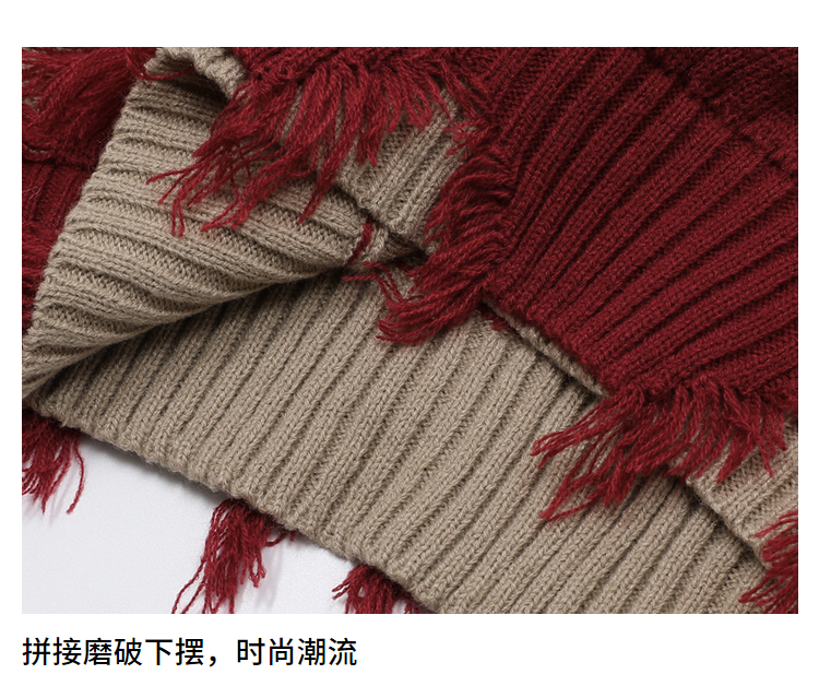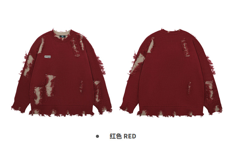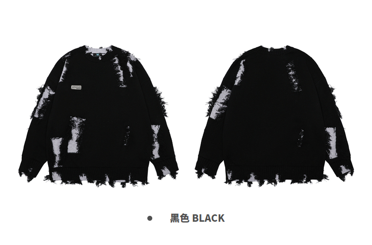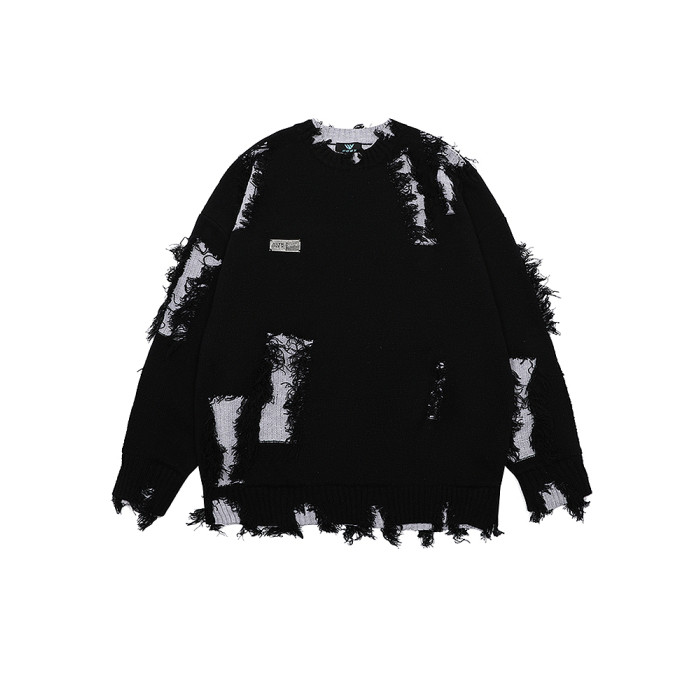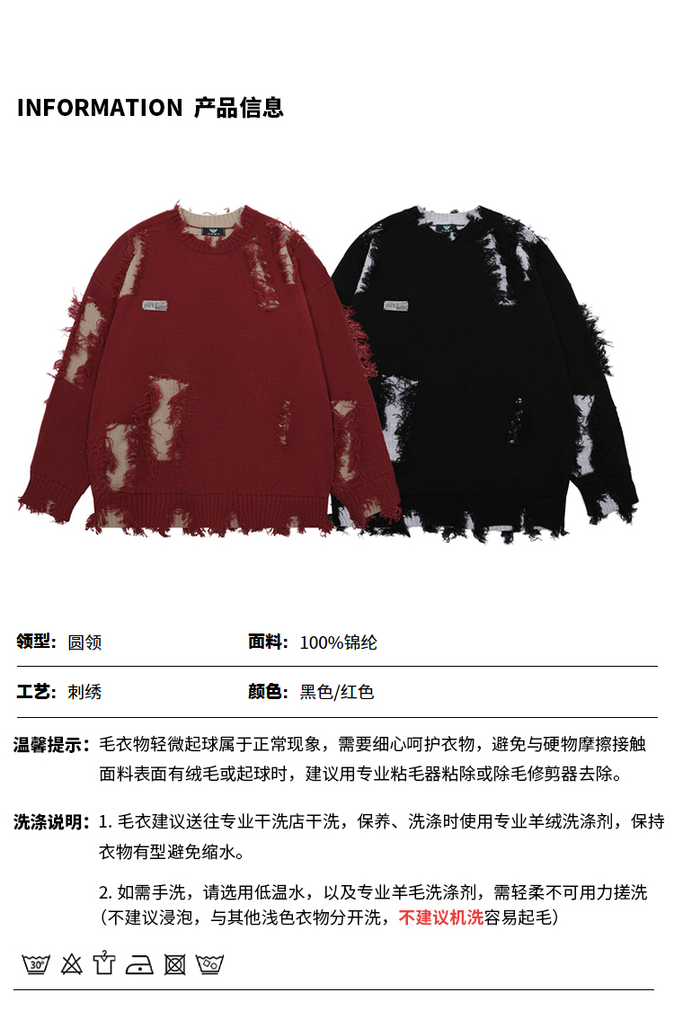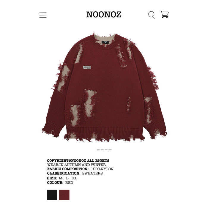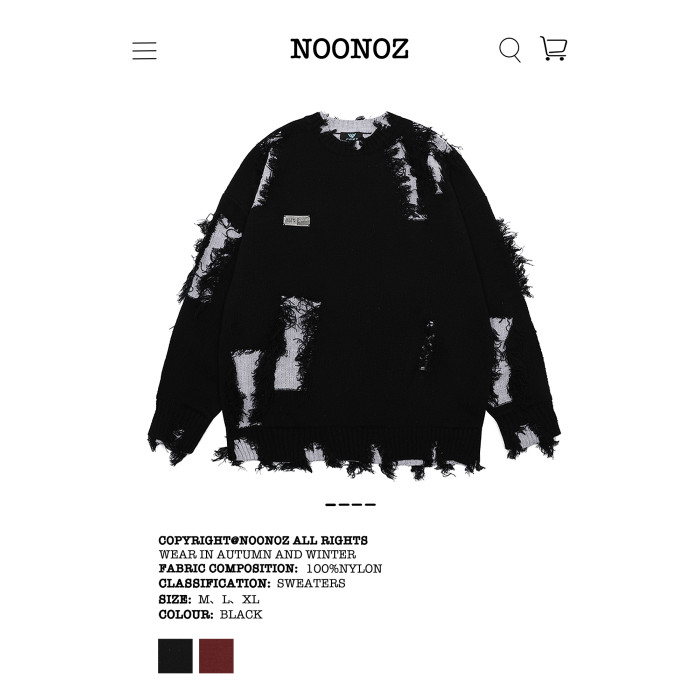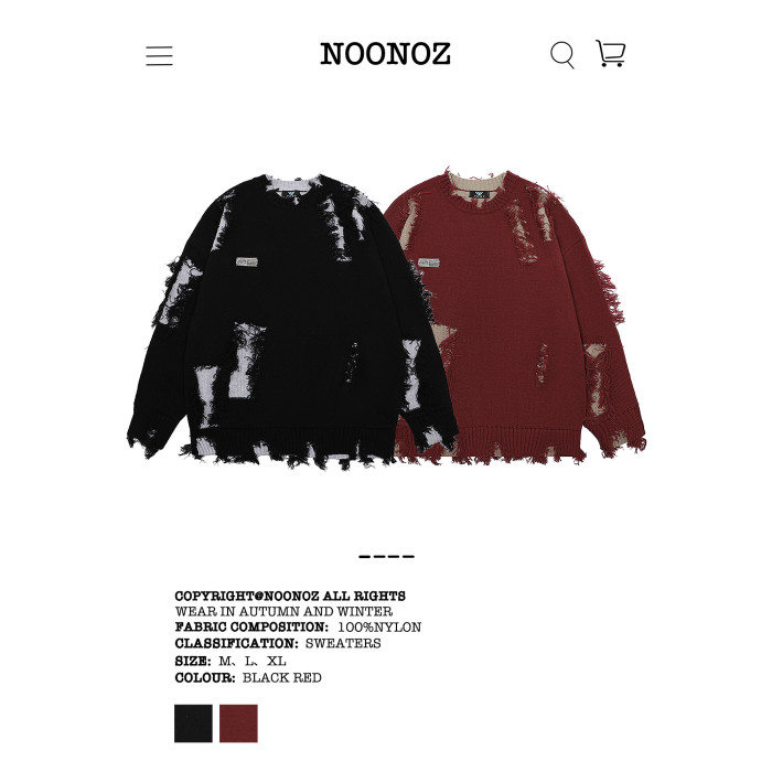 NOONOZ秋冬不規則破洞毛衣男潮牌高街嘻哈炸街oversize美式針織衫