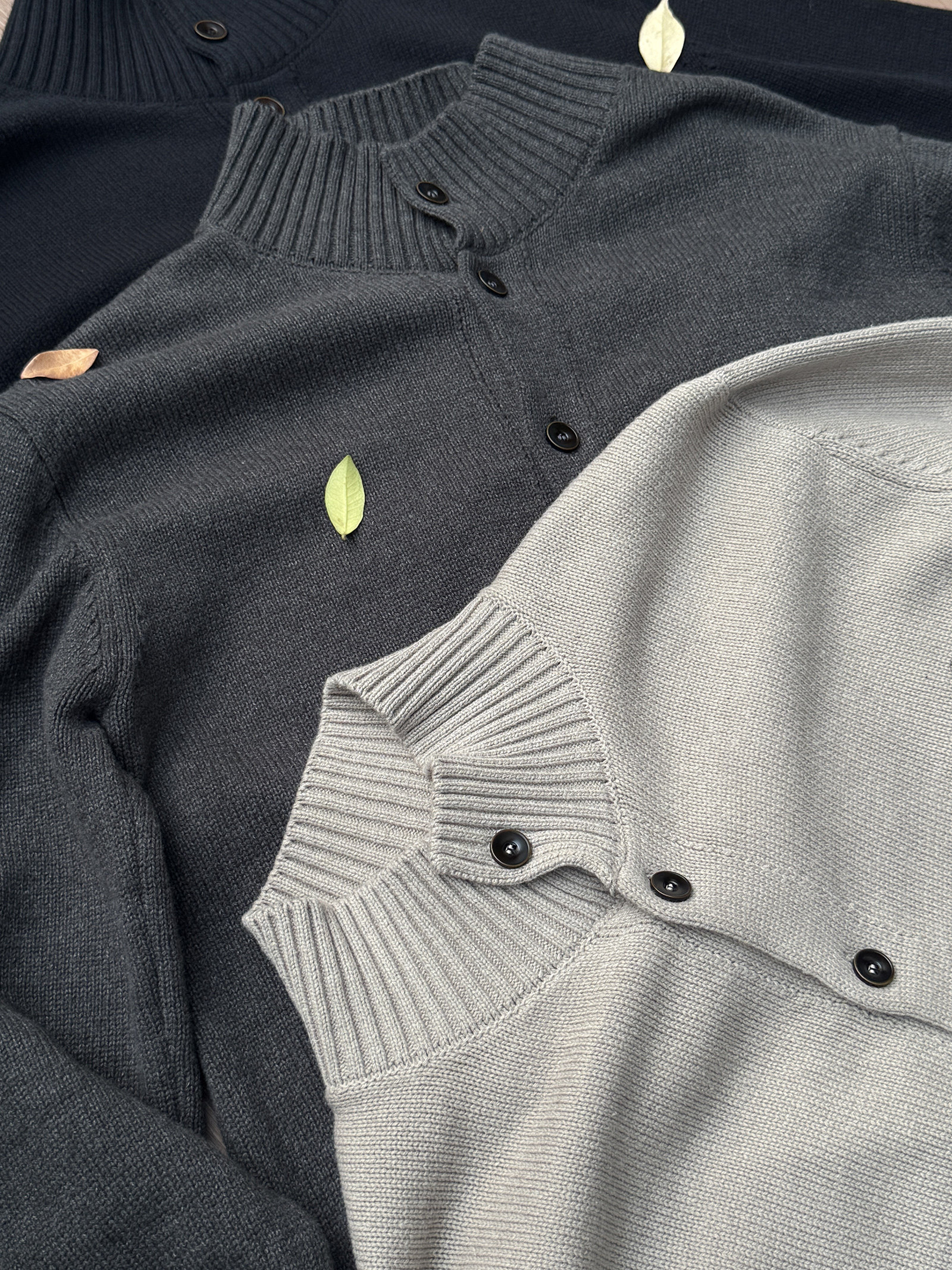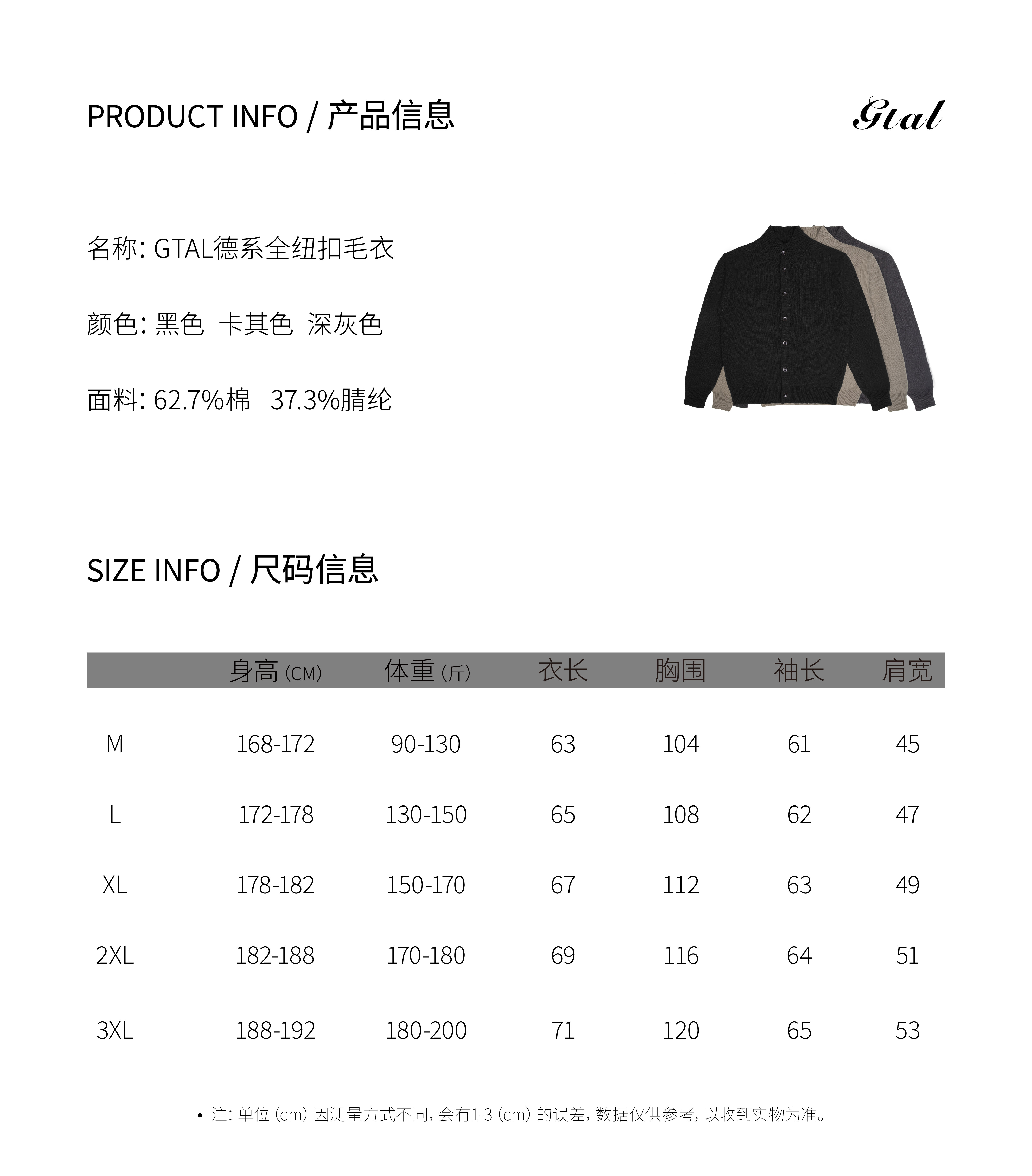 GTAL德系全紐釦抗起球毛衣570g純色針織衫高級感秋冬百搭長袖上衣