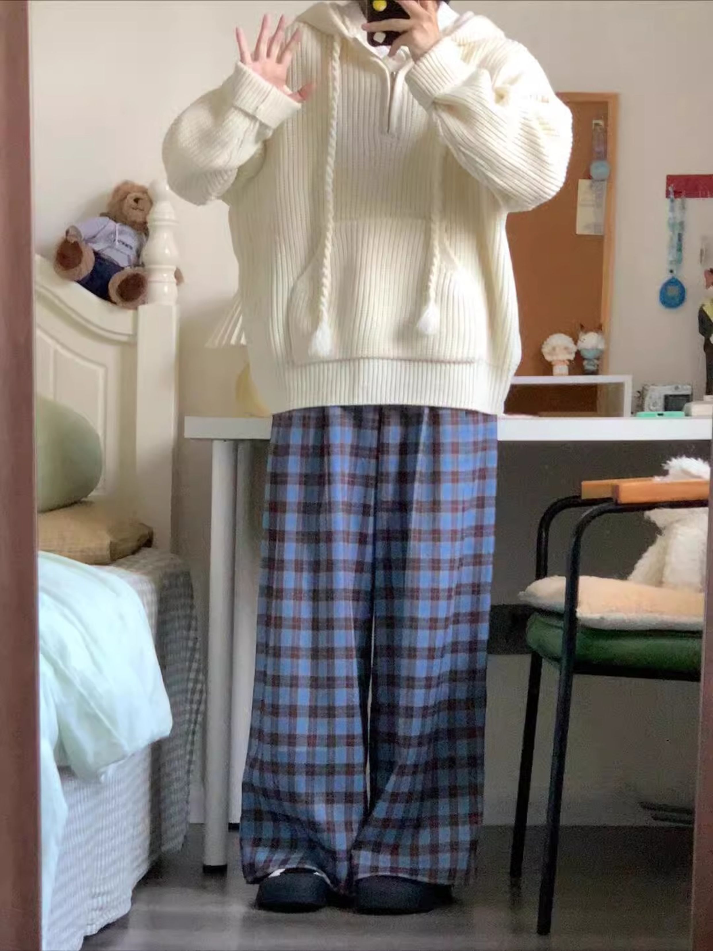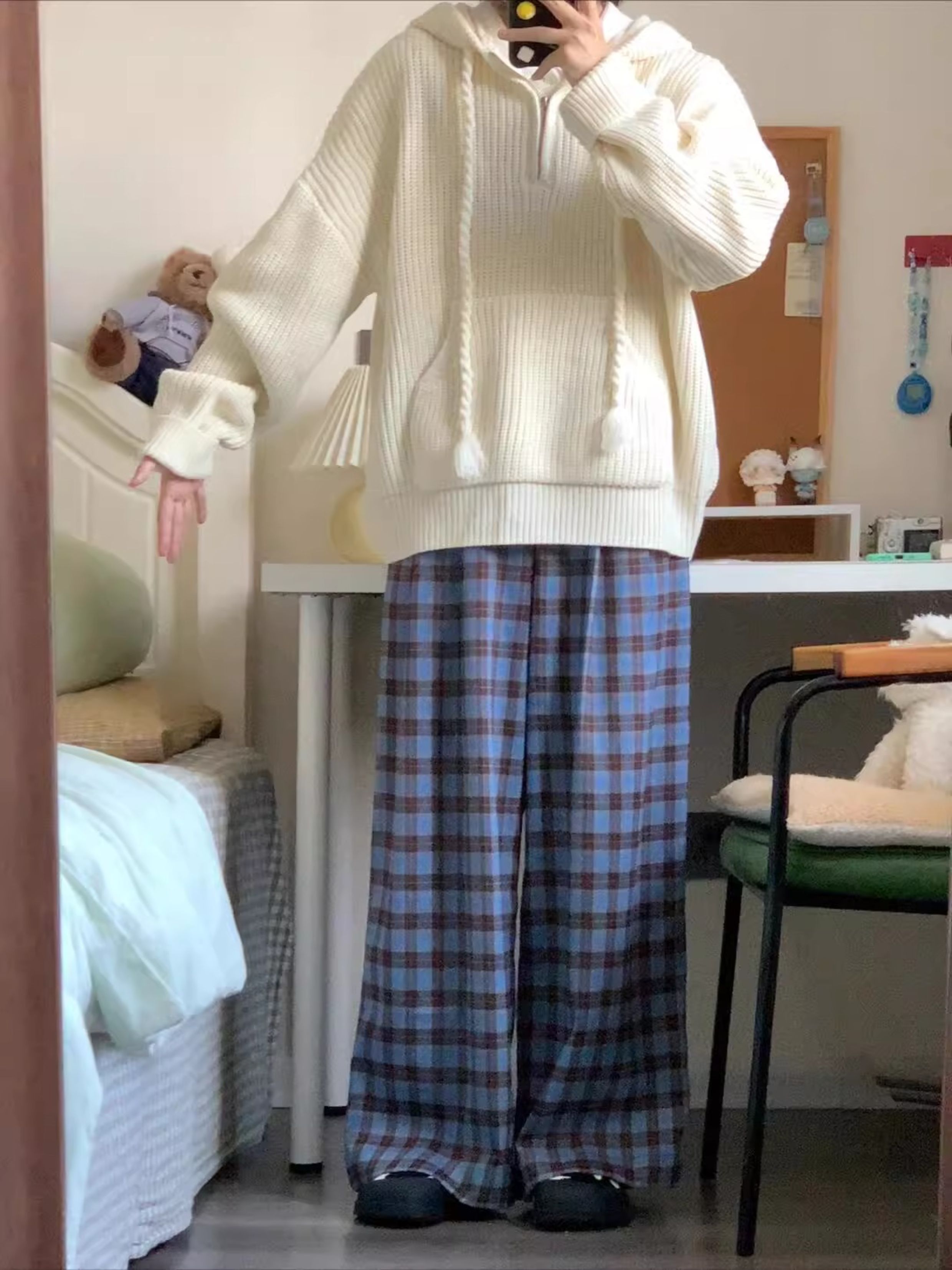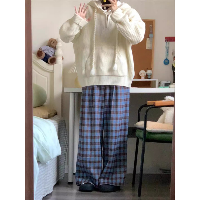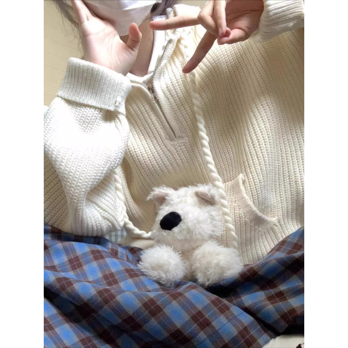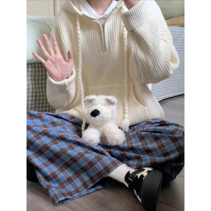 半拉鍊連帽毛衣女2025新款秋冬季寬松慵懶高級感針織套頭帽衫外套