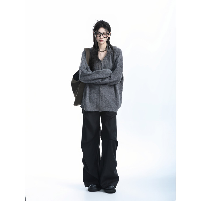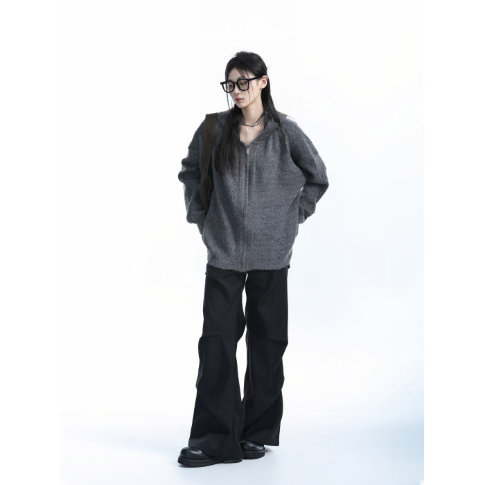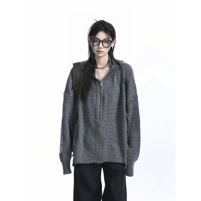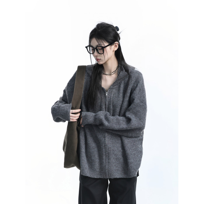 【坐吃山空】冬季高級感紋理灰色連帽針織衫外套女慵懶風開衫毛衣
