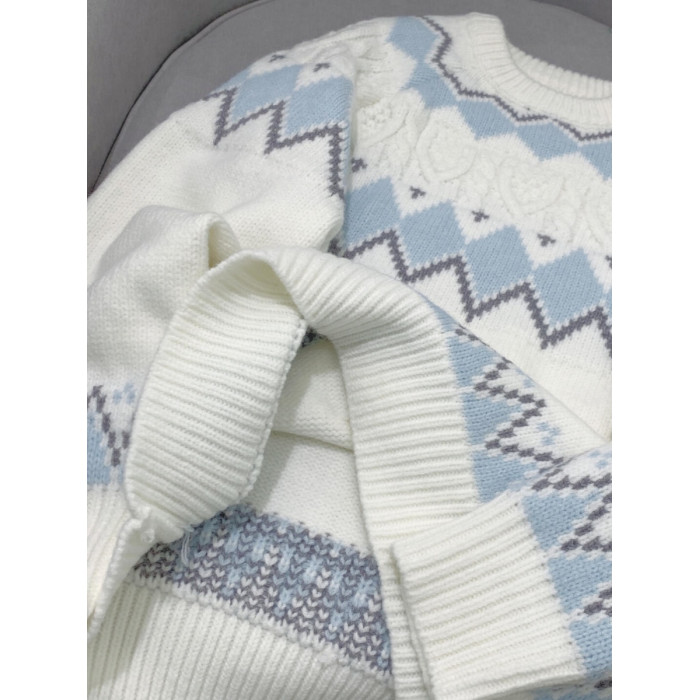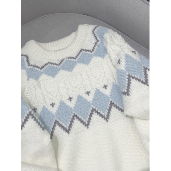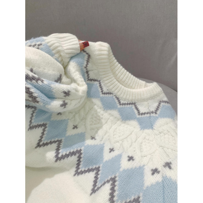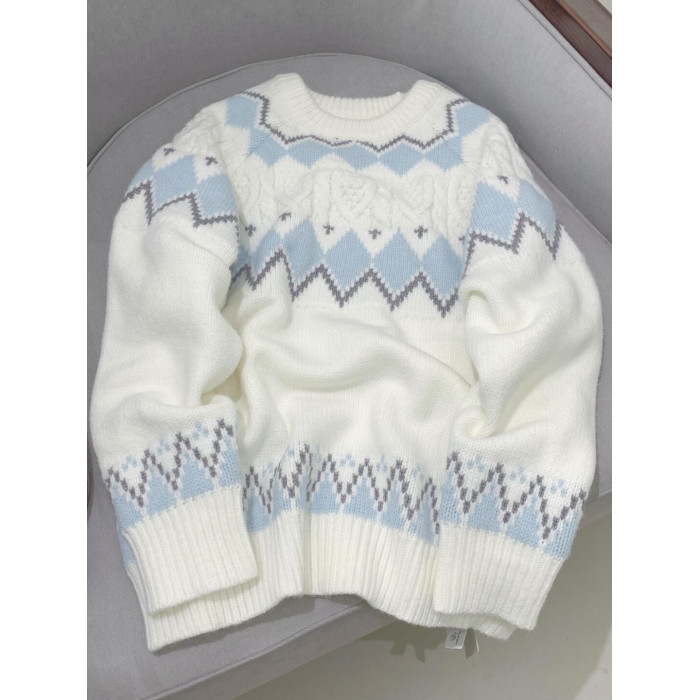 2025新款白色費爾島毛衣女秋冬奶fufu軟糯針織衫寬松加厚內搭上衣
