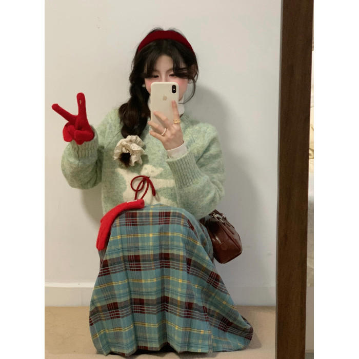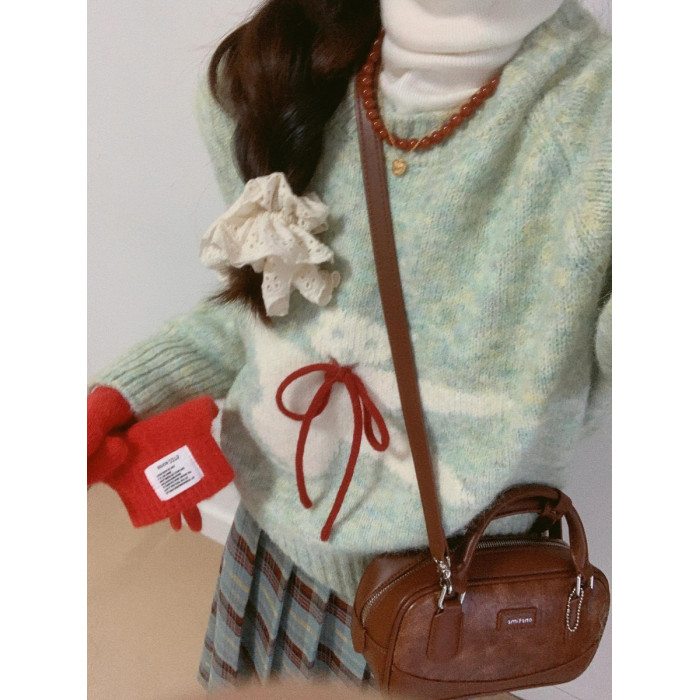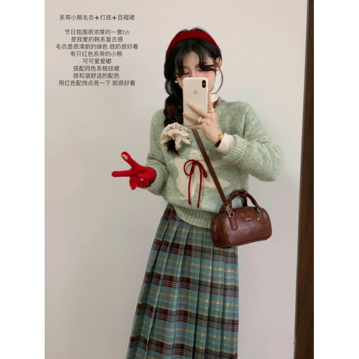 2025年秋冬新款設計感甜美風系帶小熊毛衣女寬松軟糯慵懶針織上衣
