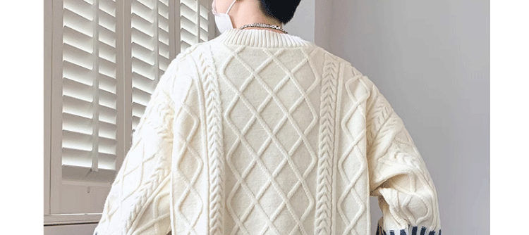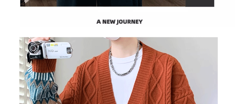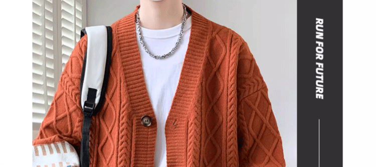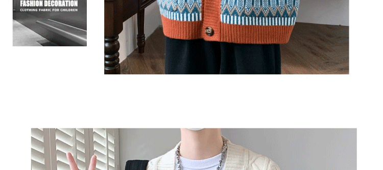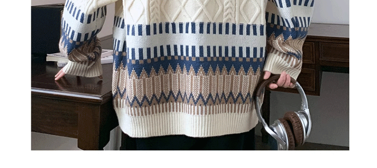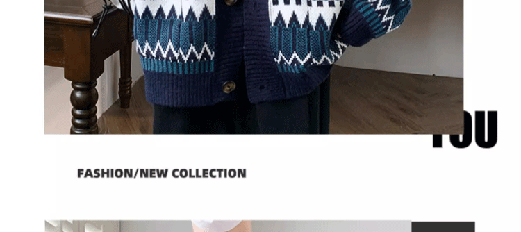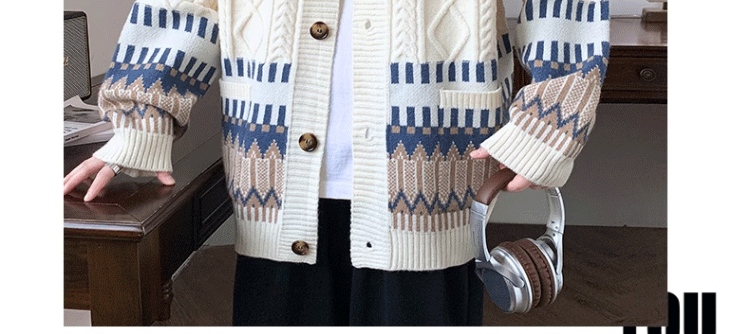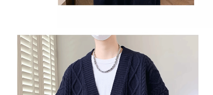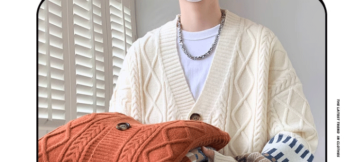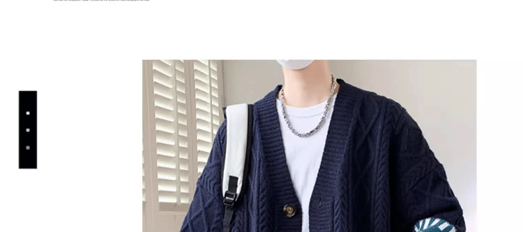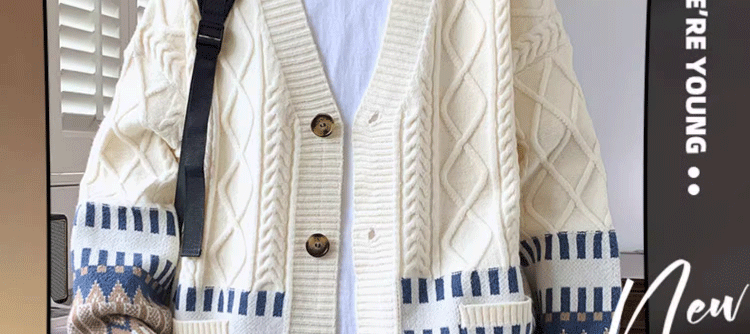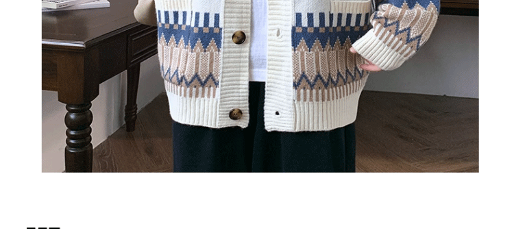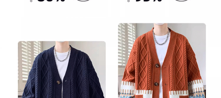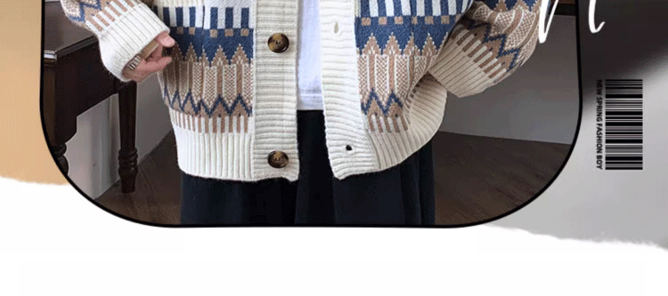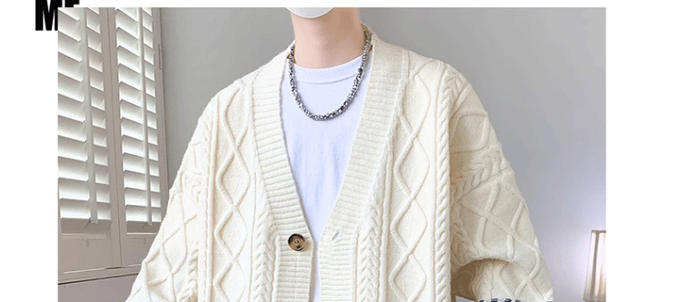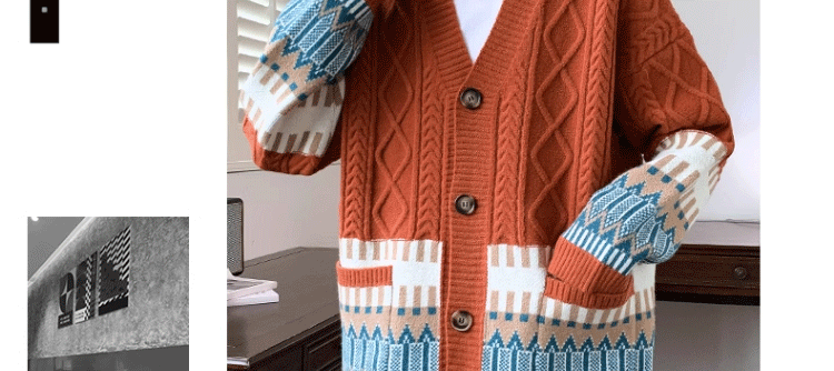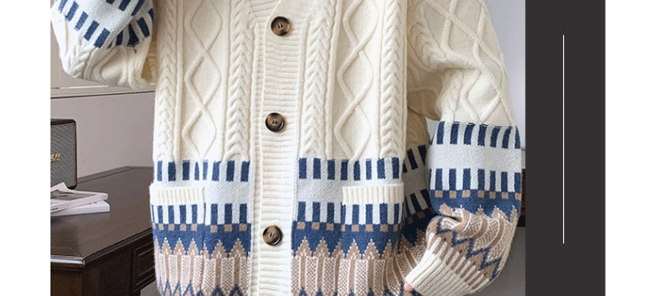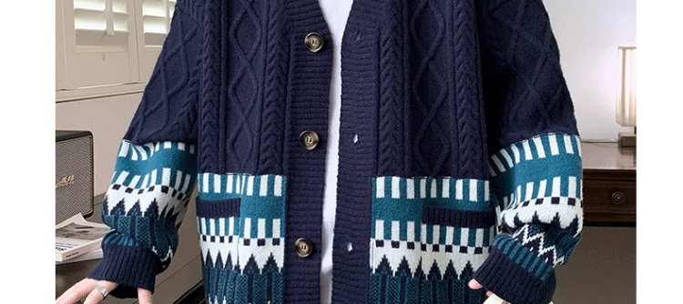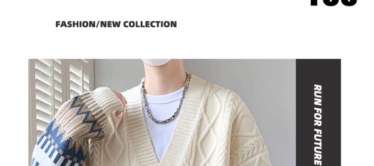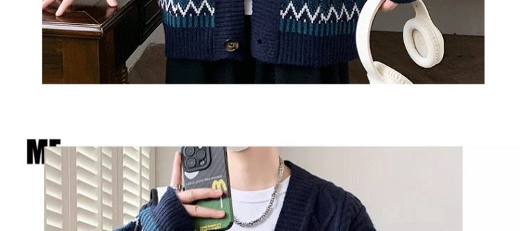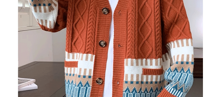 日系復古拼接菱格V領開衫毛衣男寬松痞帥潮牌休閒針織衫情侶外套