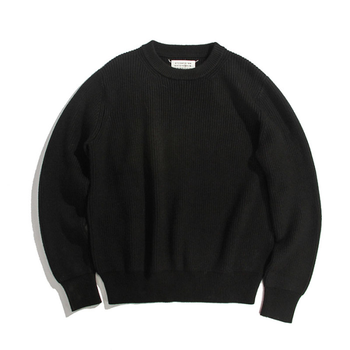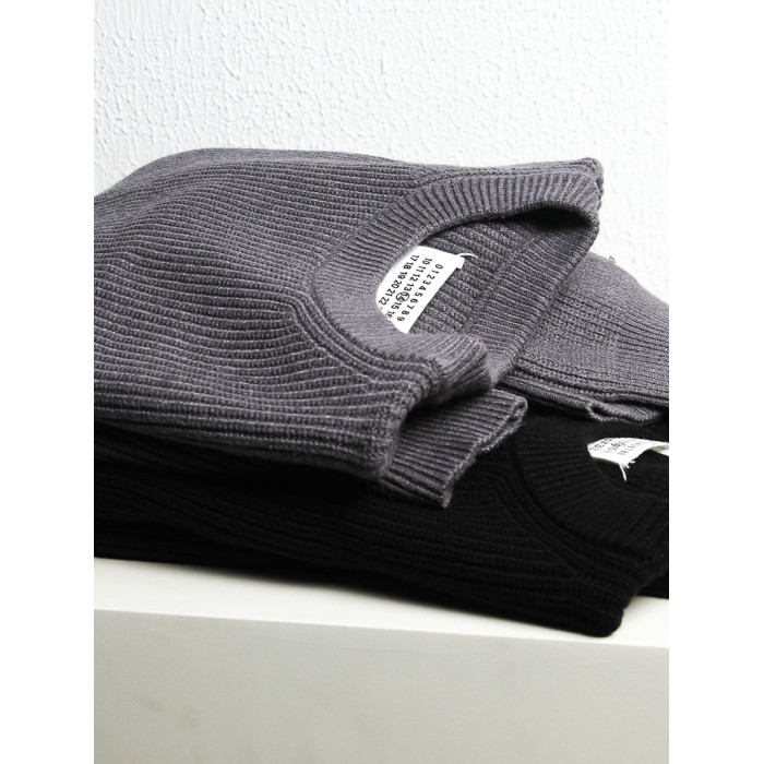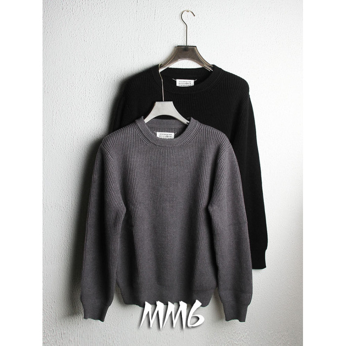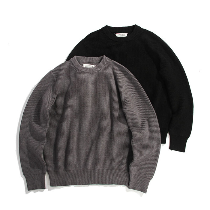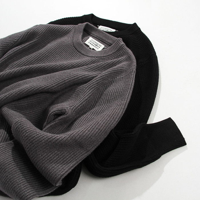 W超出想象 M6馬拉風格灰黑色圓領寬松套頭針織衫原創重磅男女毛衣