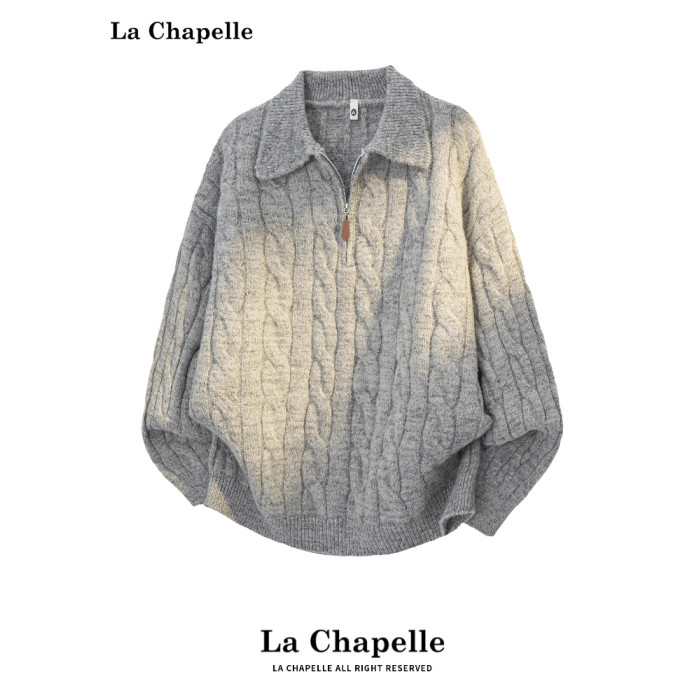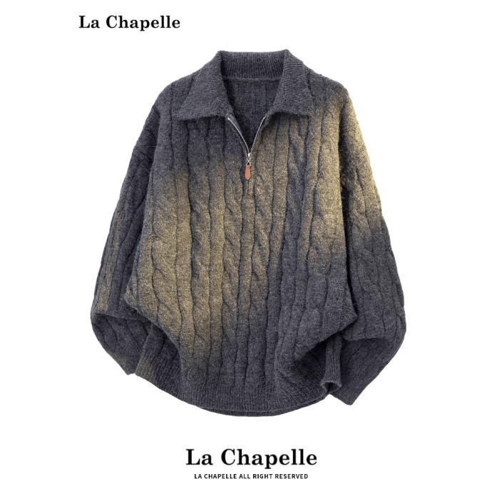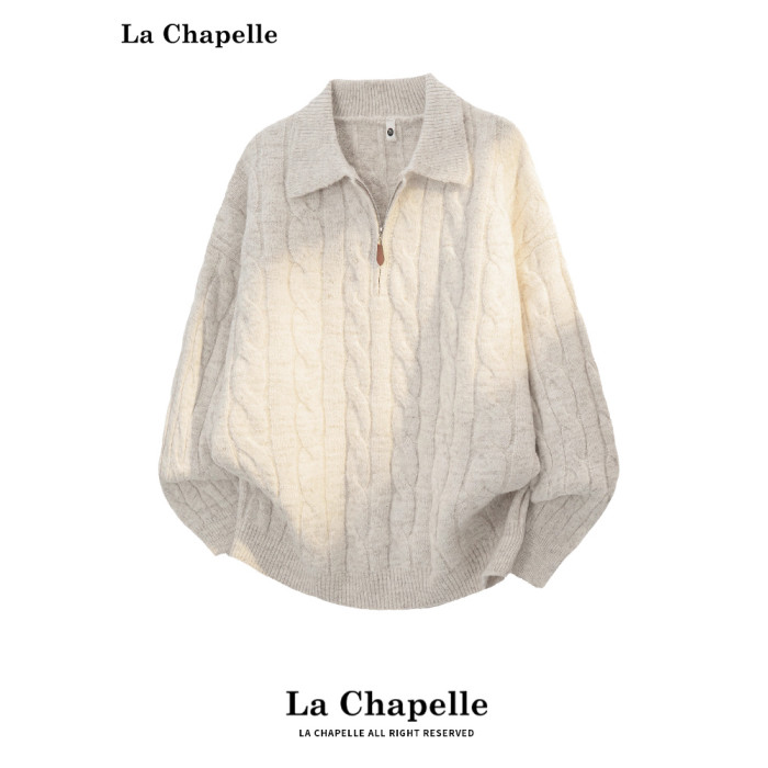 拉夏貝爾綿羊毛麻花紋polo毛衣秋冬2025新款男士半拉鍊復古針織衫