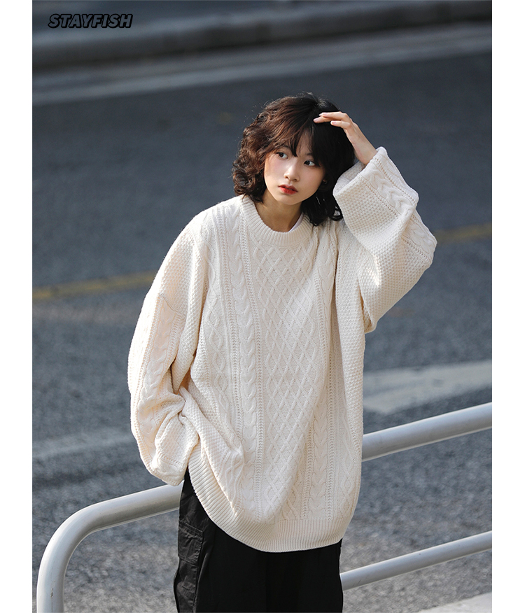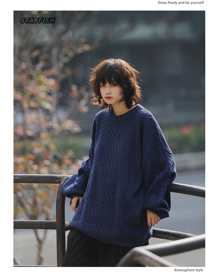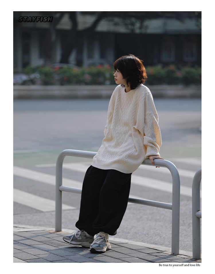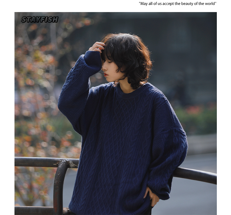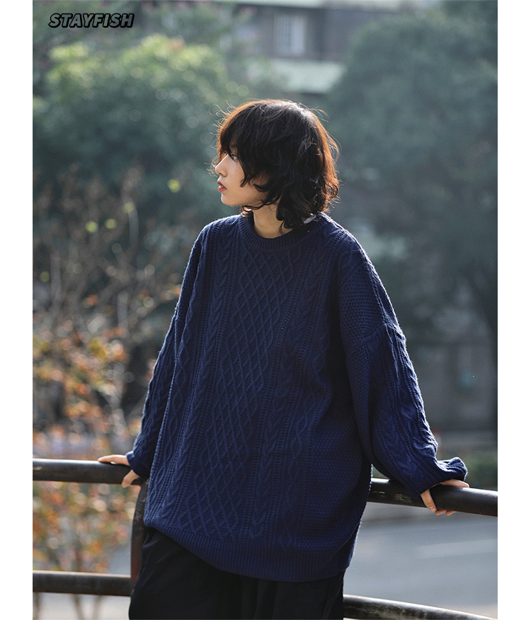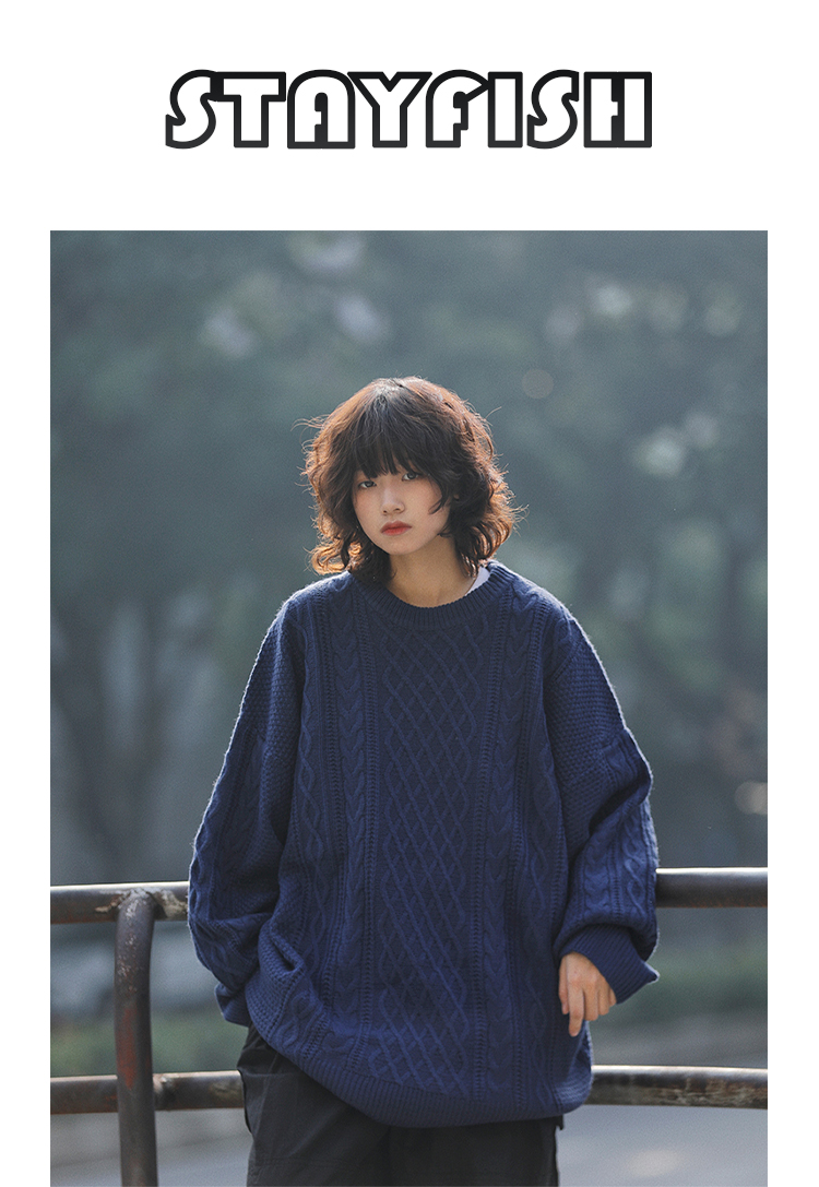 阿於呆STAYFISH復古麻花針織圓領慵懶風毛衣男女情侶寬松休閒秋冬