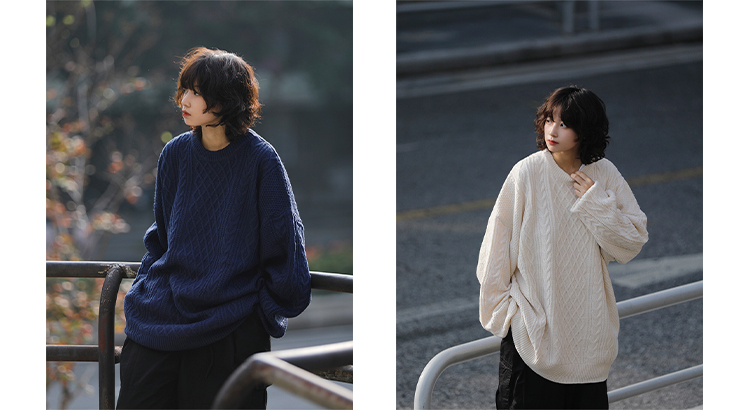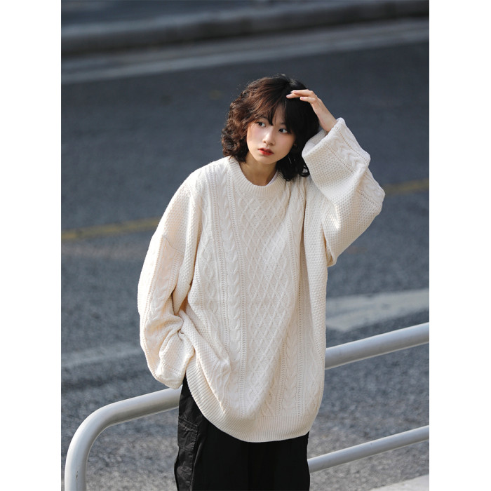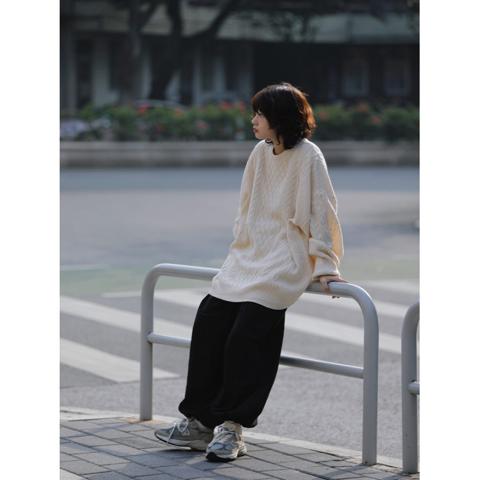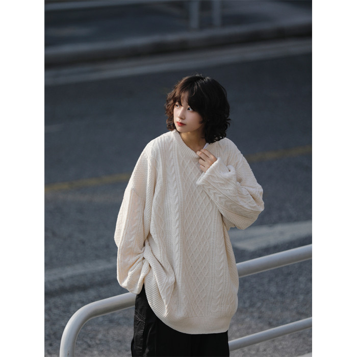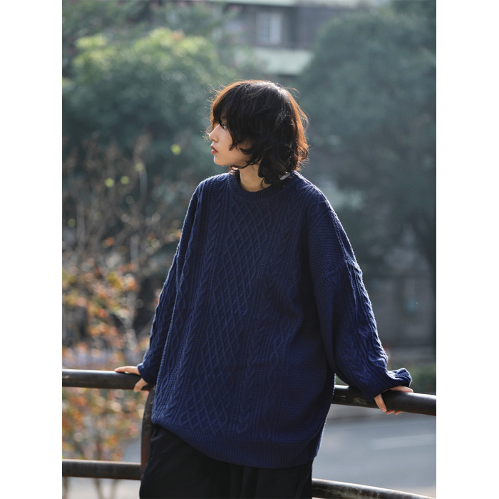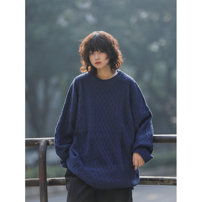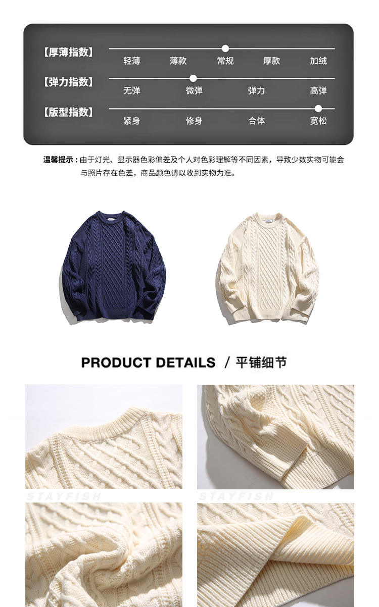阿於呆STAYFISH復古麻花針織圓領慵懶風毛衣男女情侶寬松休閒秋冬