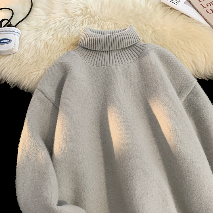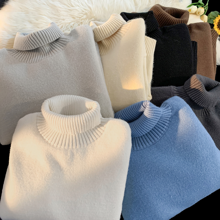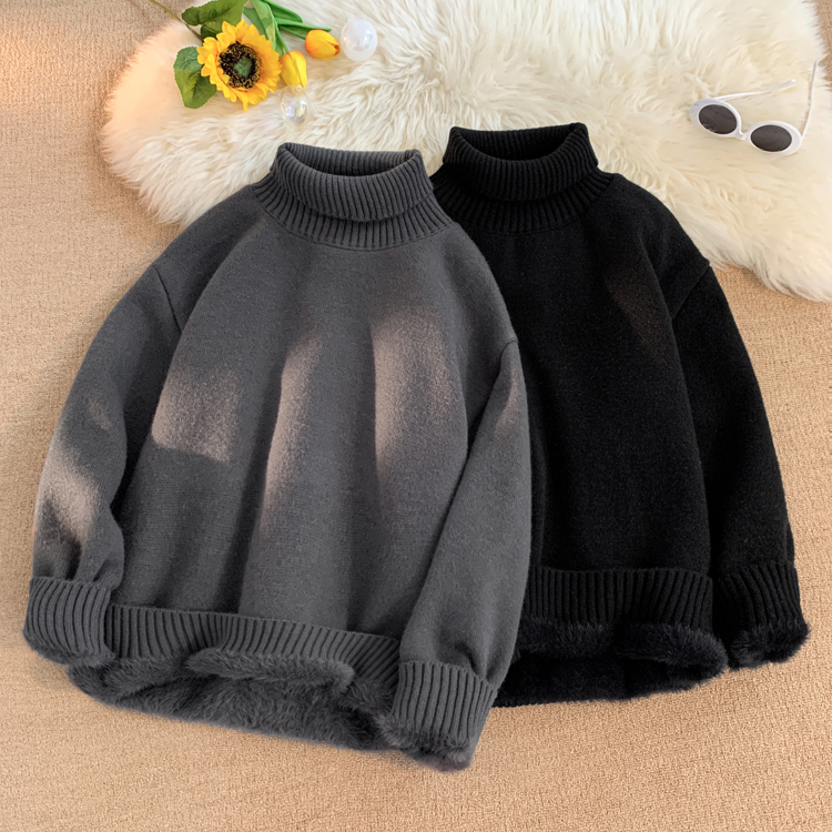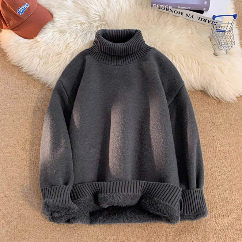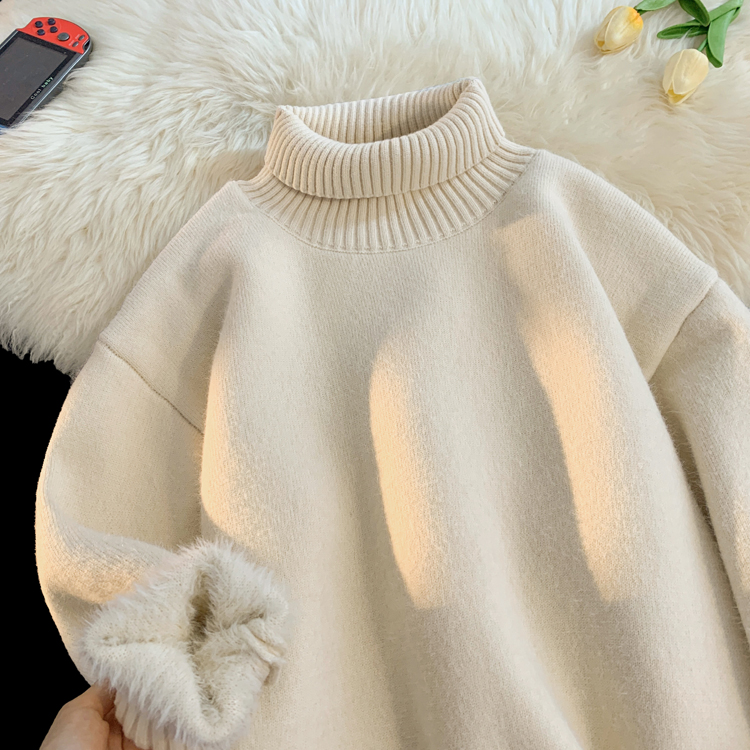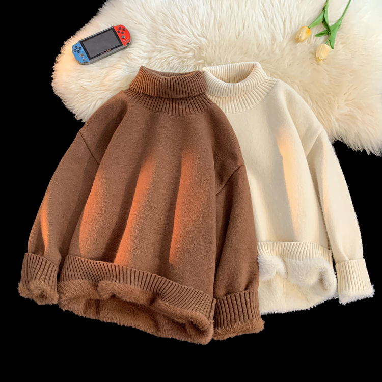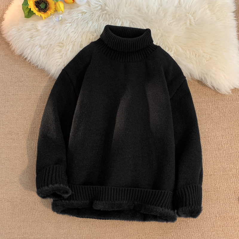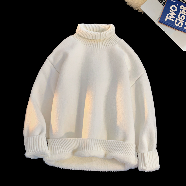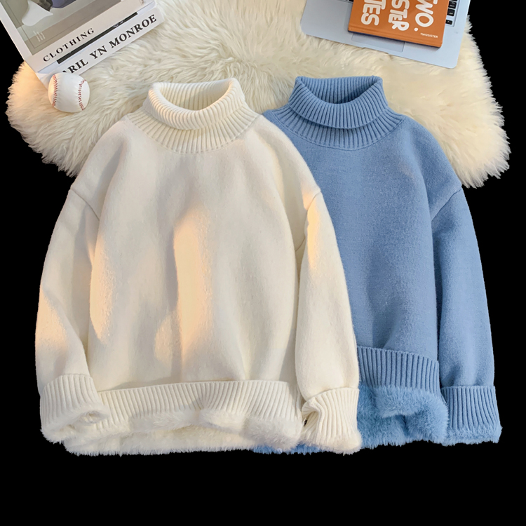 青少年高領羊羔絨毛衣男冬季加絨加厚外套高級感內搭打底針織毛衫