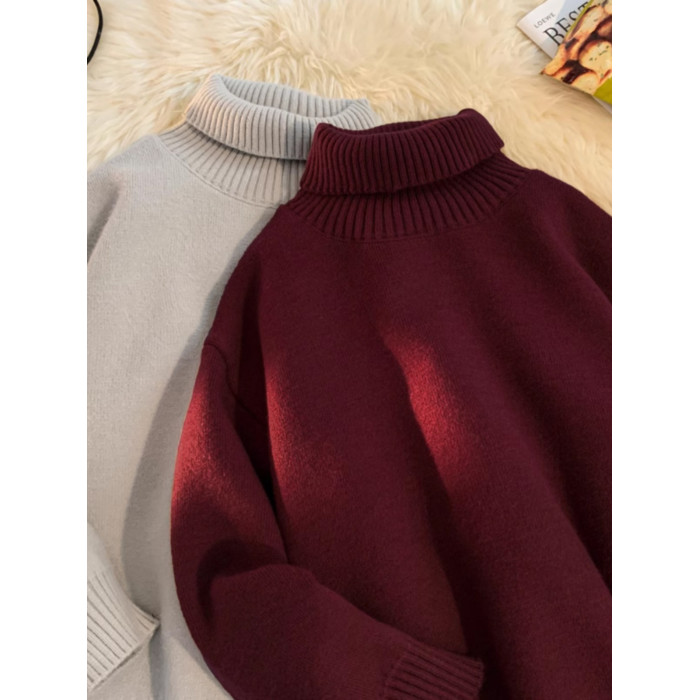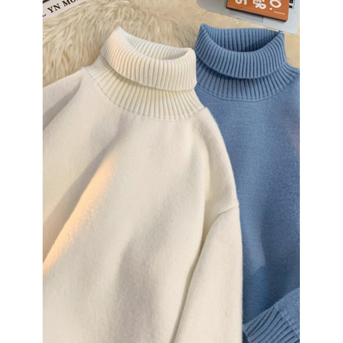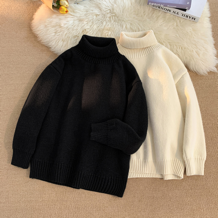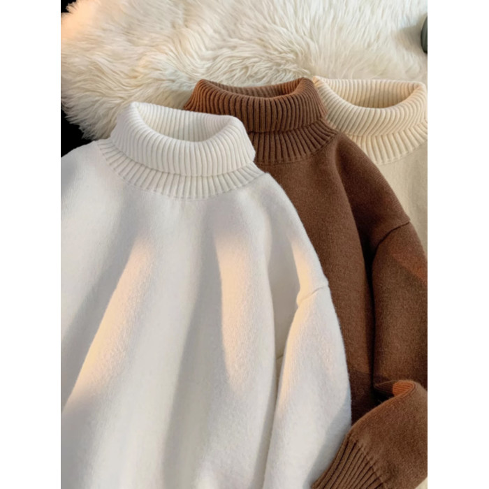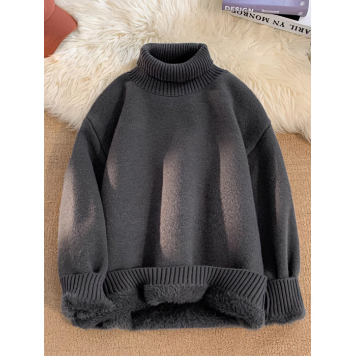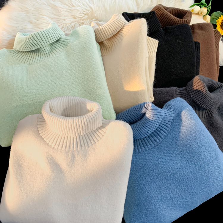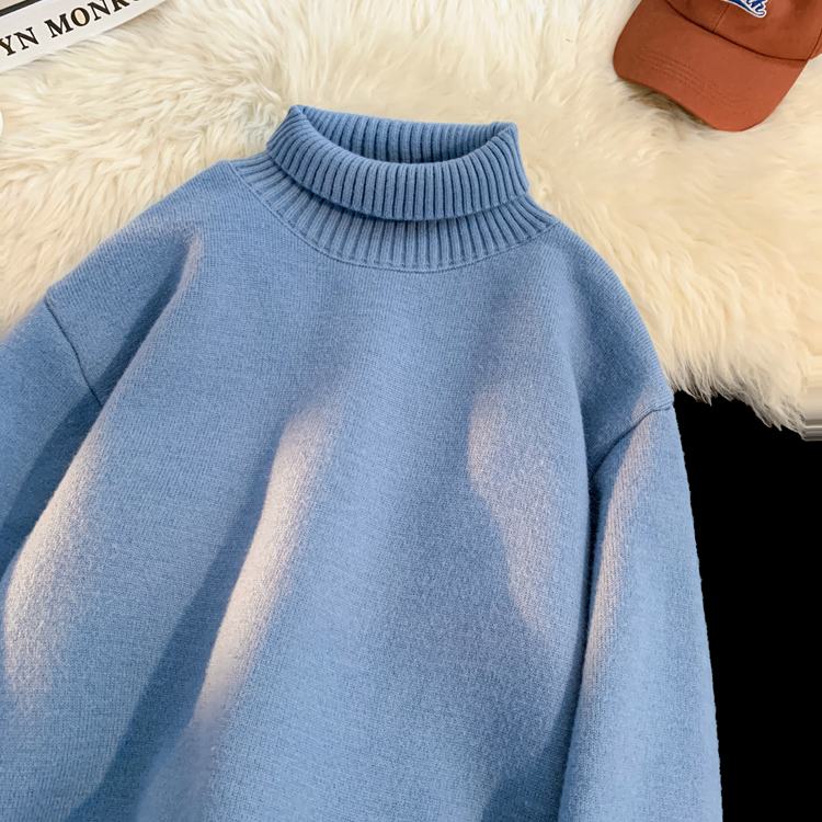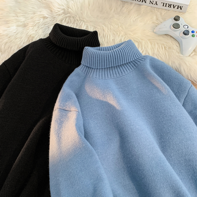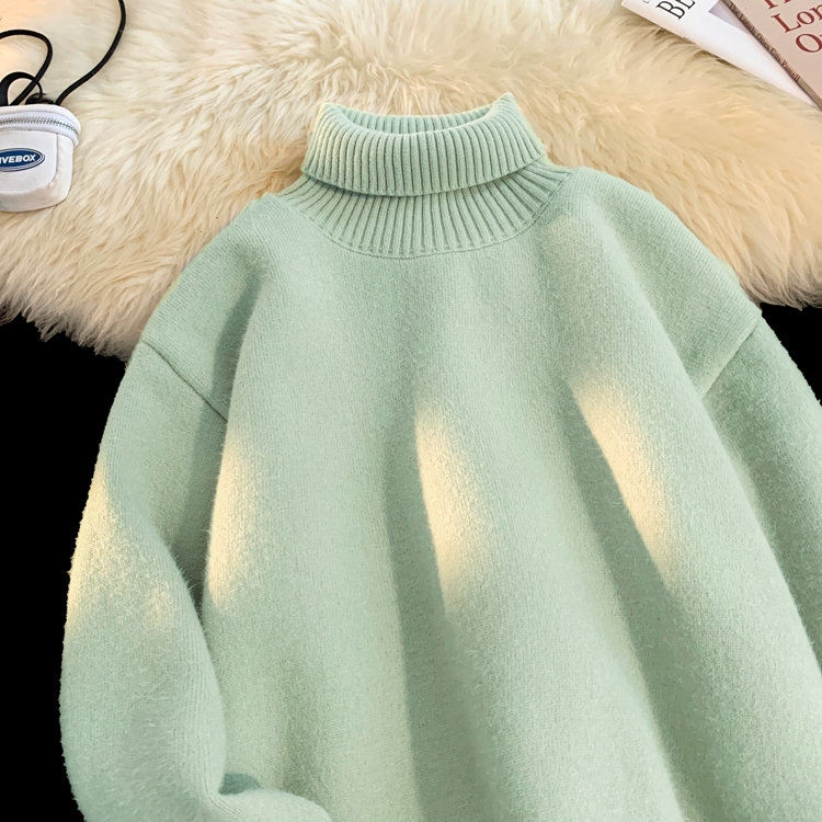 青少年高領羊羔絨毛衣男冬季加絨加厚外套高級感內搭打底針織毛衫