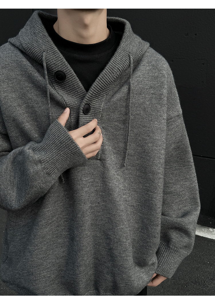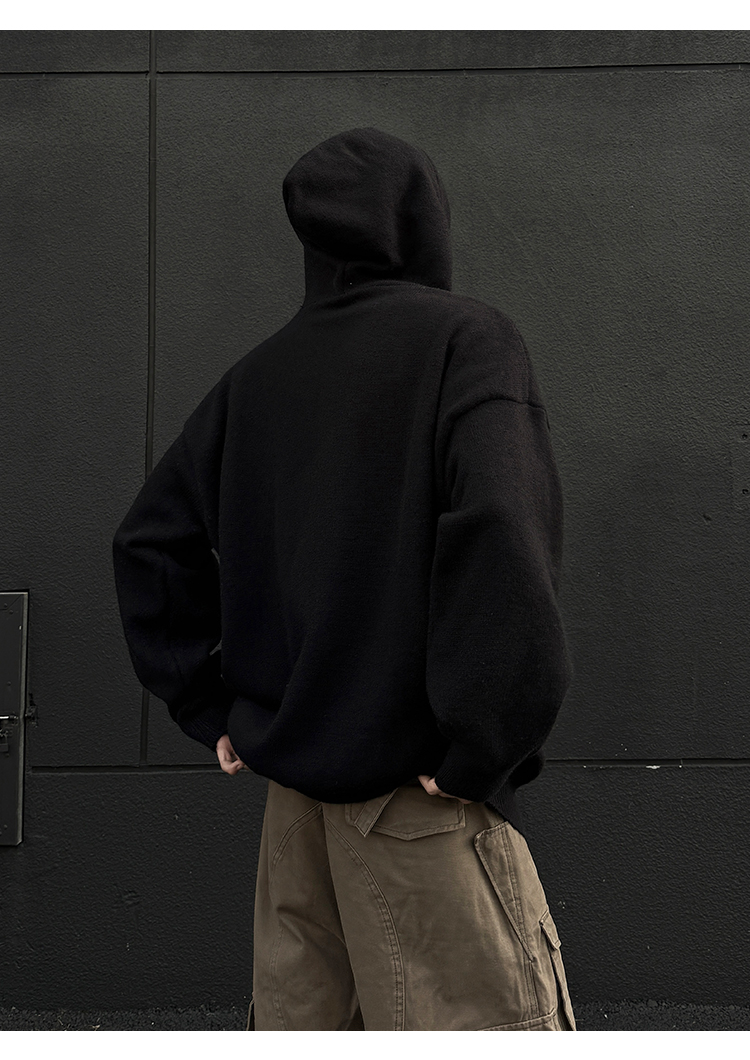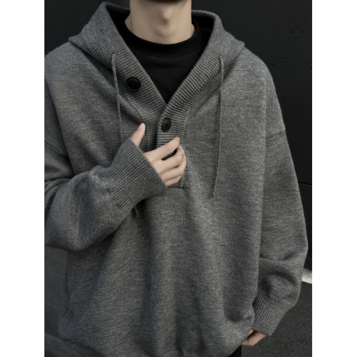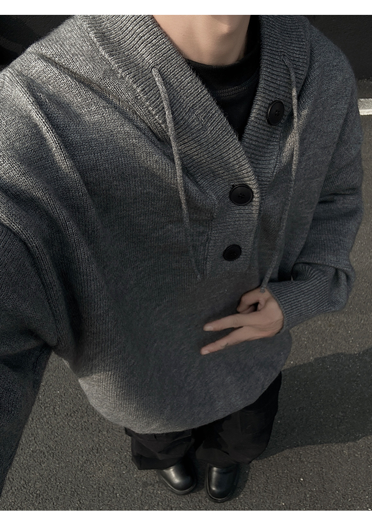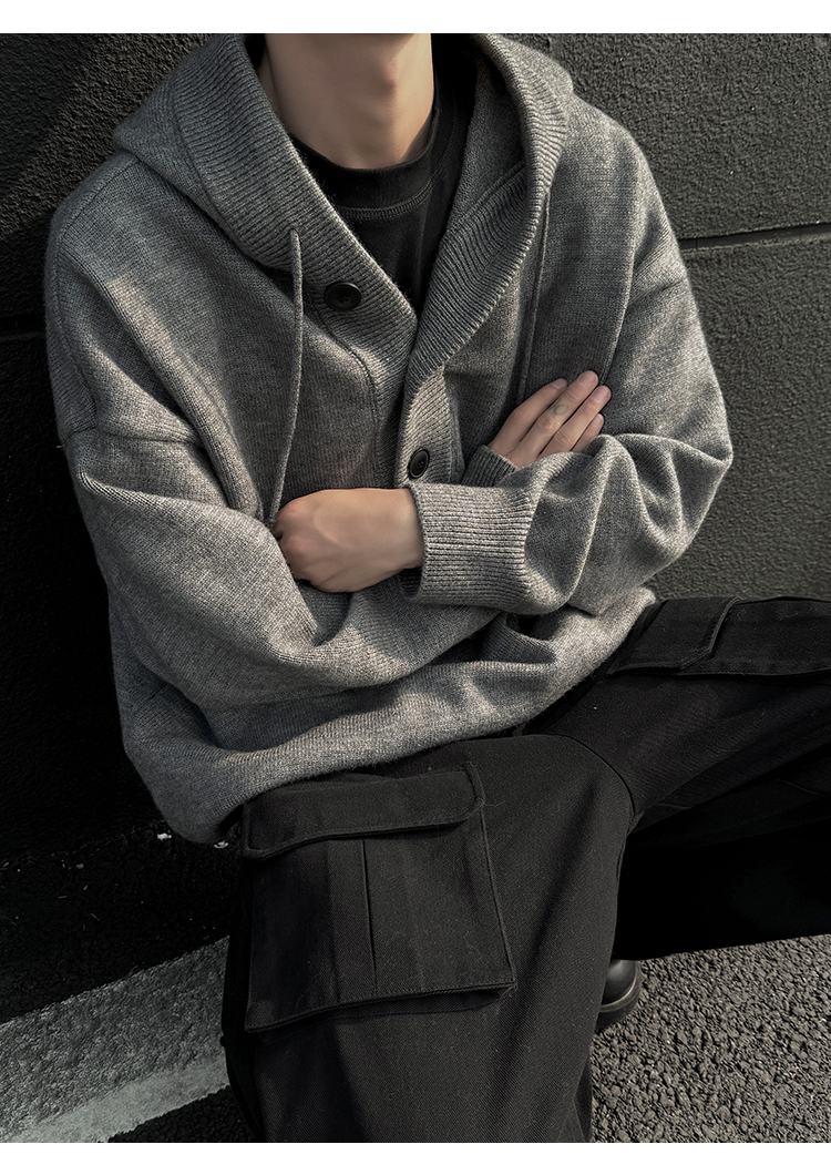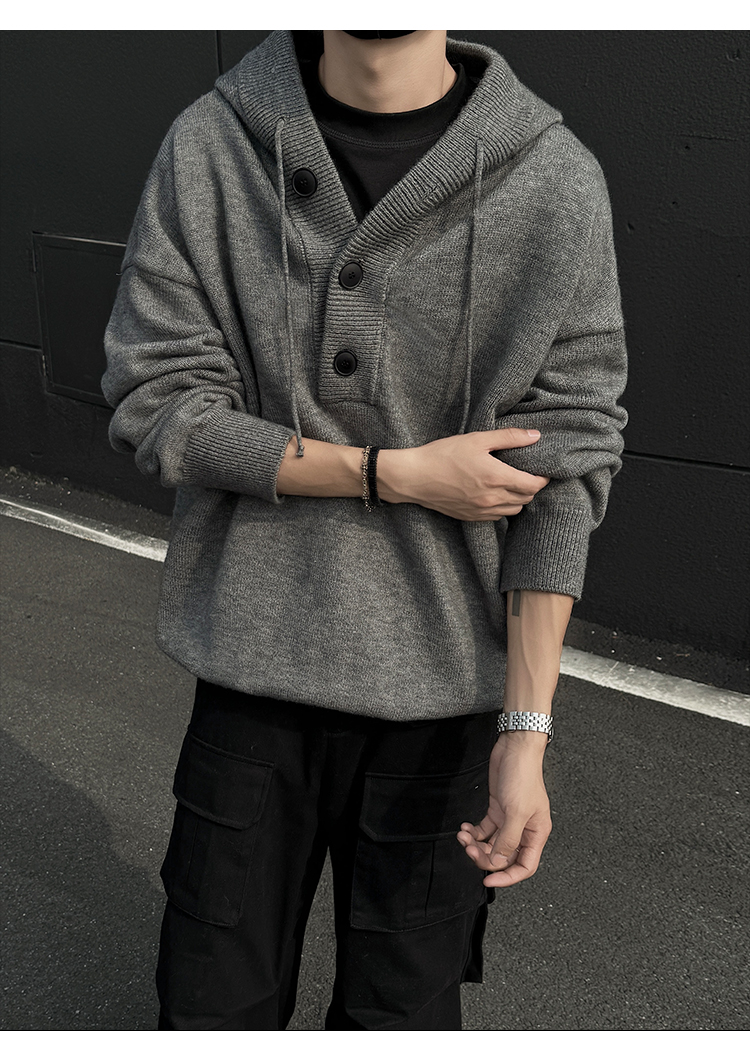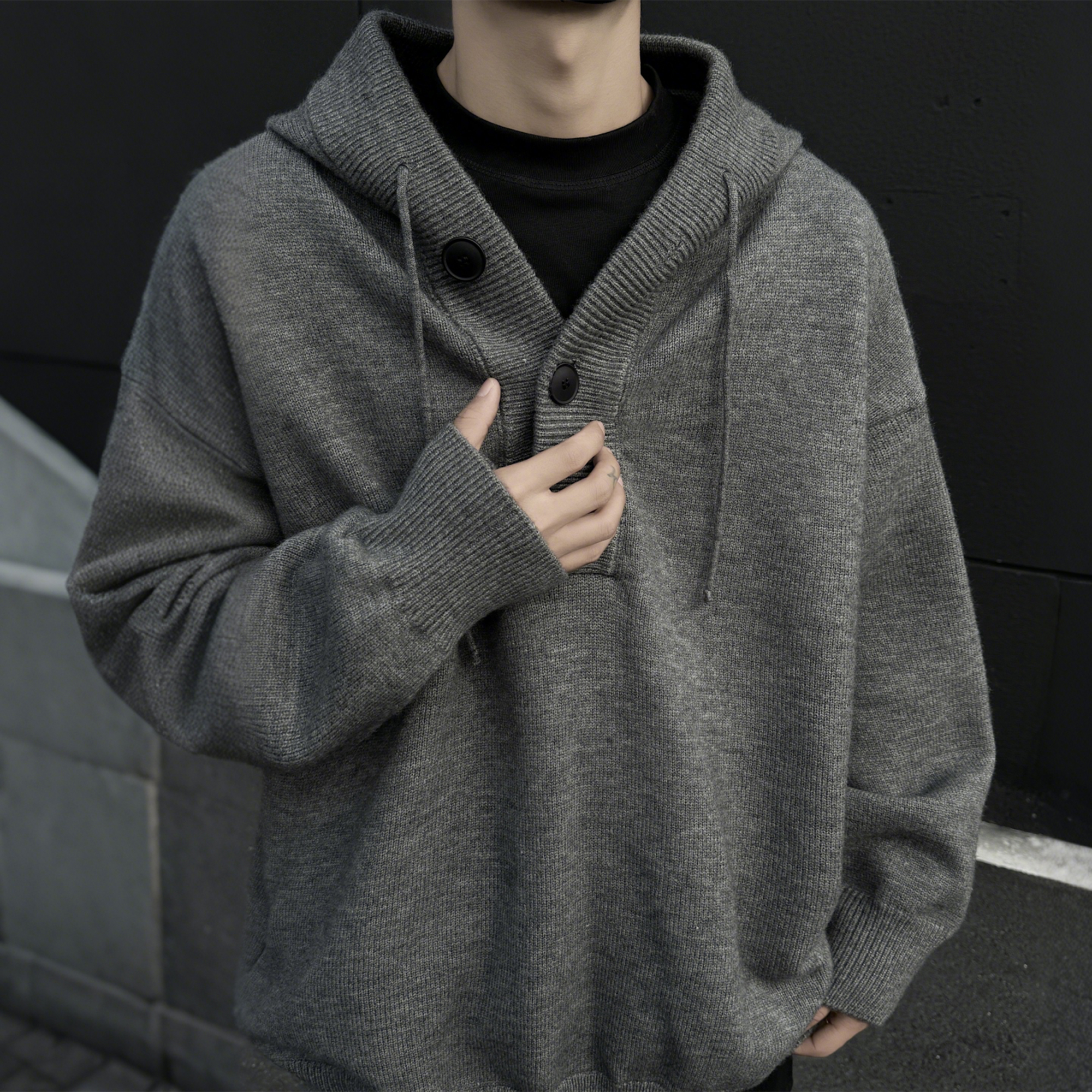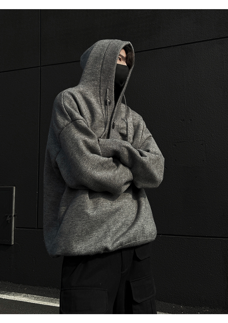 VUUG灰色重磅半開衫針織毛衣男春秋冬季潮牌寬松休閒男生連帽外套