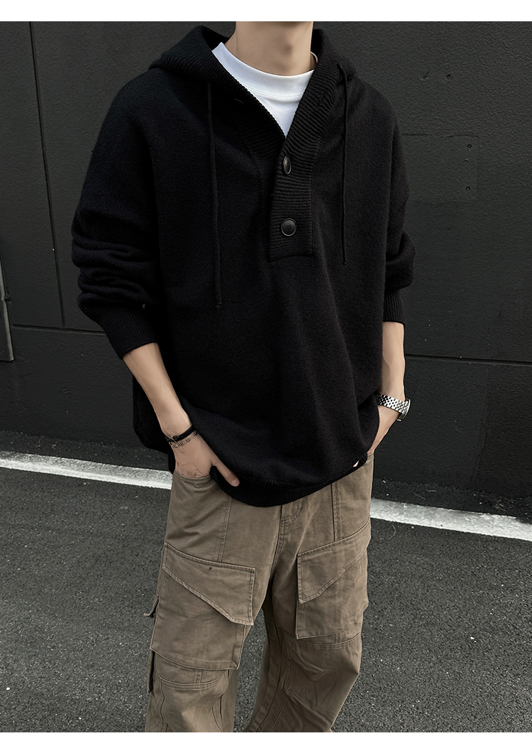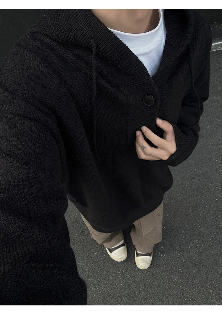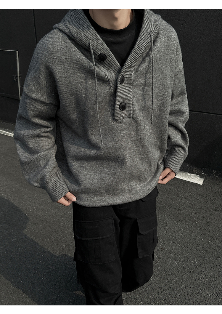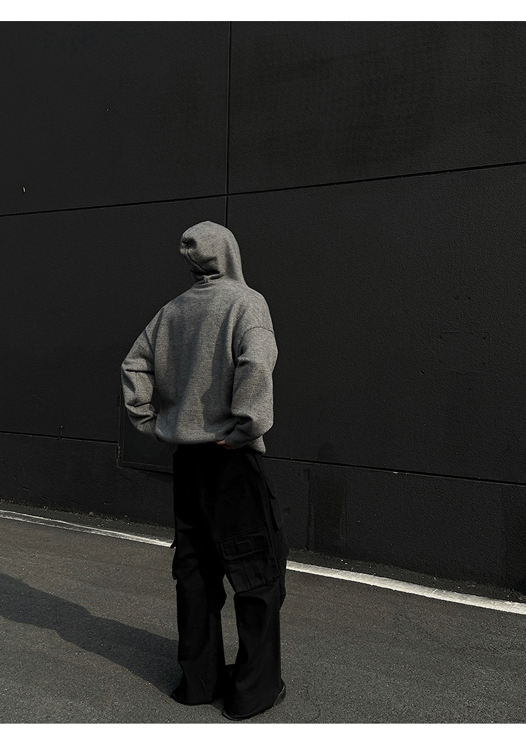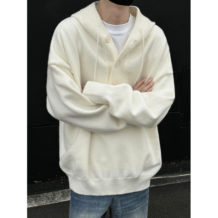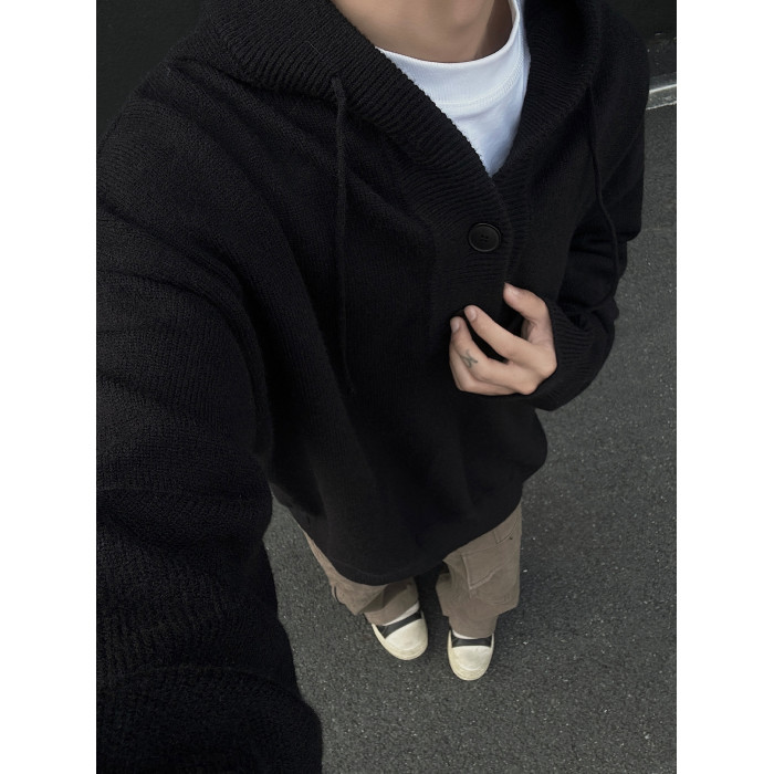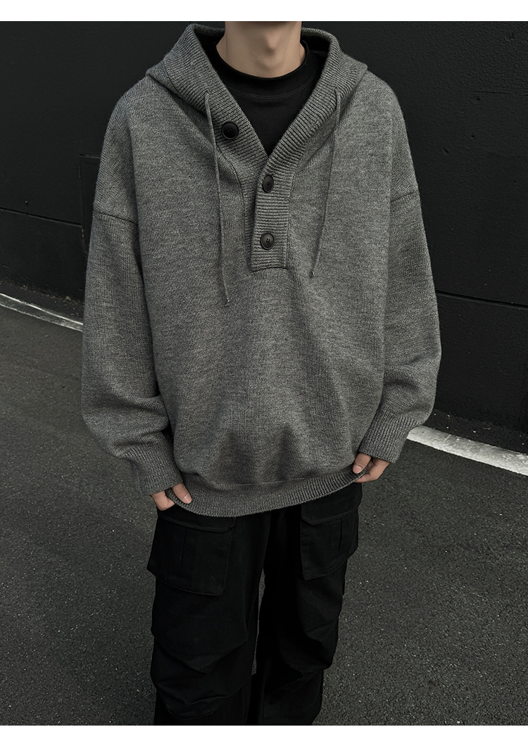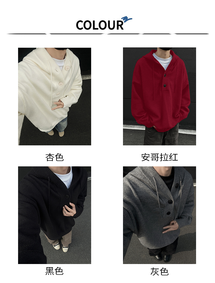 VUUG灰色重磅半開衫針織毛衣男春秋冬季潮牌寬松休閒男生連帽外套