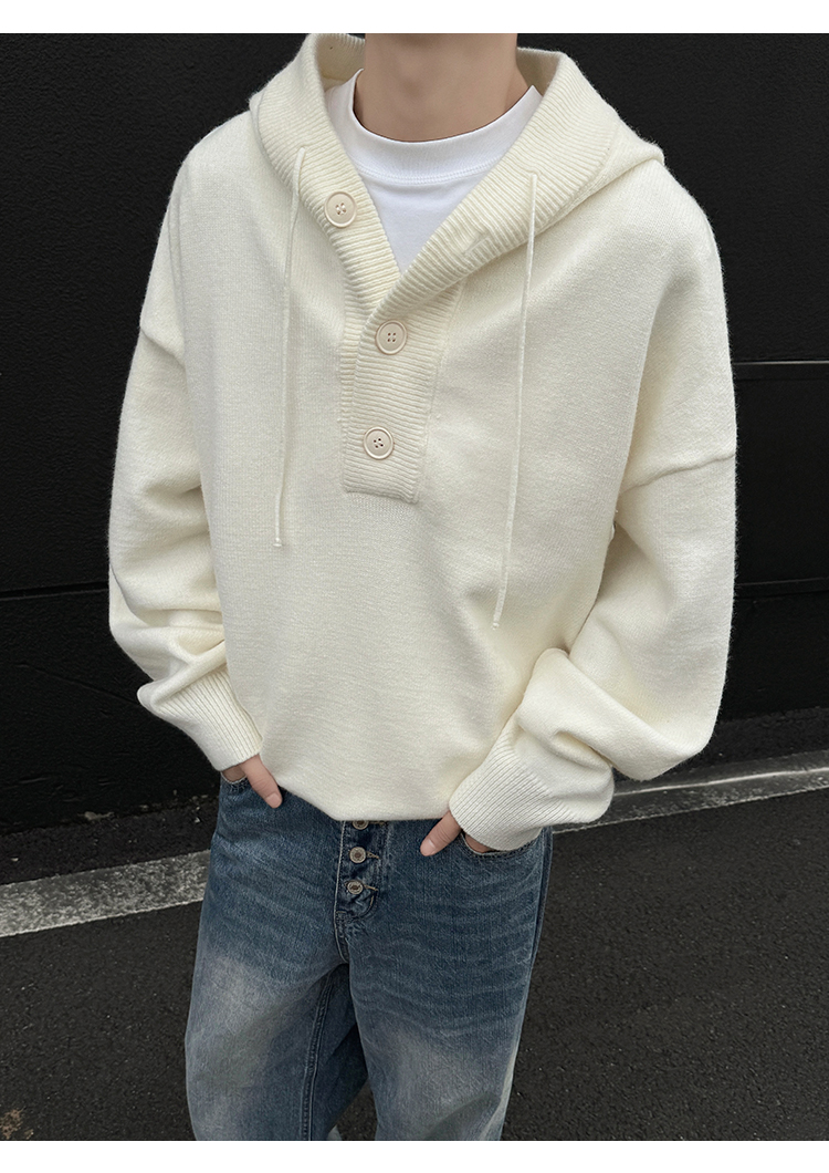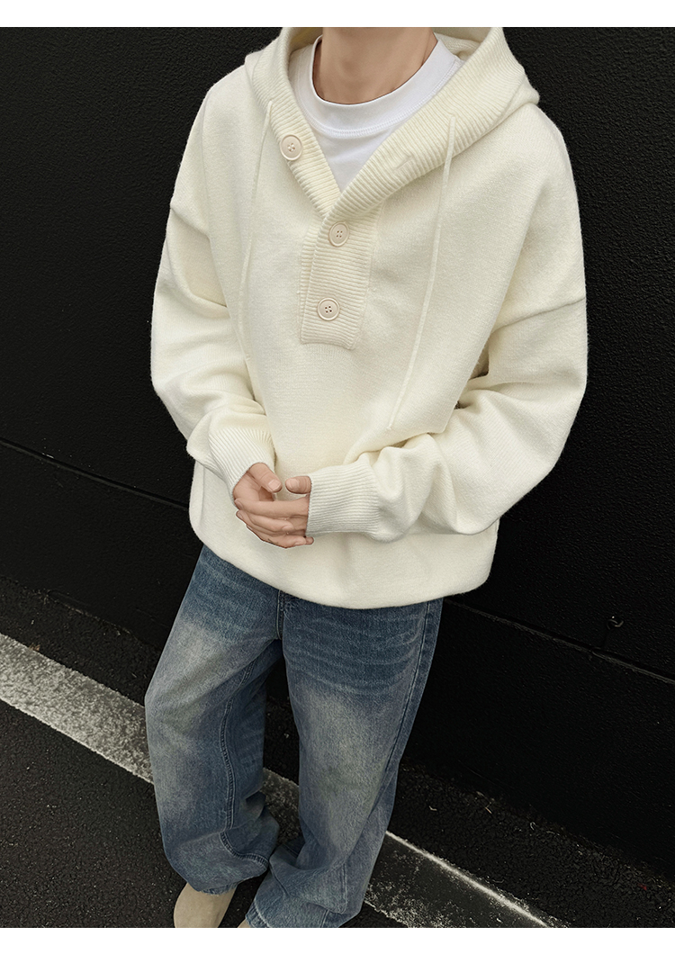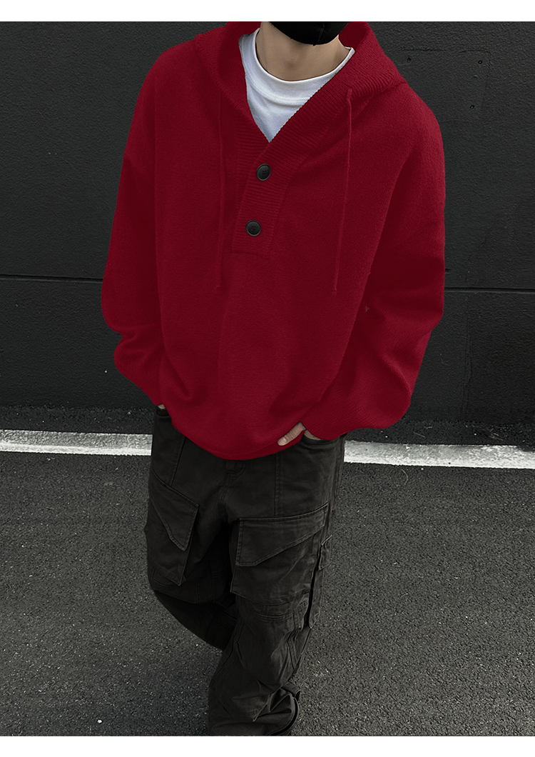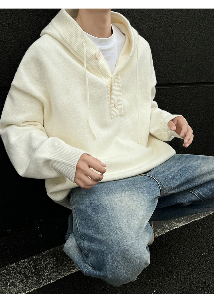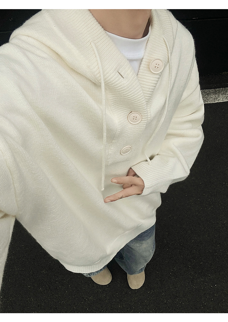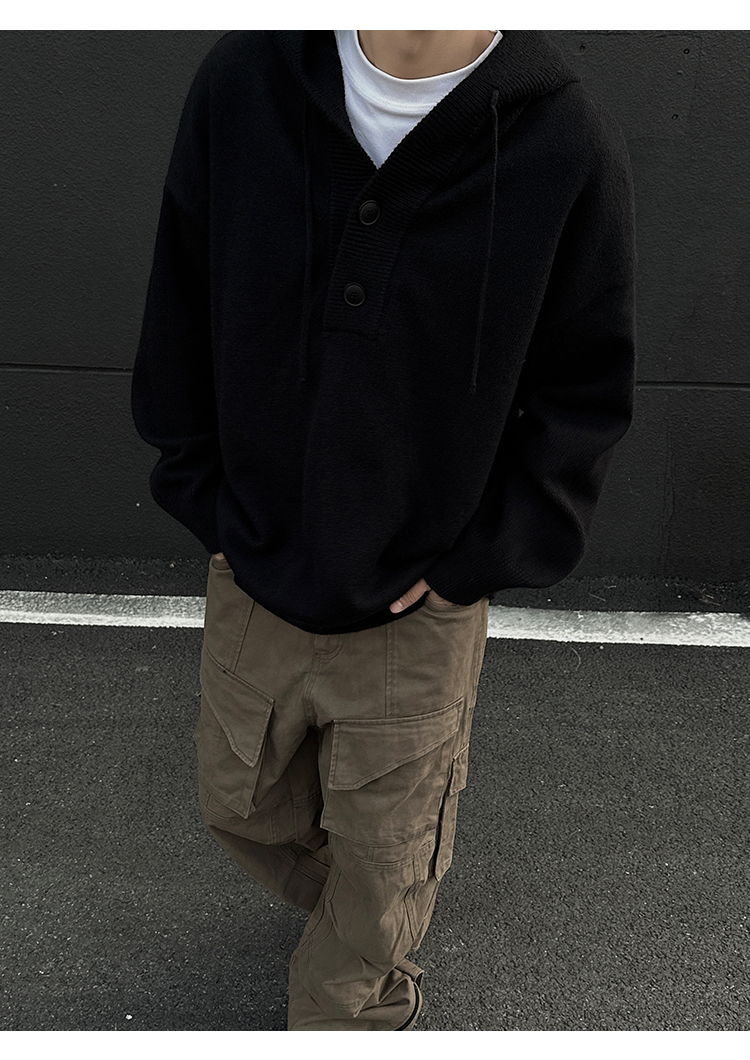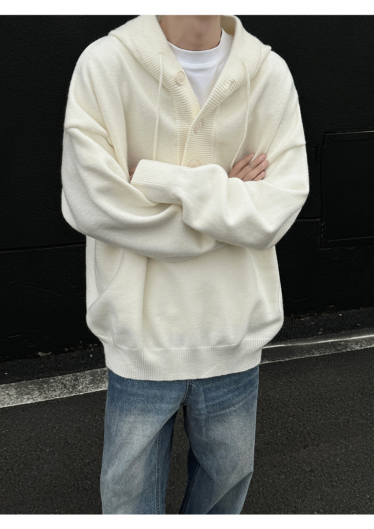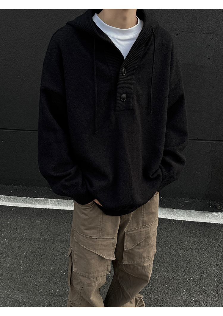 VUUG灰色重磅半開衫針織毛衣男春秋冬季潮牌寬松休閒男生連帽外套