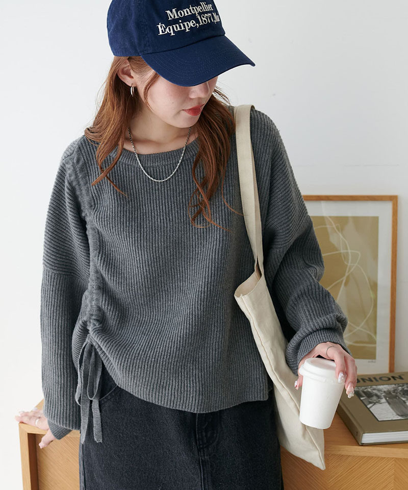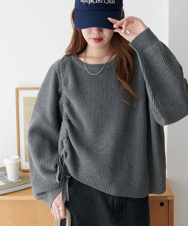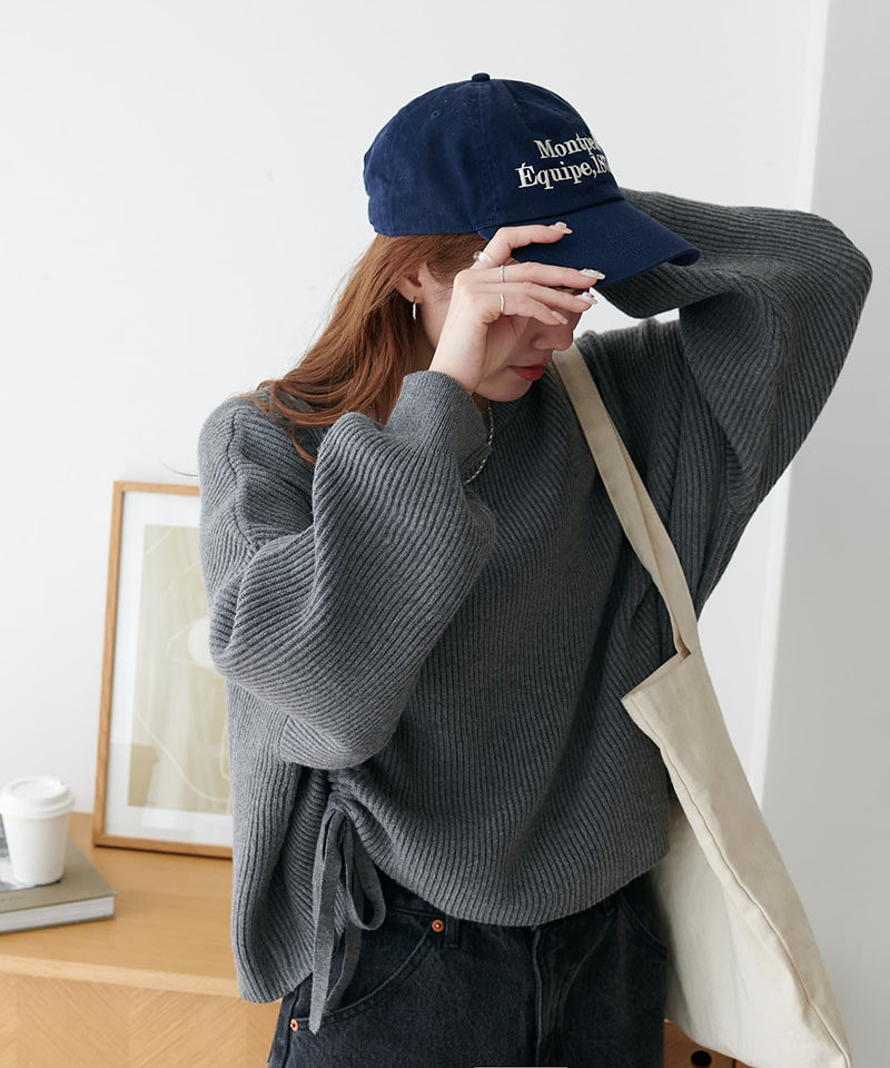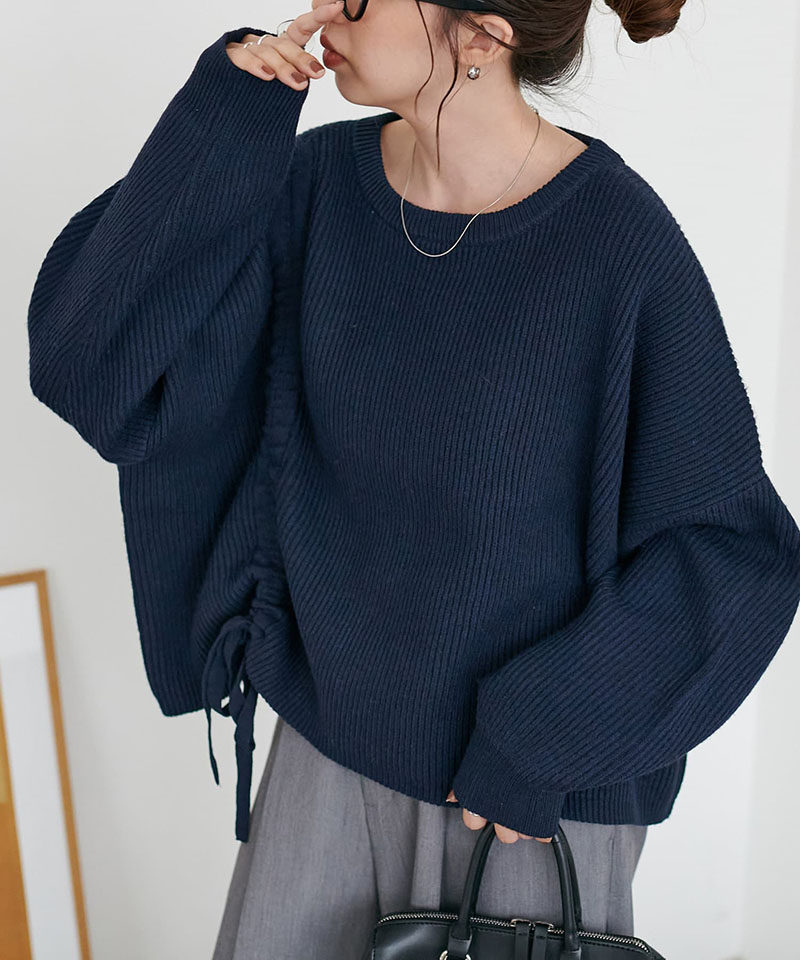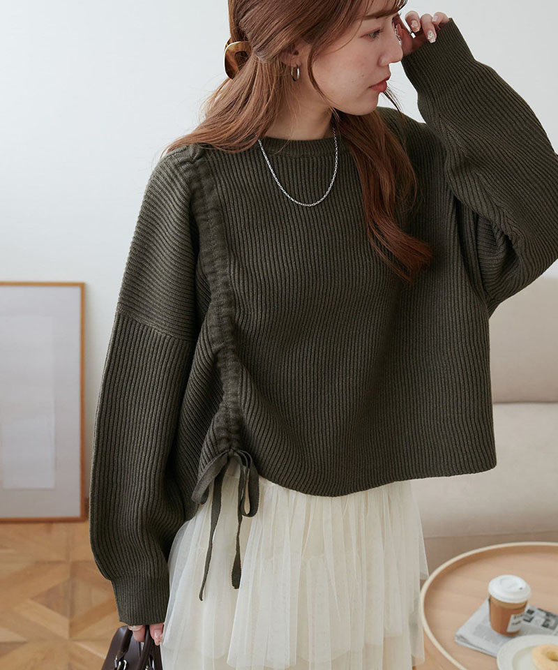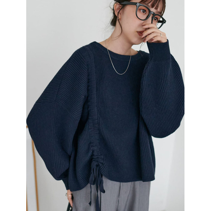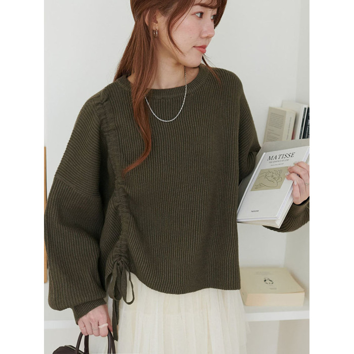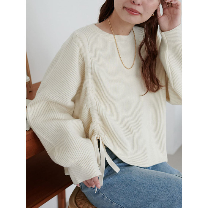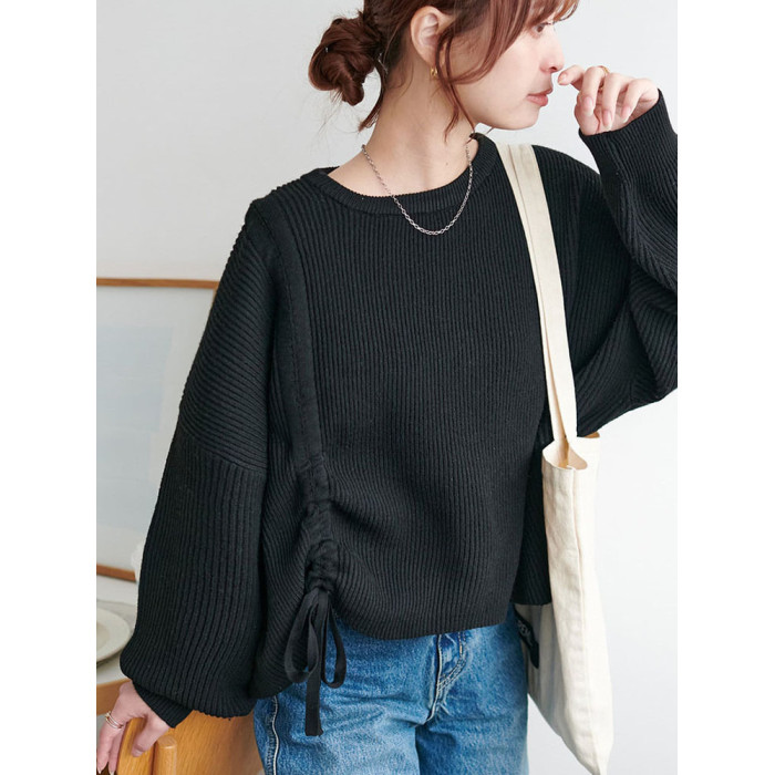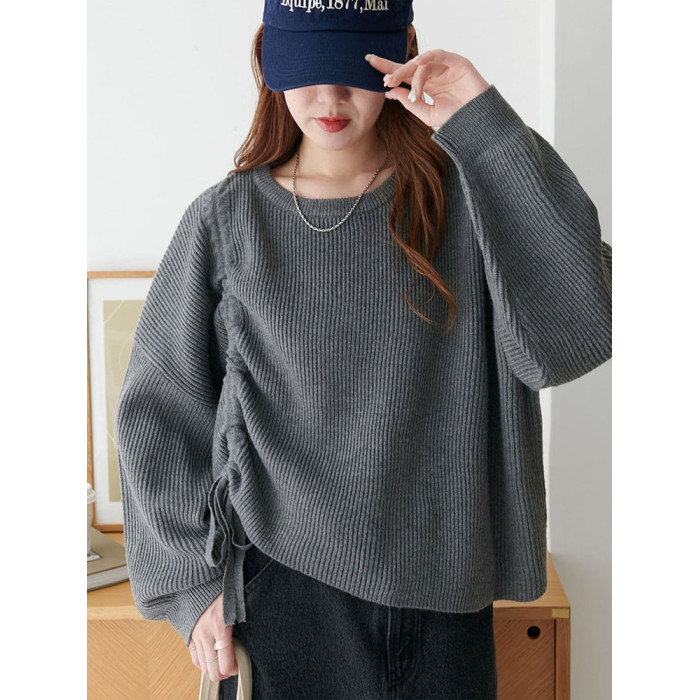 特價清 D 秋款 不規則側邊抽繩系帶寬松套頭長袖毛衣女