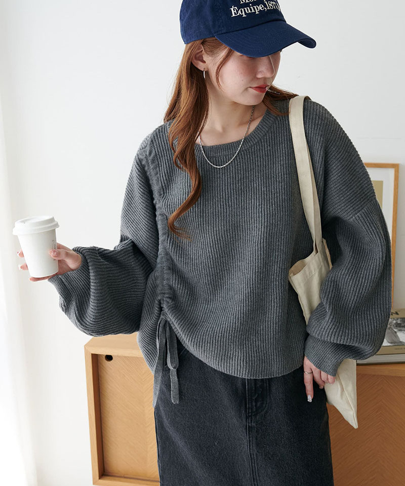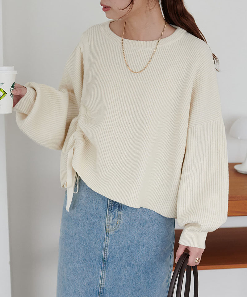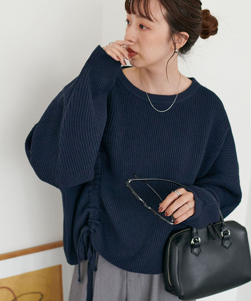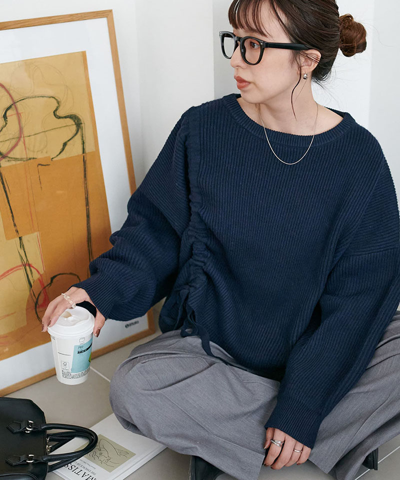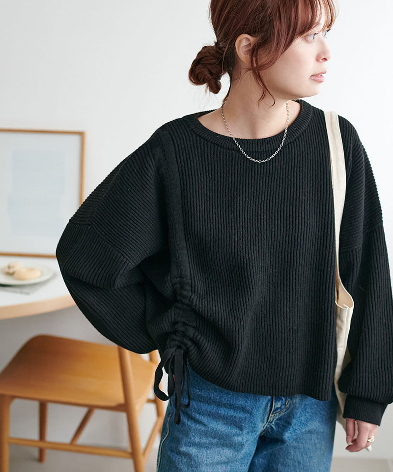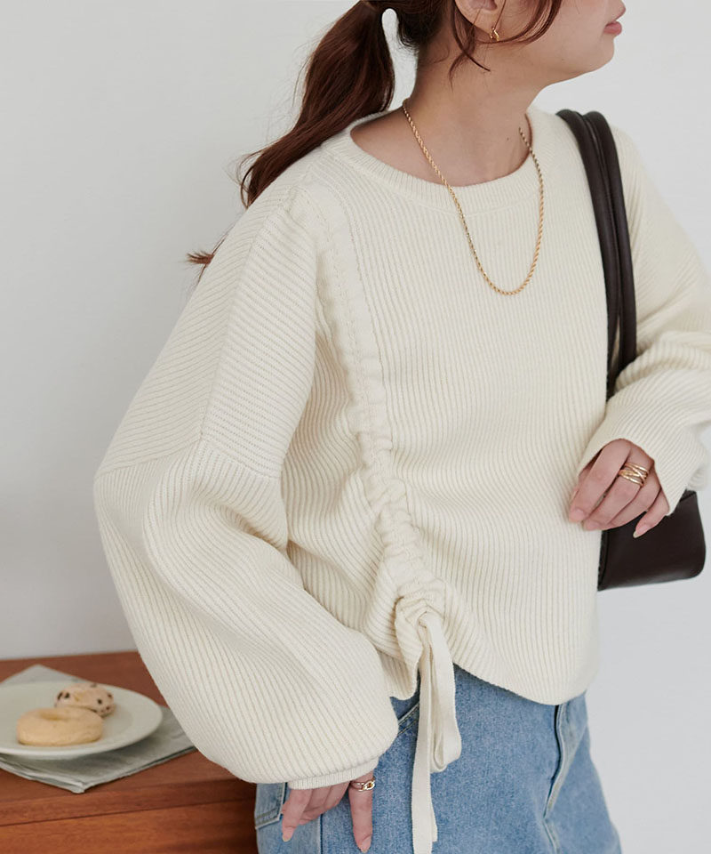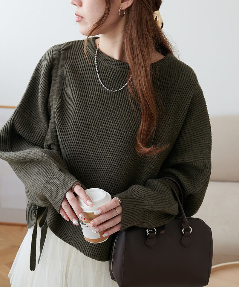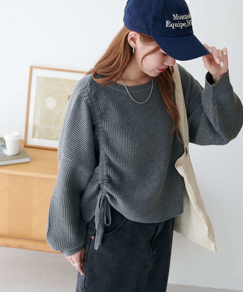 特價清 D 秋款 不規則側邊抽繩系帶寬松套頭長袖毛衣女