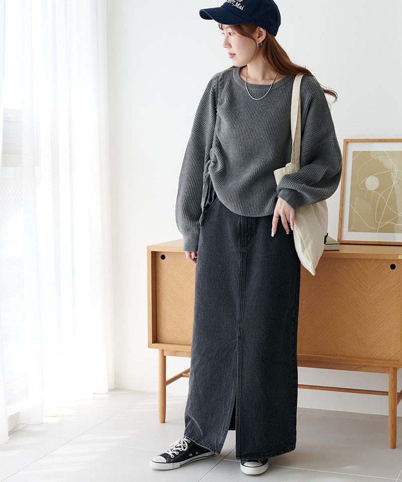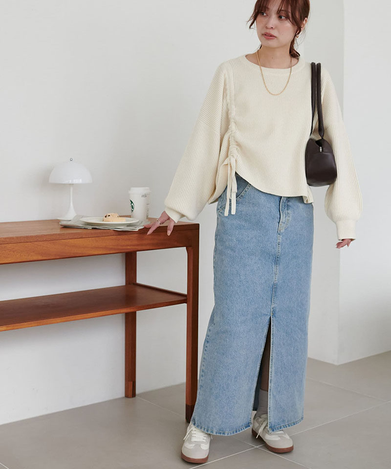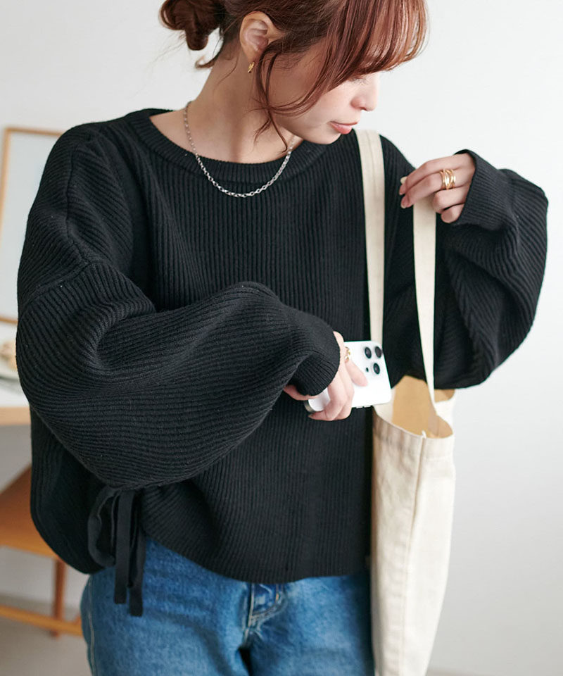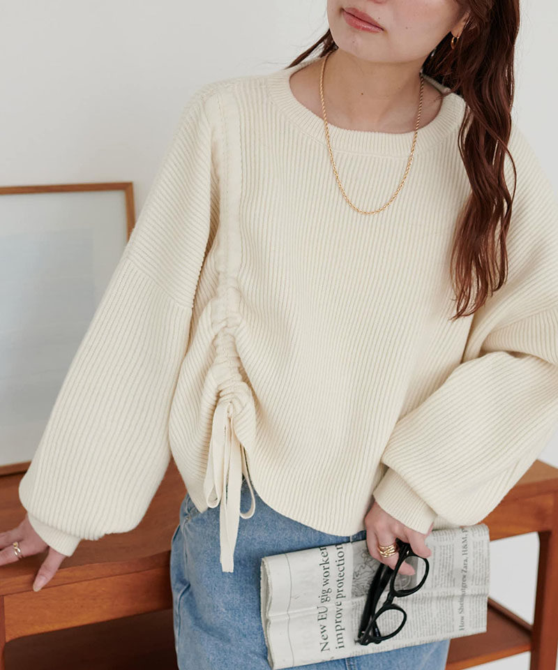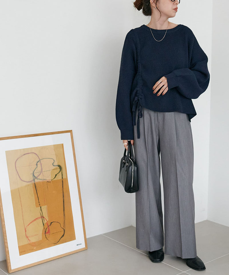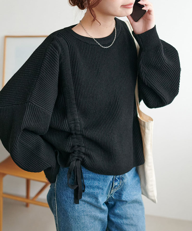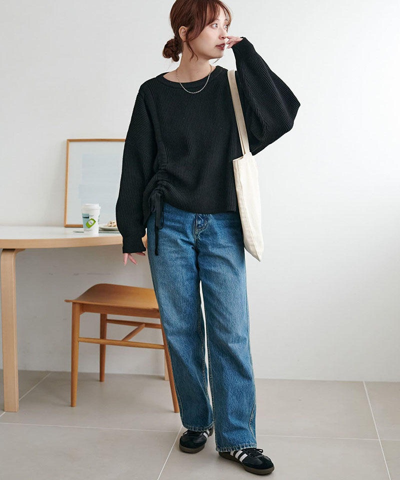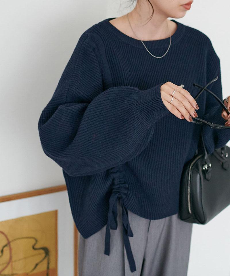 特價清 D 秋款 不規則側邊抽繩系帶寬松套頭長袖毛衣女