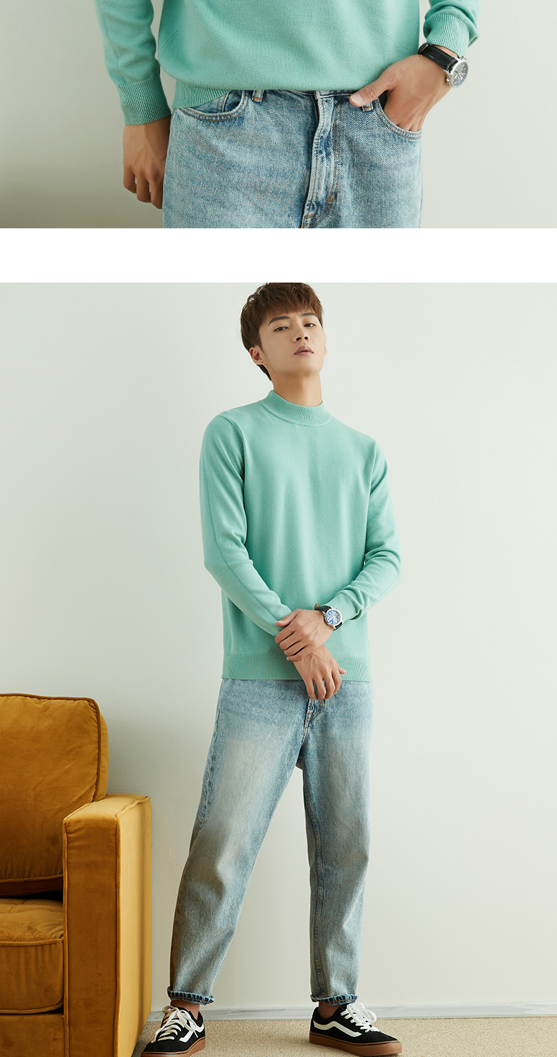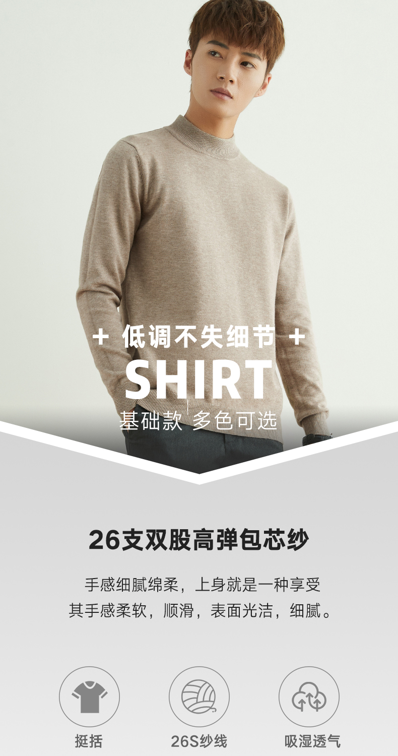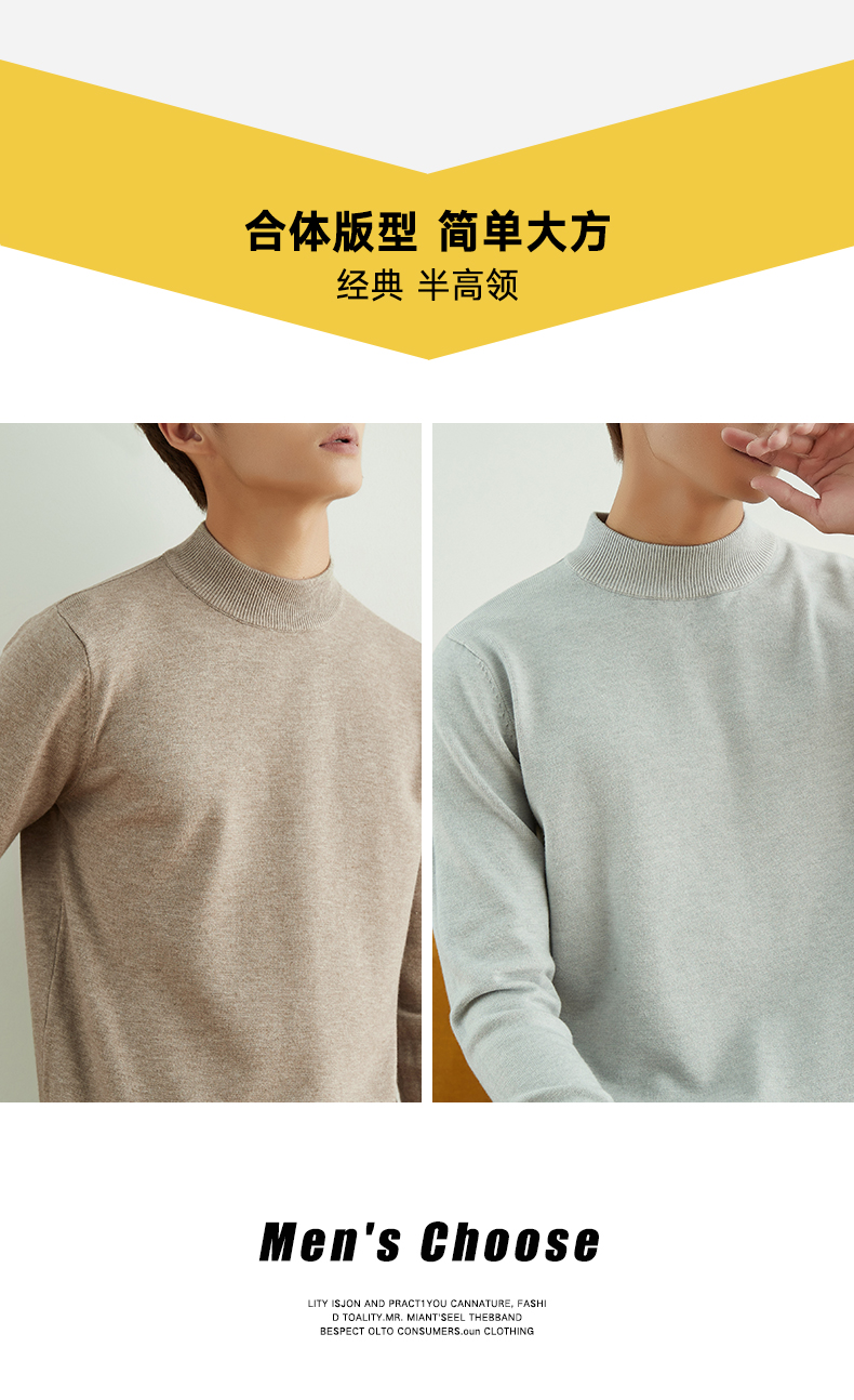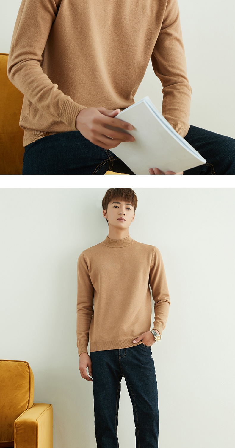 秋冬季羊絨衫男商務青年半高領套頭打底衫加厚保暖羊絨針織衫男裝
