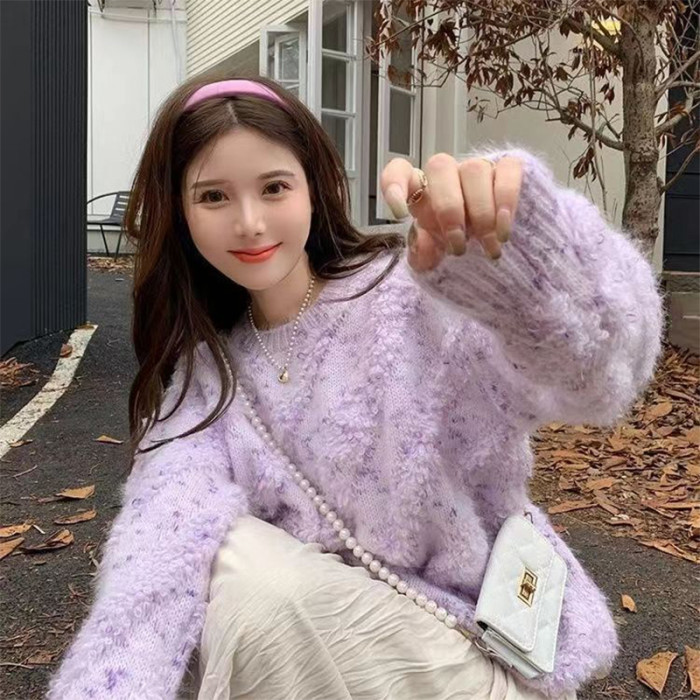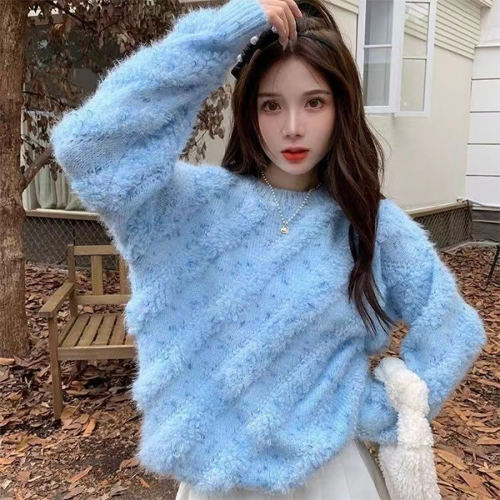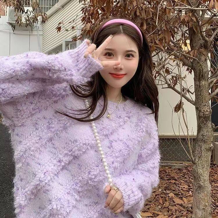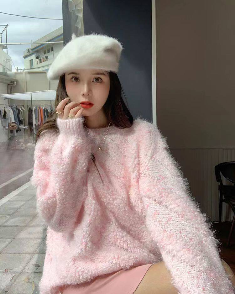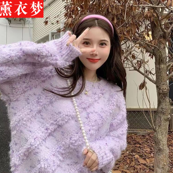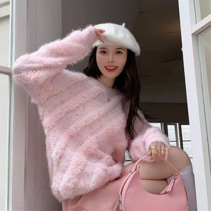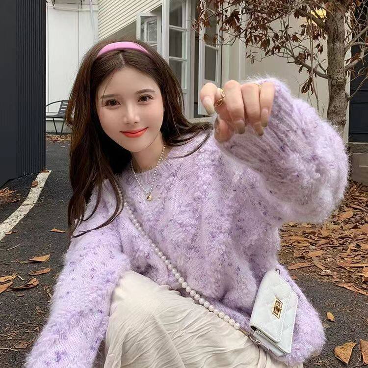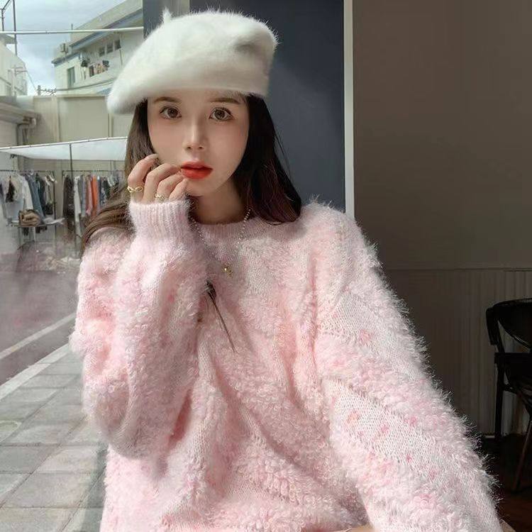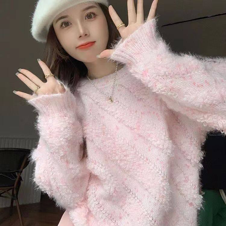 針織衫設計感軟糯長袖毛衣女裝秋季套頭新款寬松慵懶風毛絨絨上衣