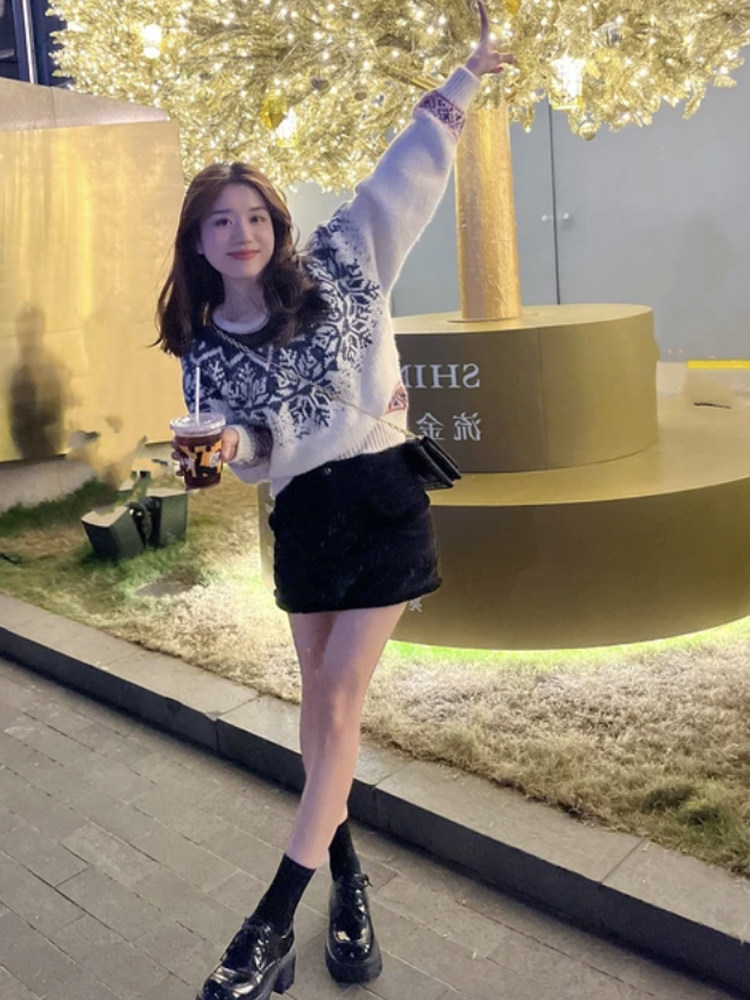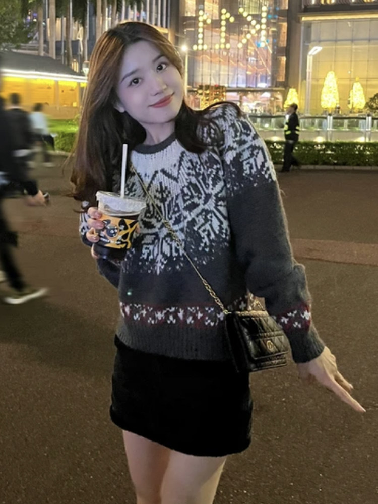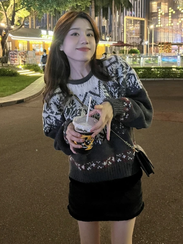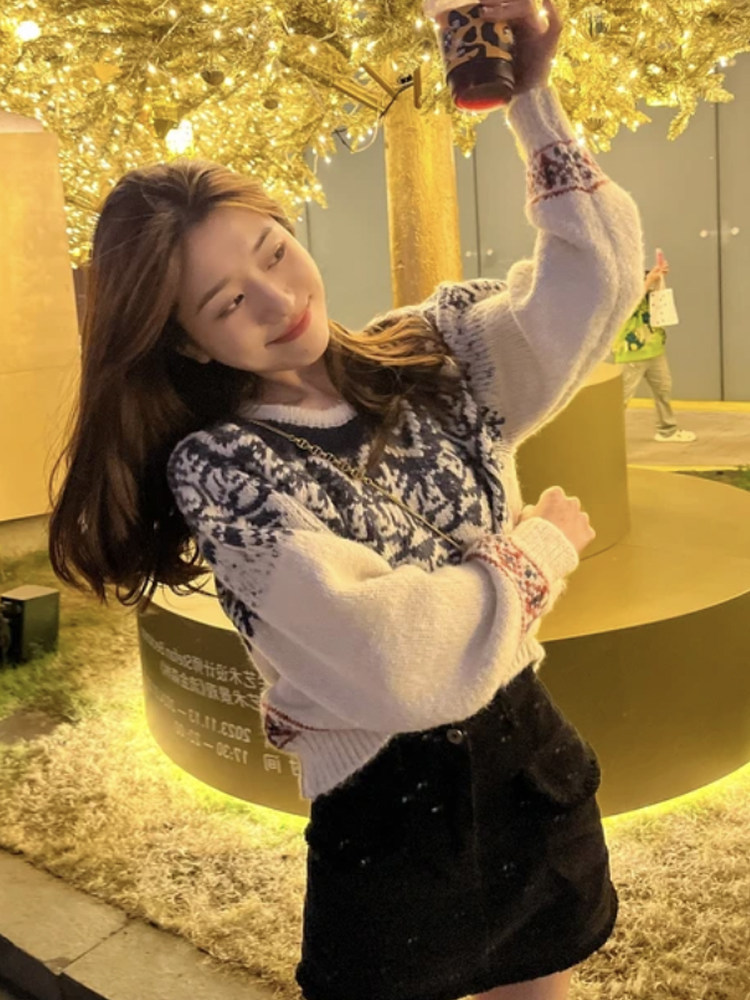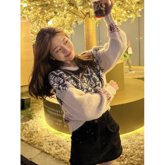 復古費爾島毛衣女士短款小個子秋冬季新款外穿加厚打底針織衫上衣