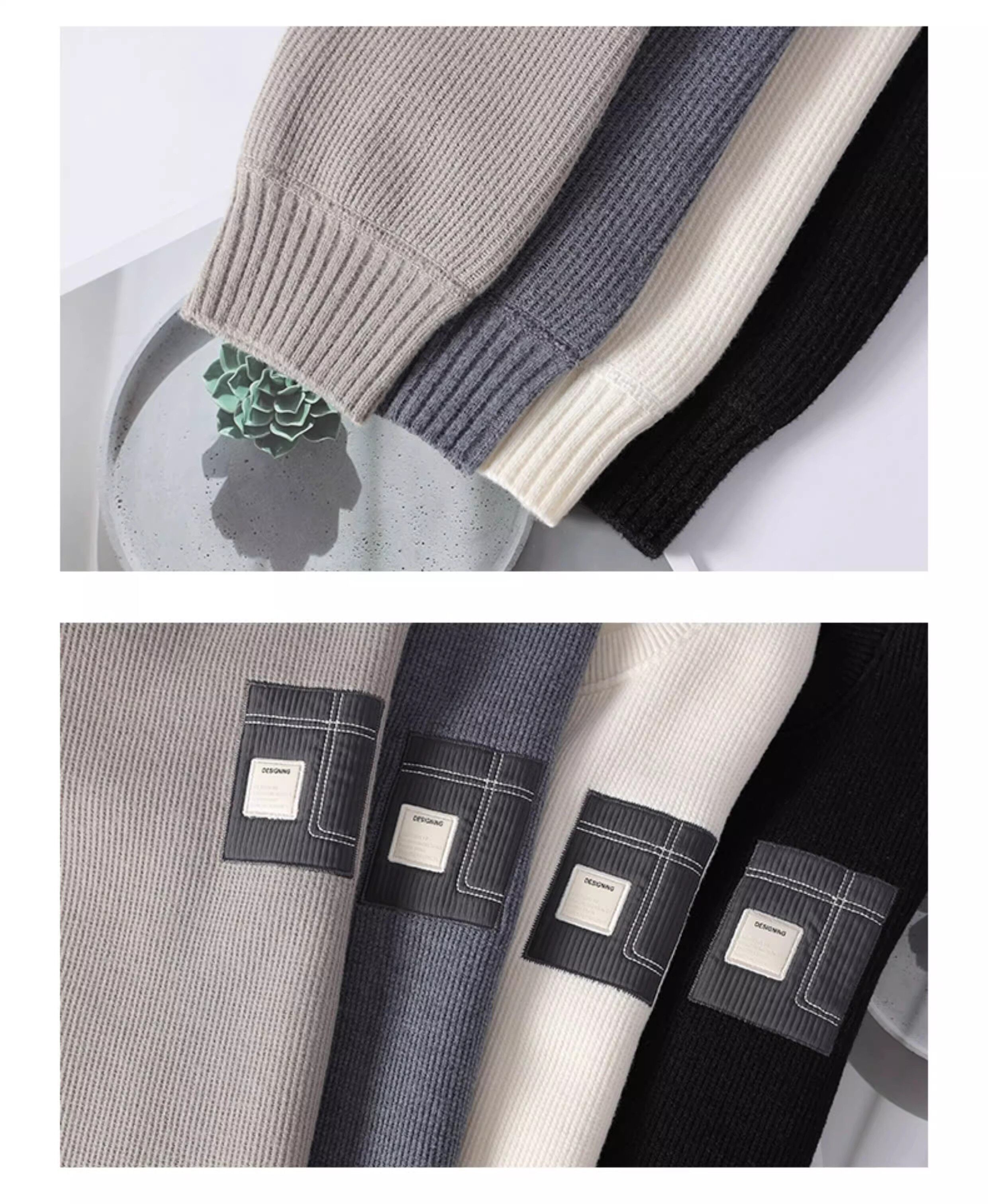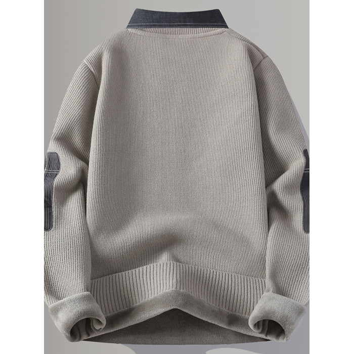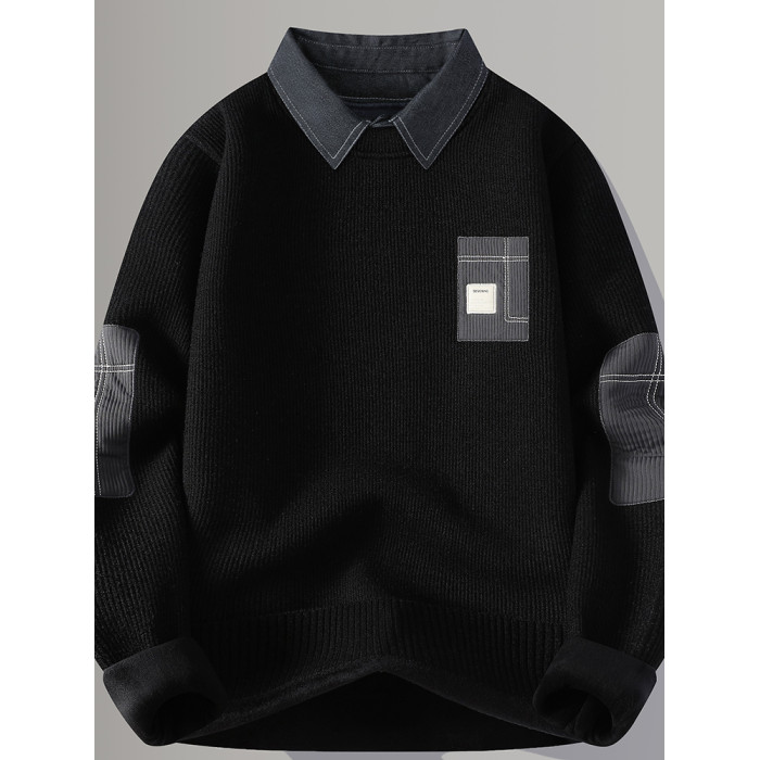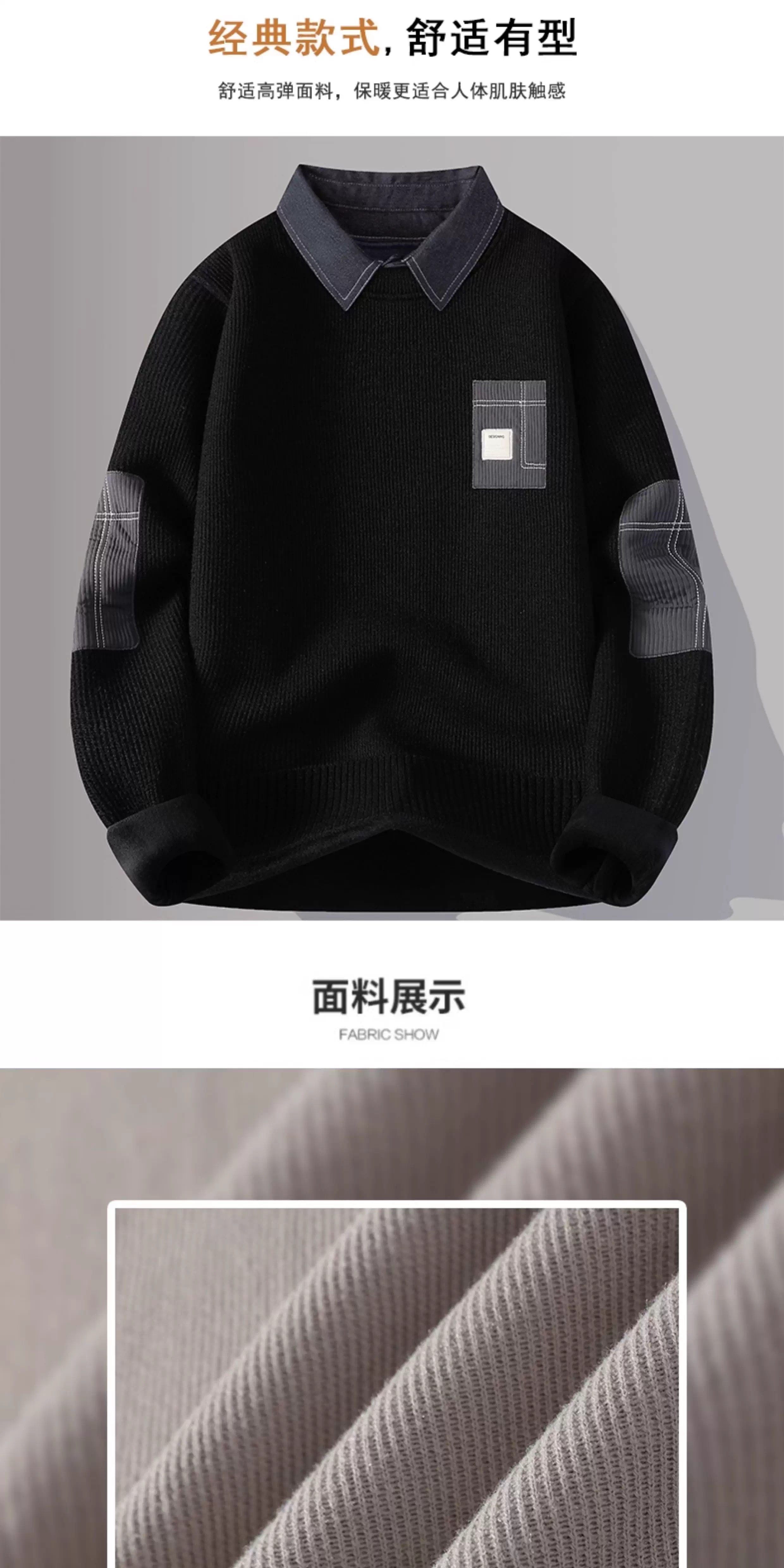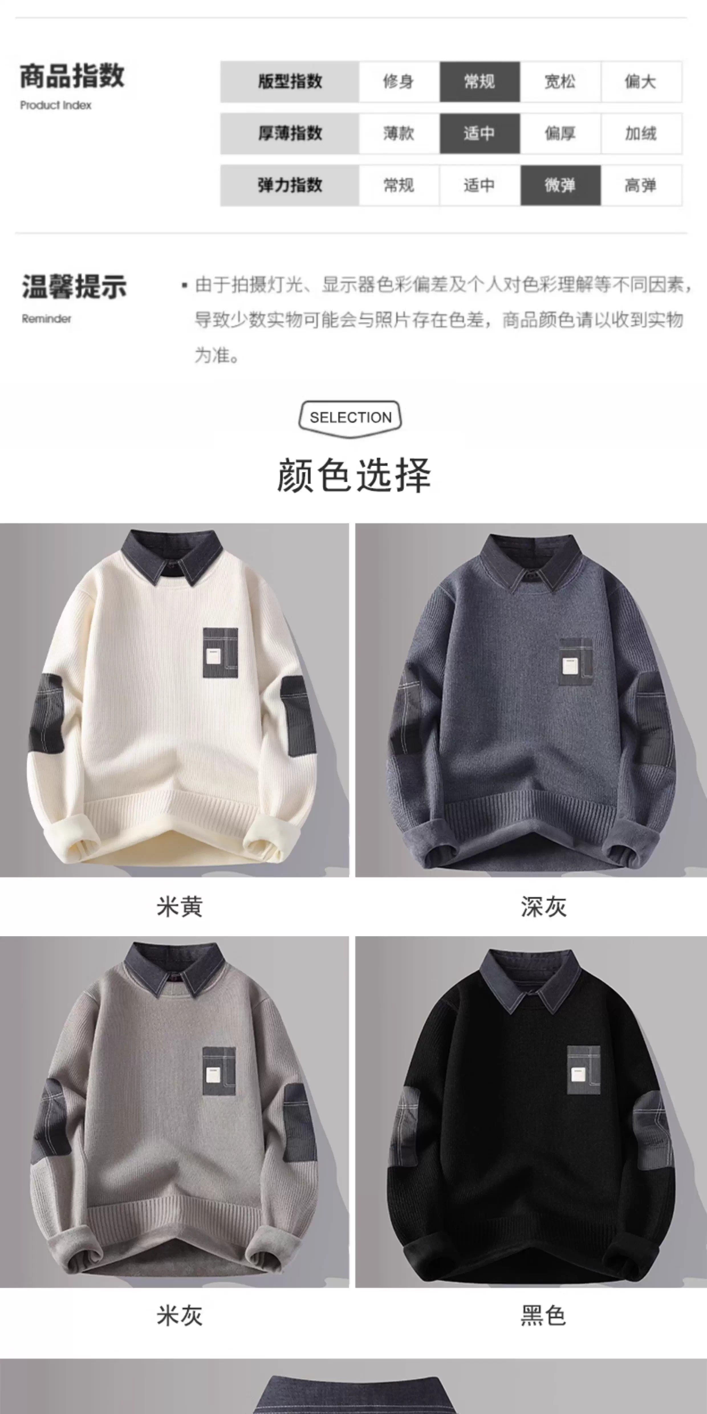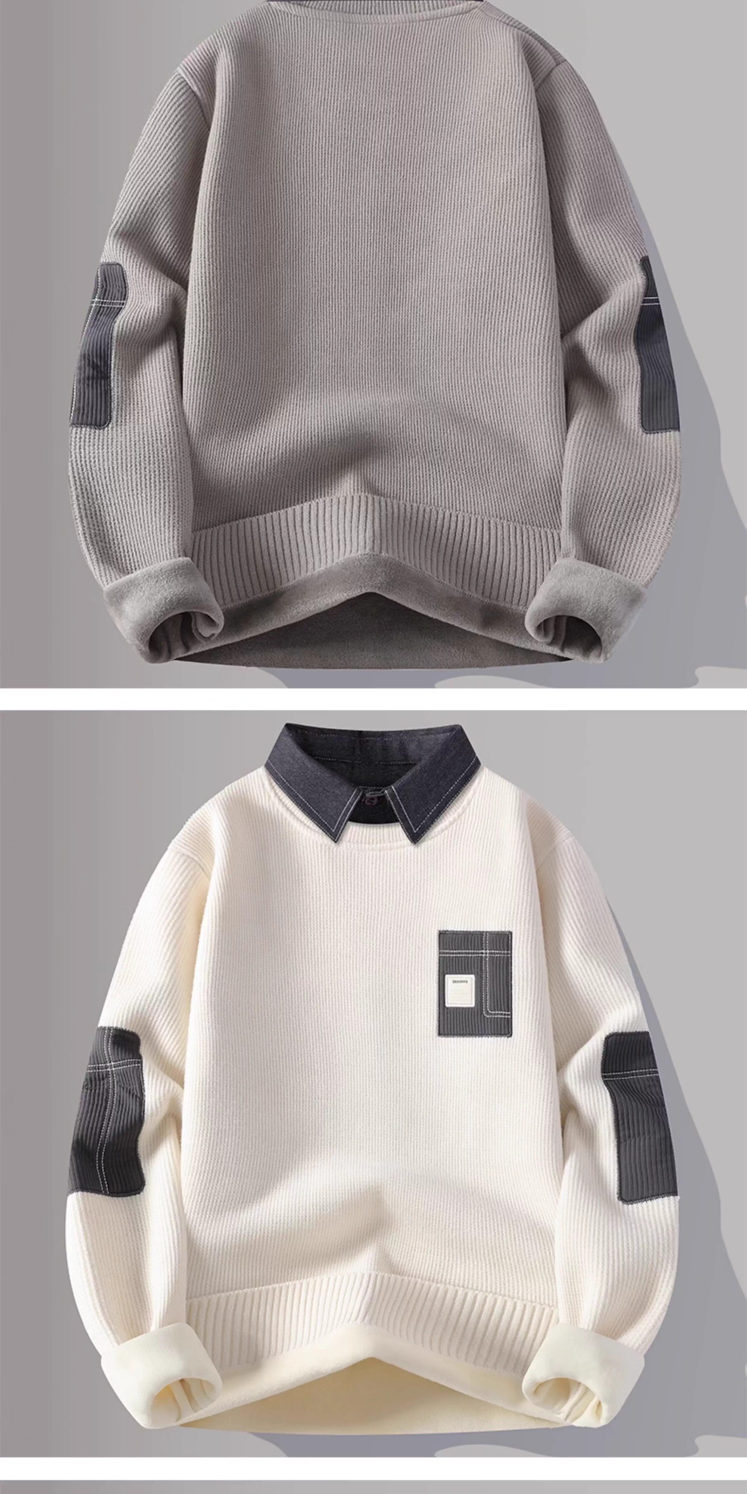 襯衫領一體絨毛衣男秋冬款加絨加厚假兩件長袖襯衣潮牌打底針織衫