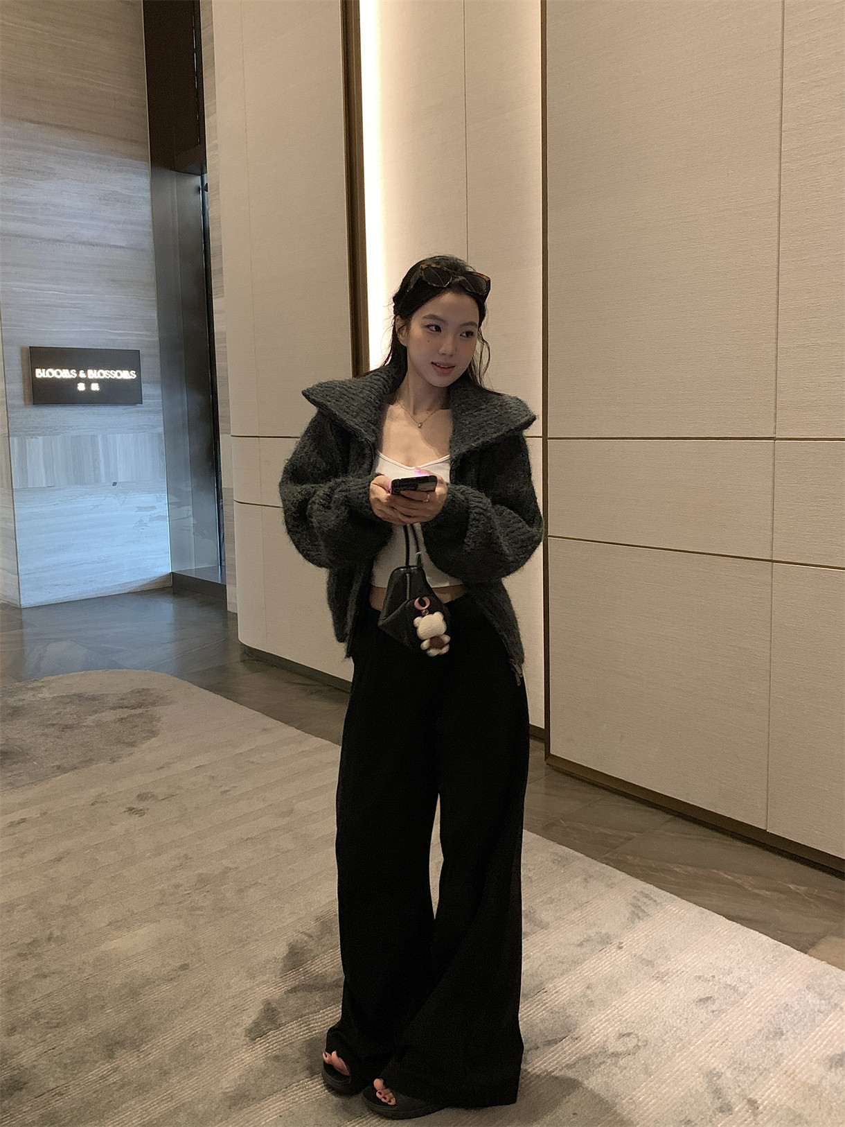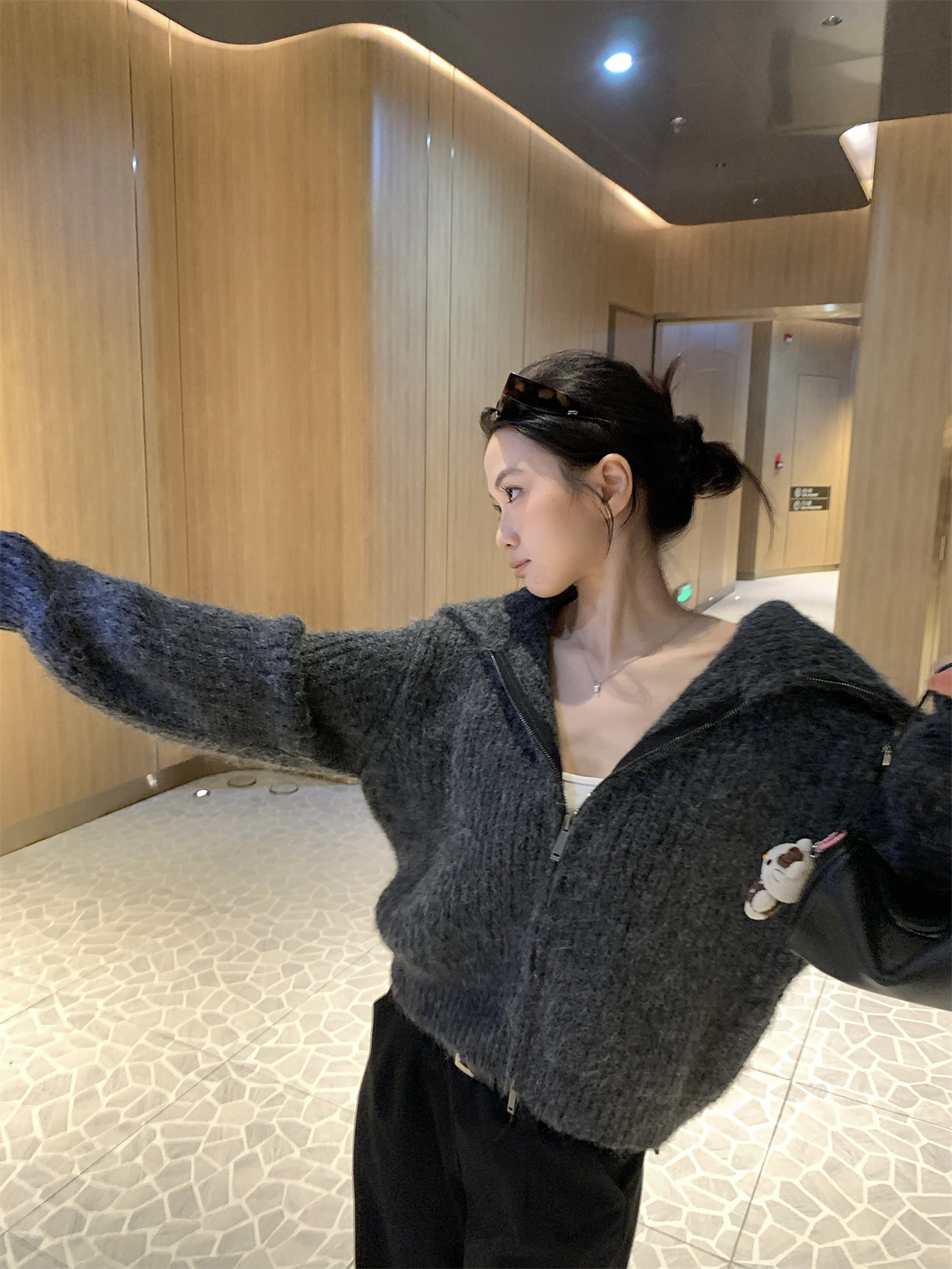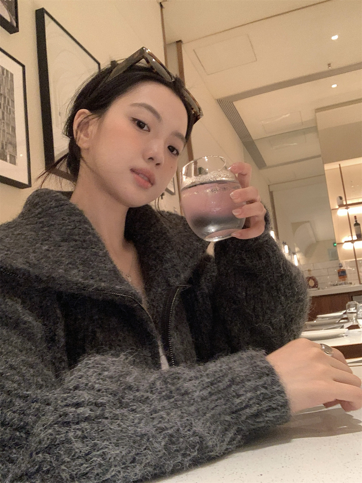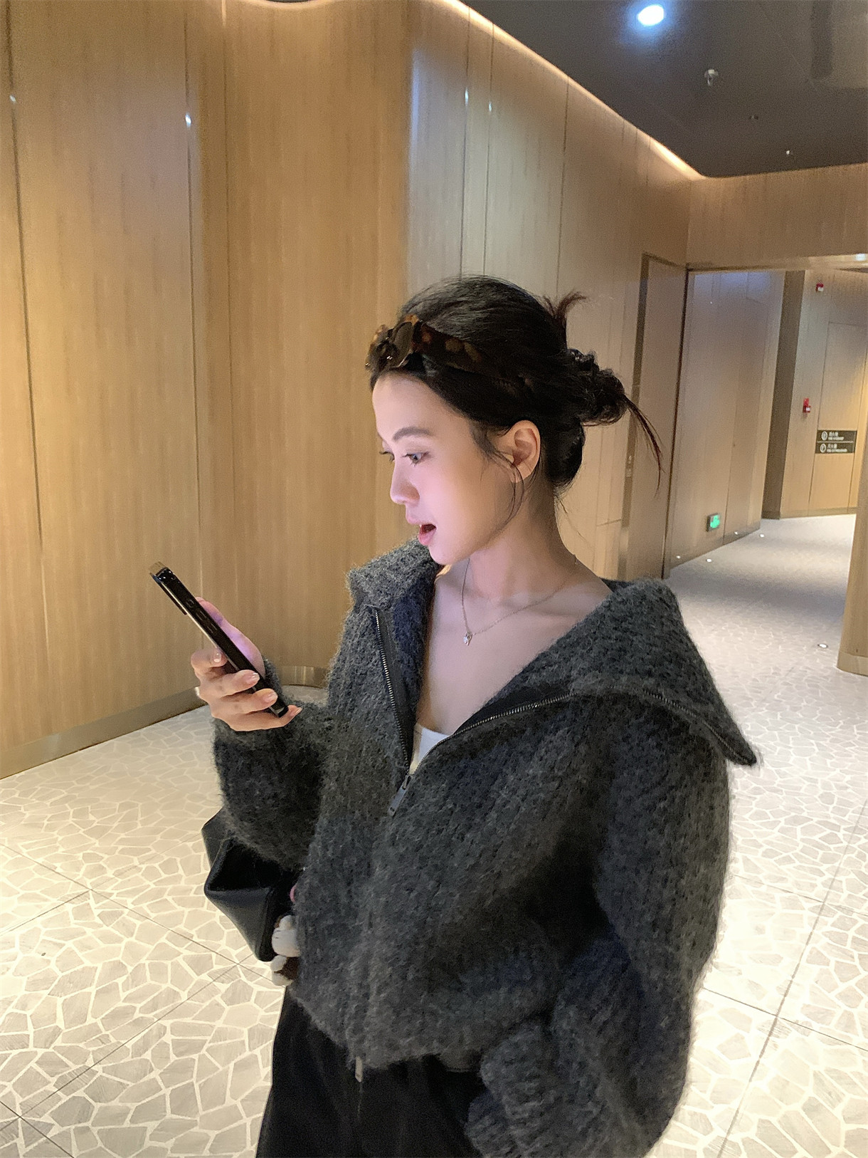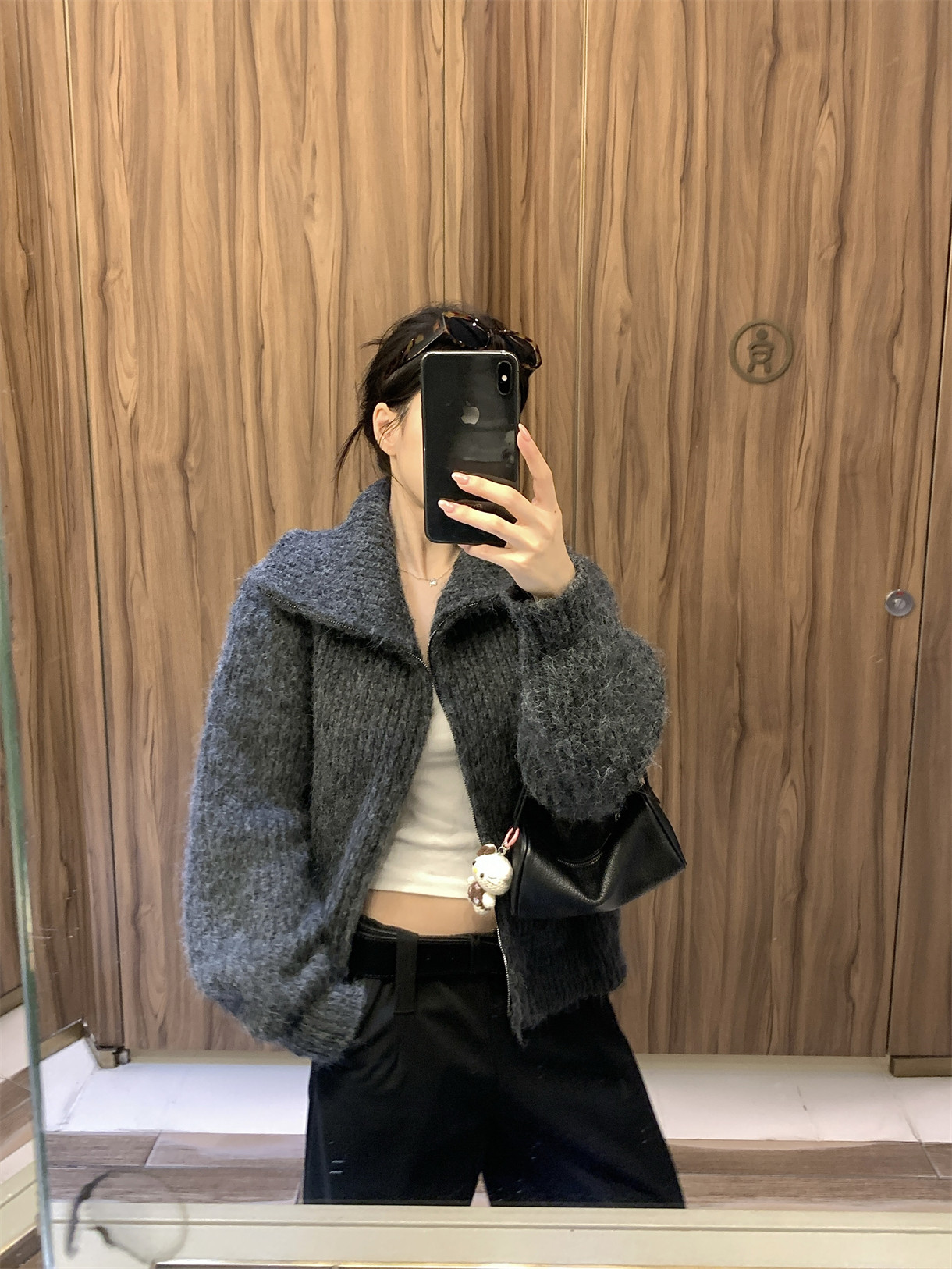 黑奶酪 BLACK~冬季老錢風慵懶厚實立領拉鍊毛衣外套翻領開衫