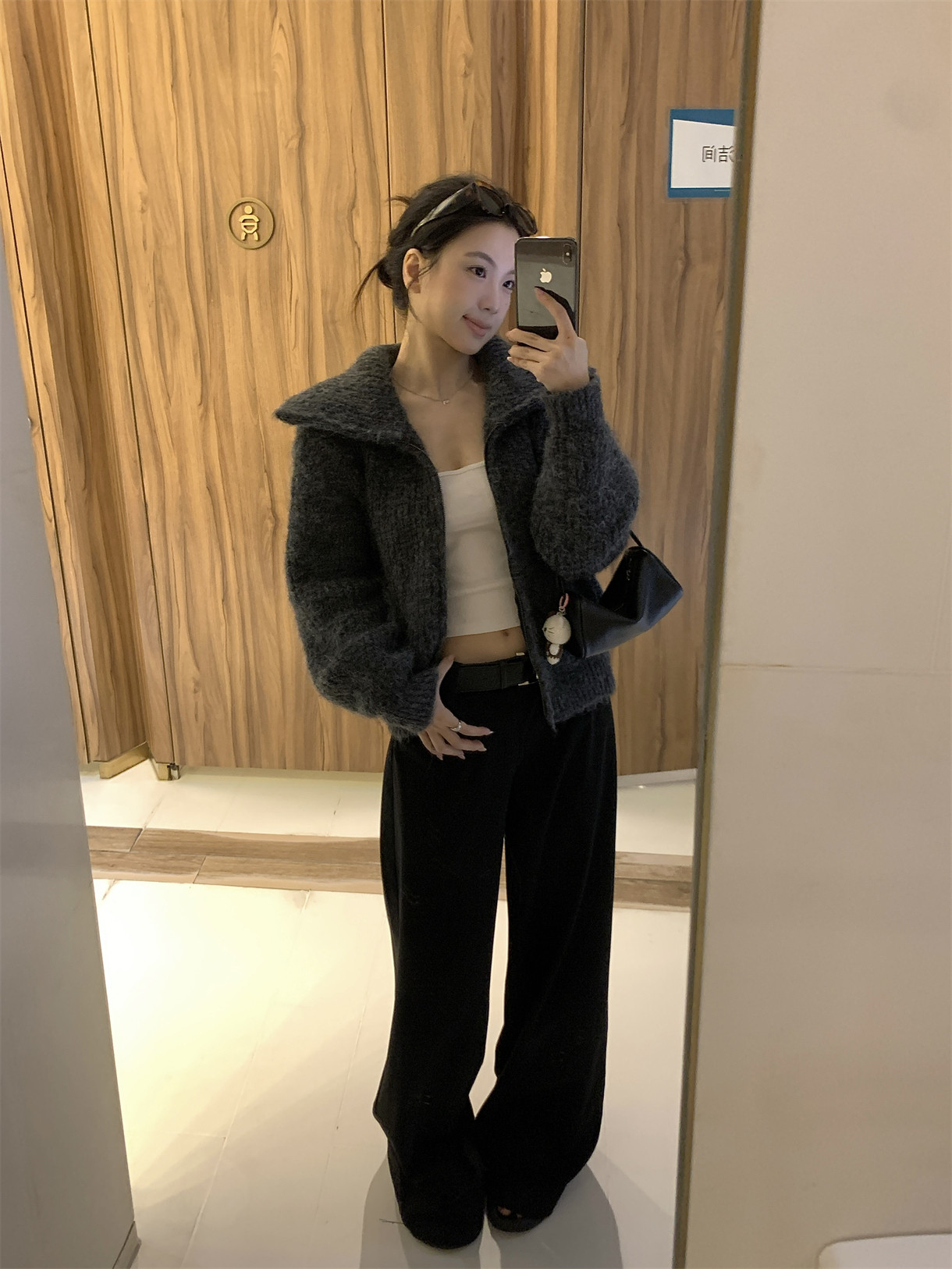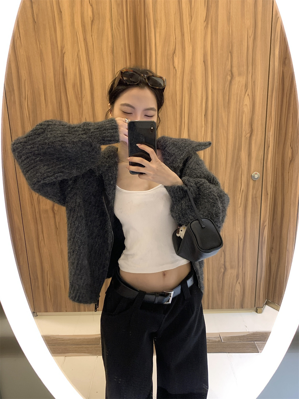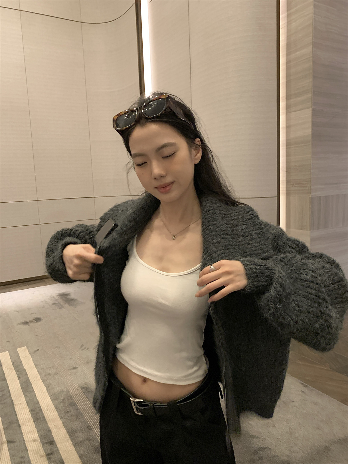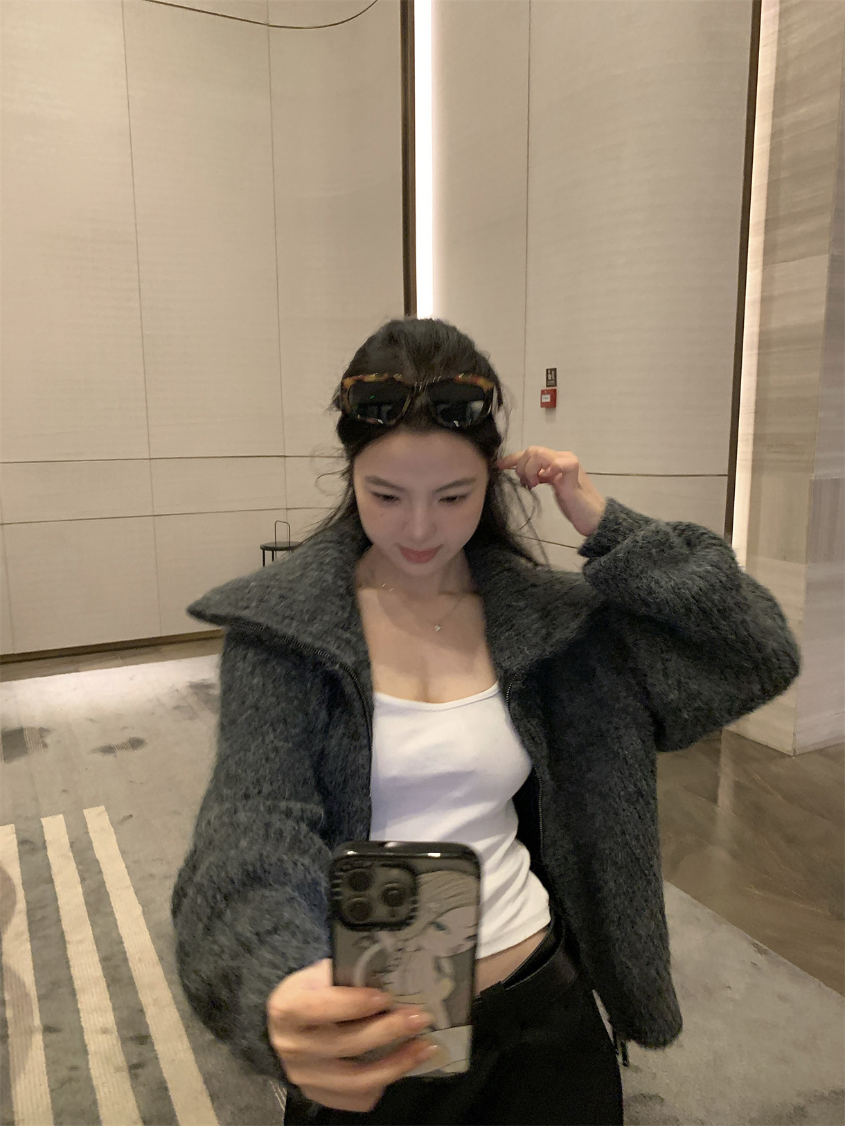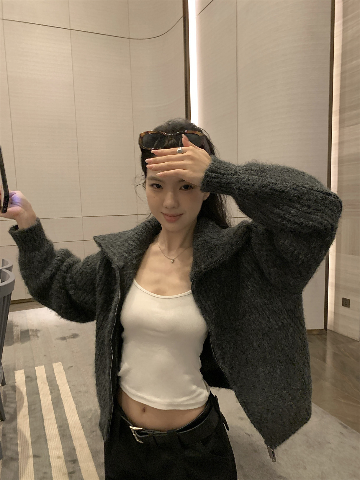 黑奶酪 BLACK~冬季老錢風慵懶厚實立領拉鍊毛衣外套翻領開衫
