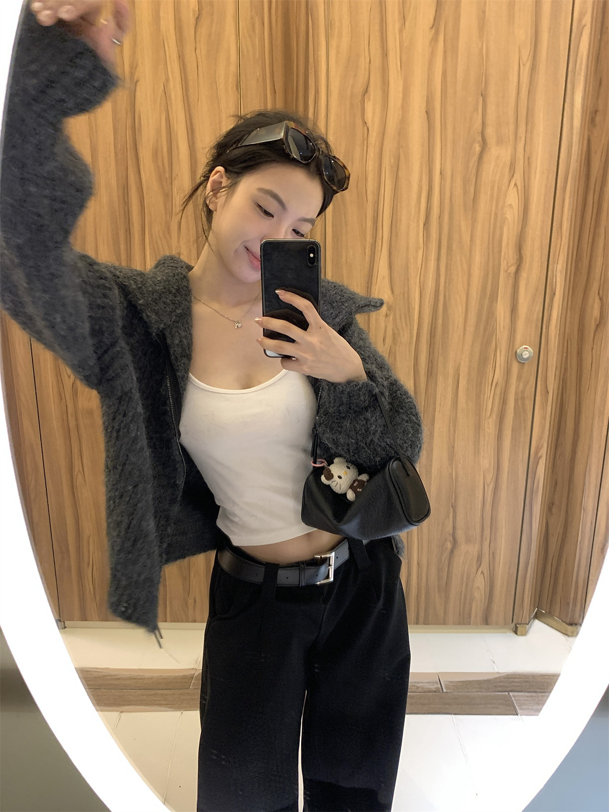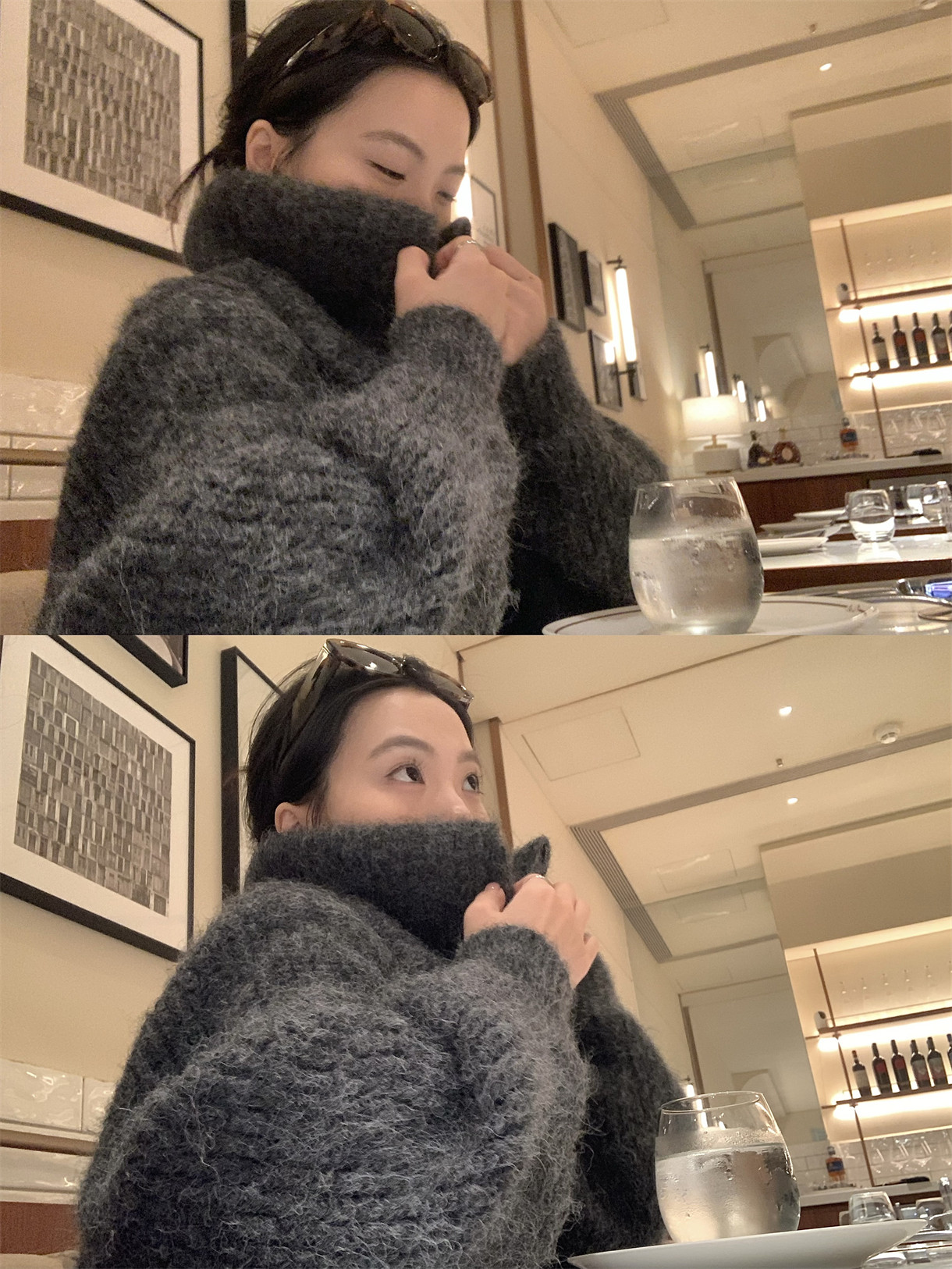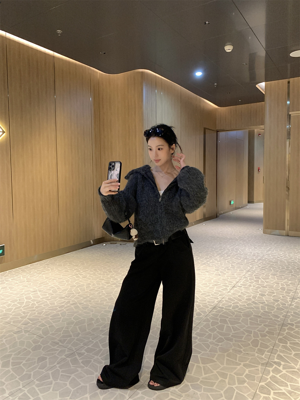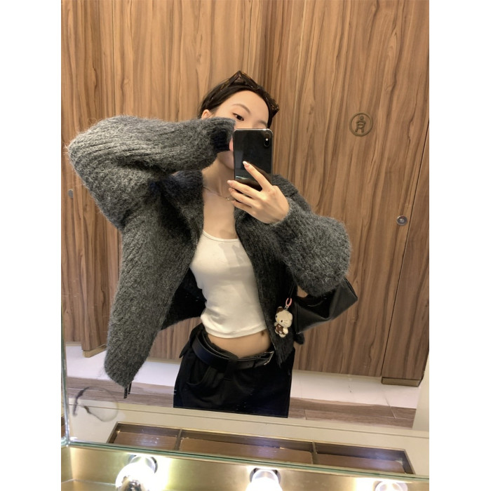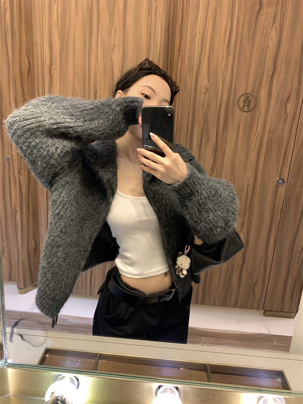 黑奶酪 BLACK~冬季老錢風慵懶厚實立領拉鍊毛衣外套翻領開衫