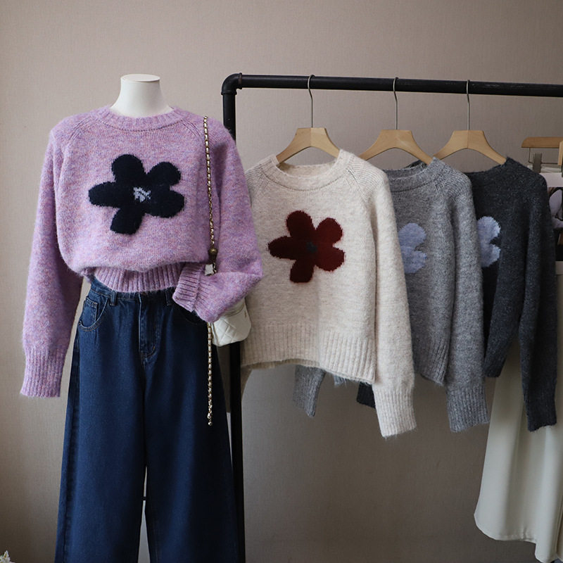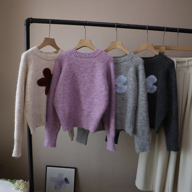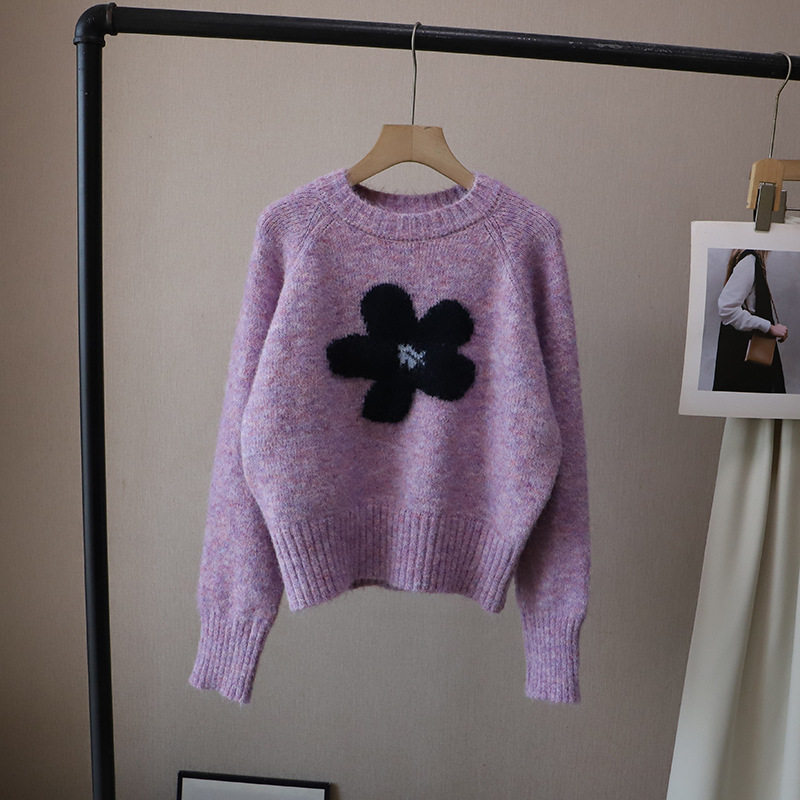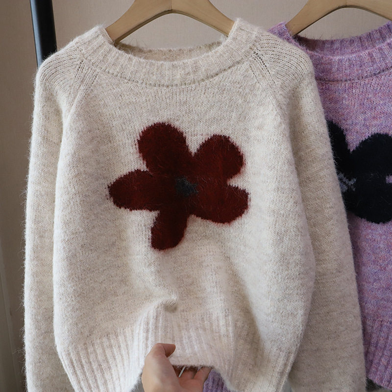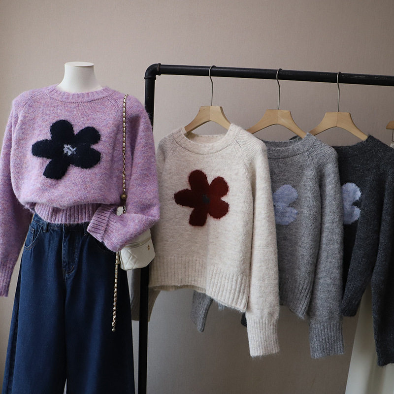 2025秋冬新款韓版圓領撞色減齡軟糯保暖百搭套頭毛衣女
