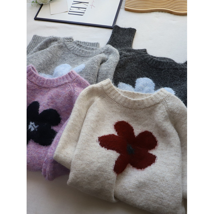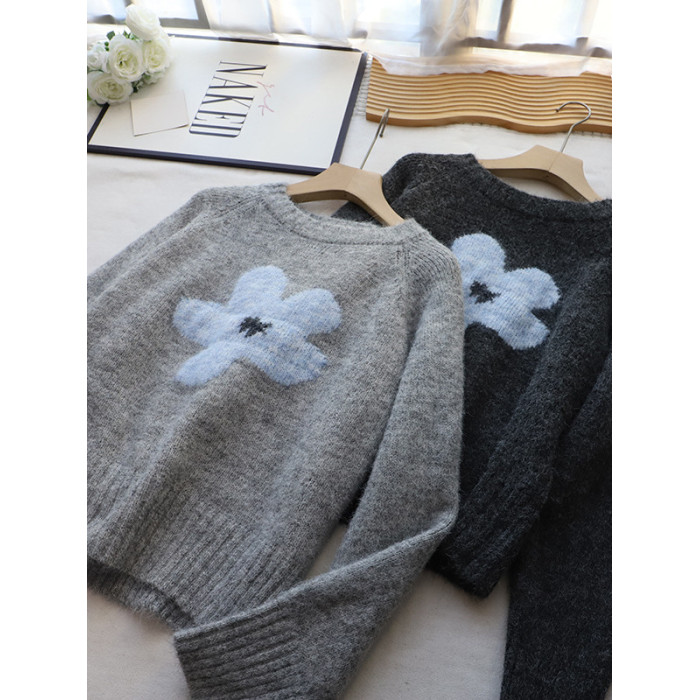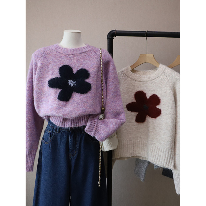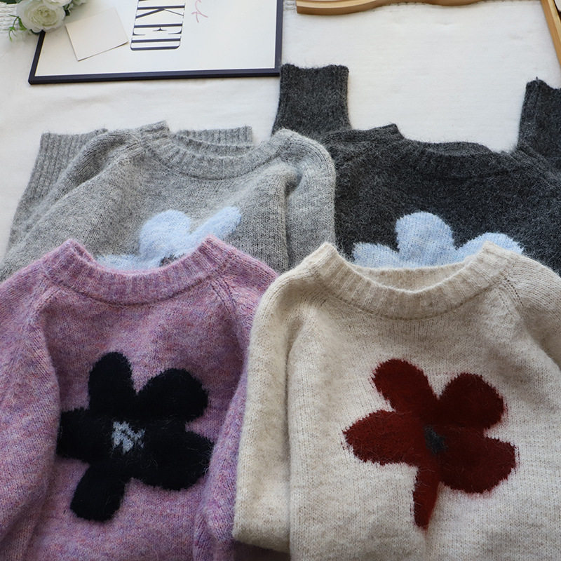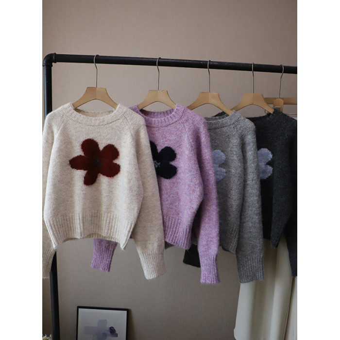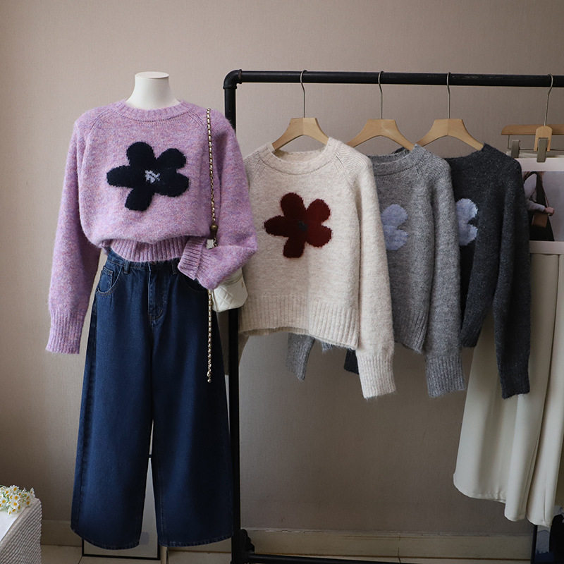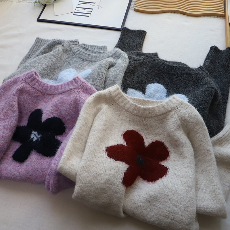 2025秋冬新款韓版圓領撞色減齡軟糯保暖百搭套頭毛衣女