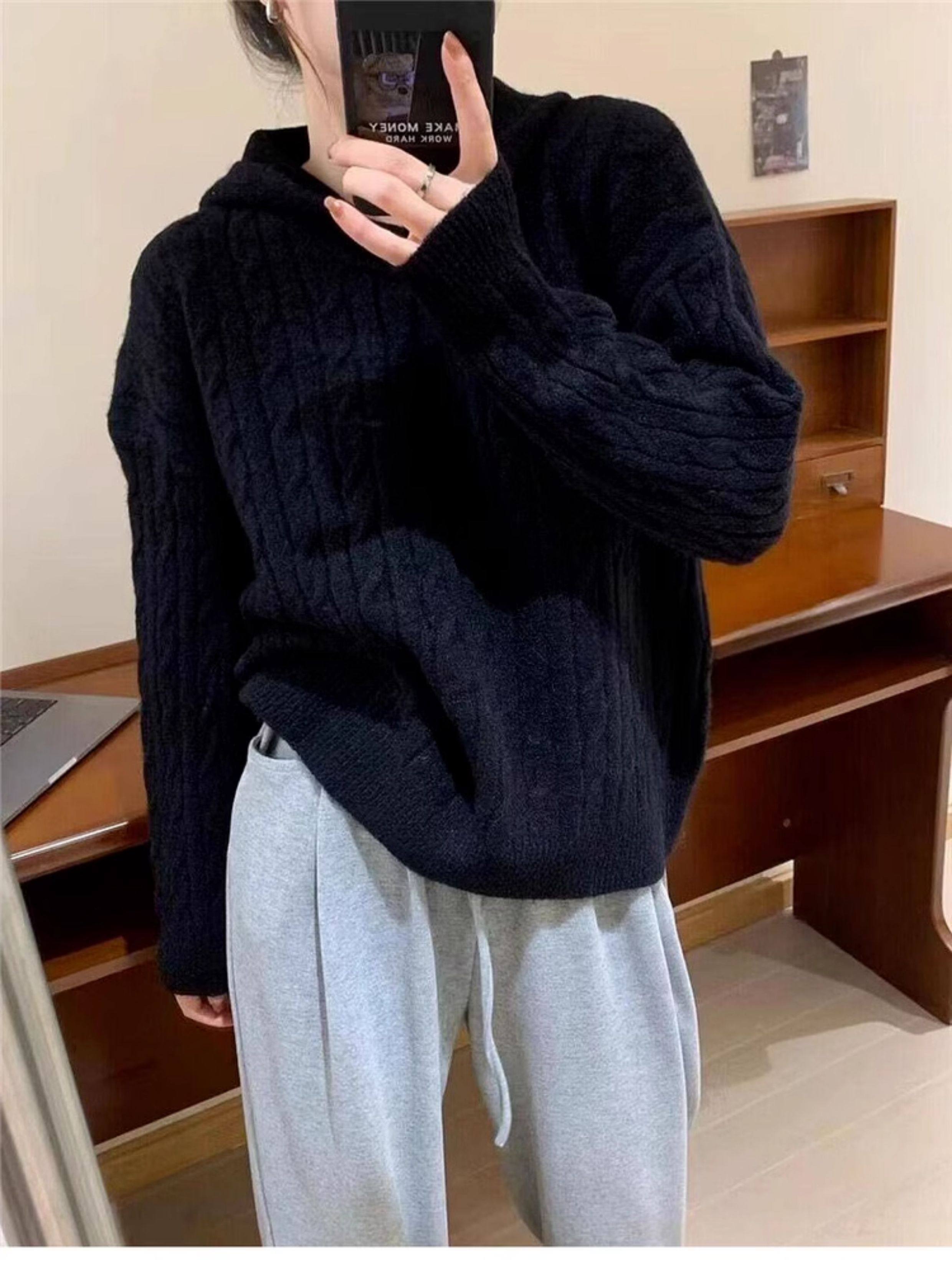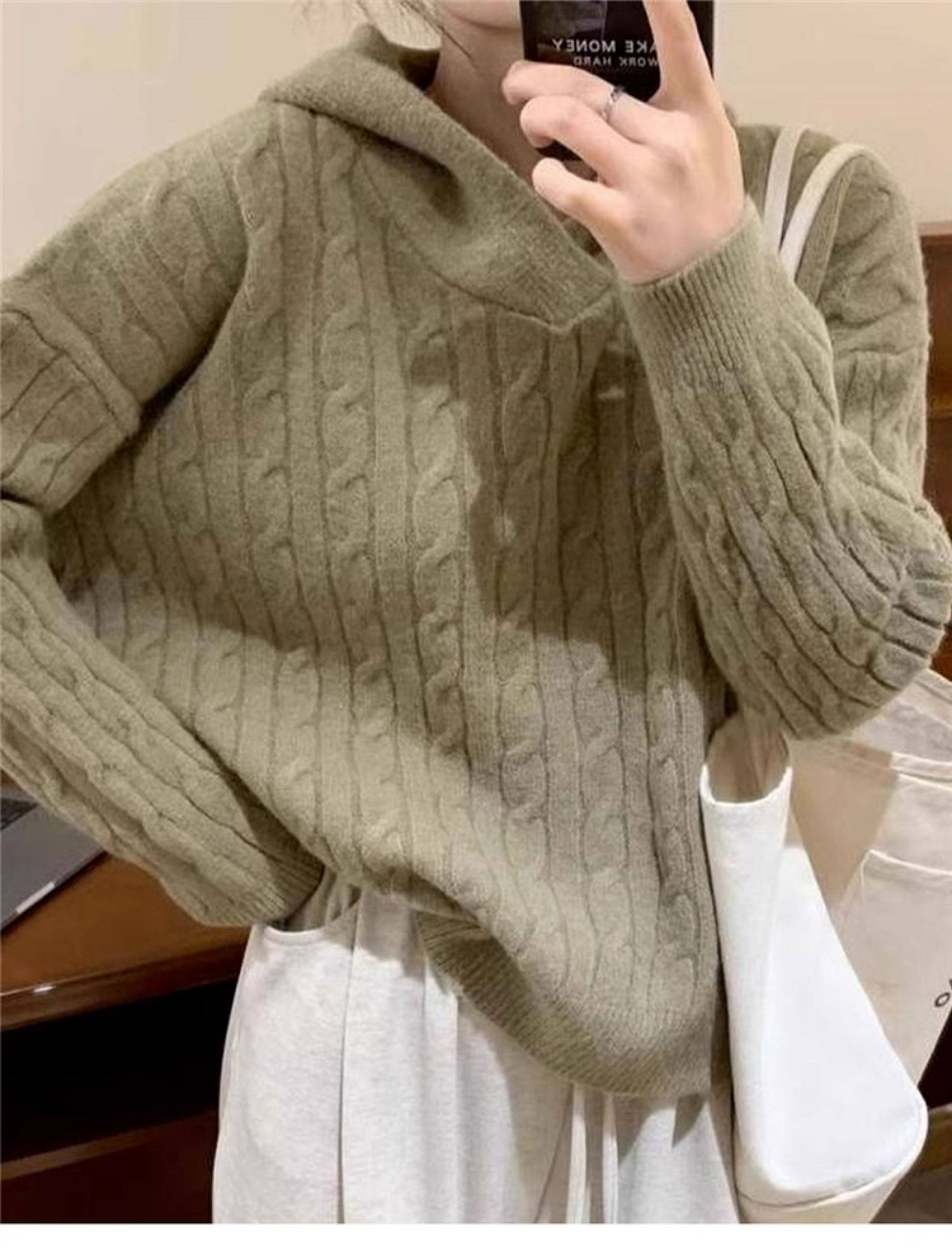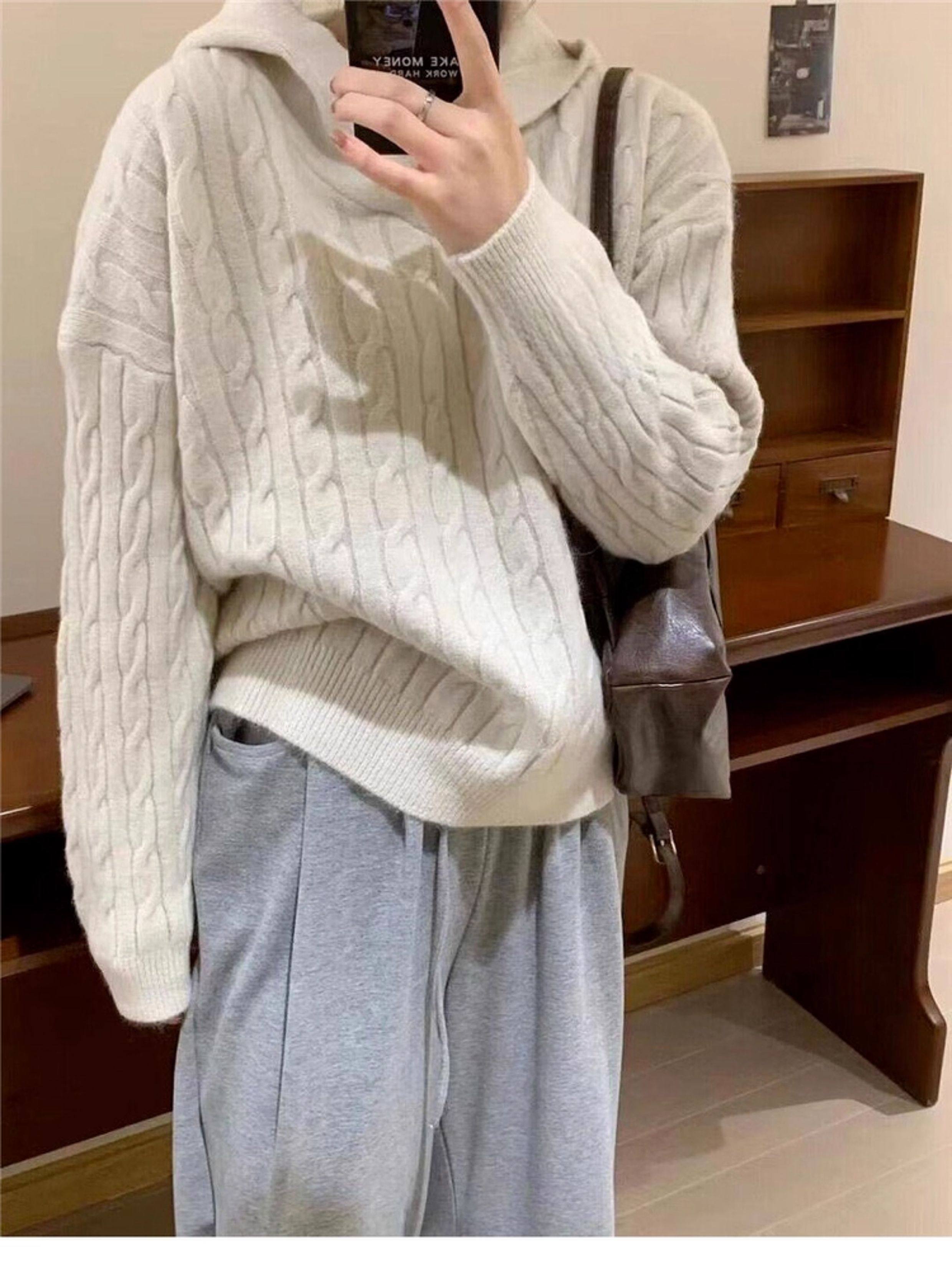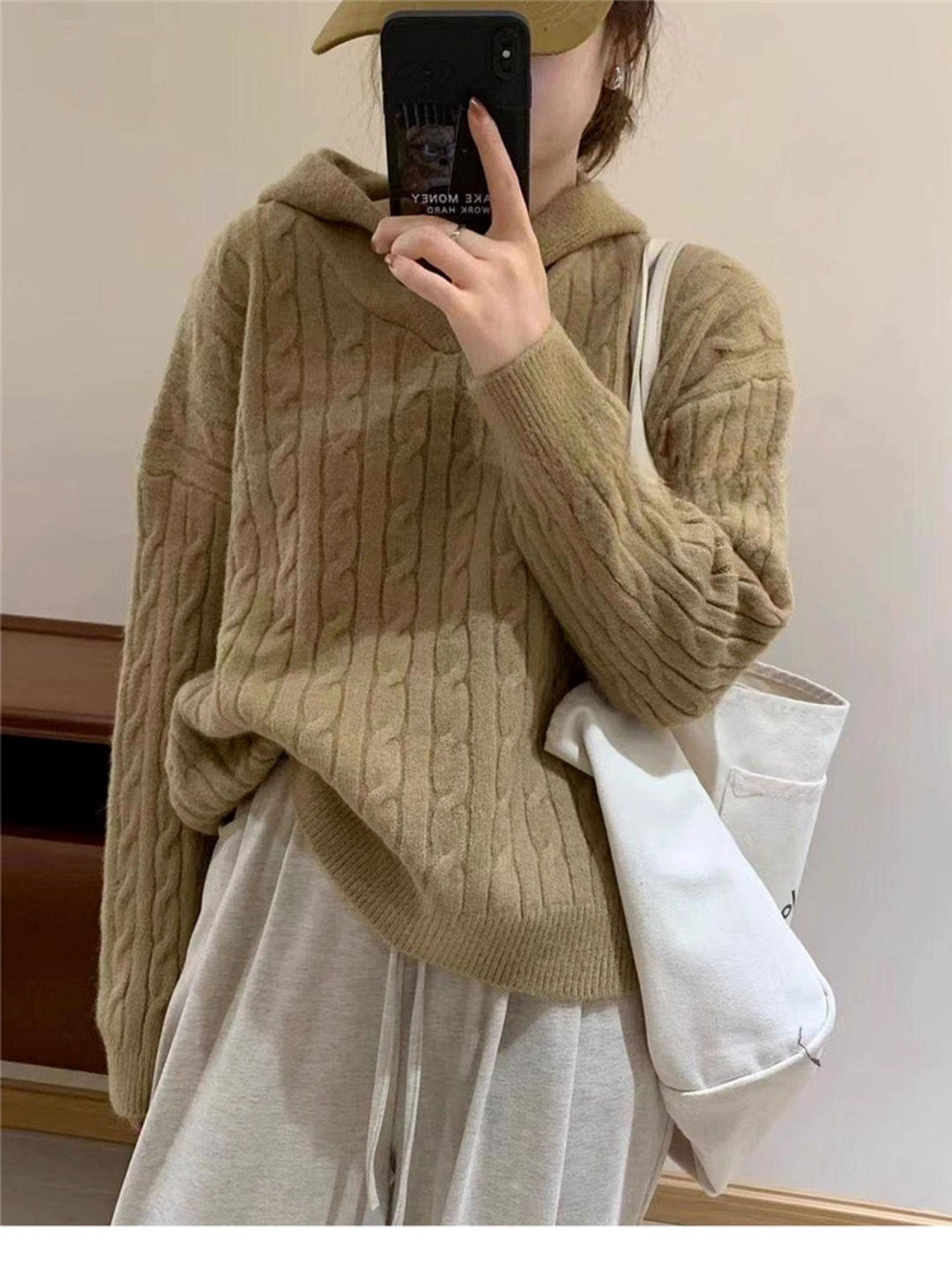 慵懶風復古灰色連帽針織毛衣女秋冬季2025新款小個子內搭打底上衣