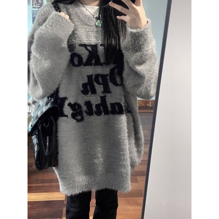 水貂絨毛衣女小個子秋冬加厚高級感寬松慵懶風軟糯奶fufu針織外套