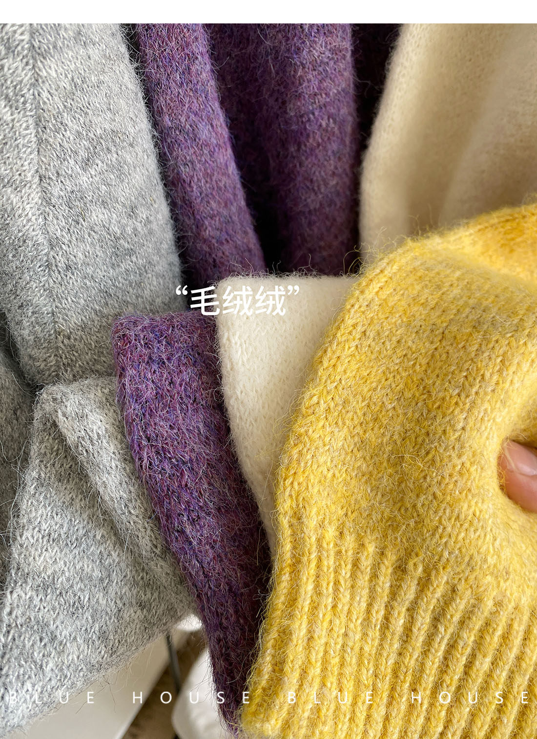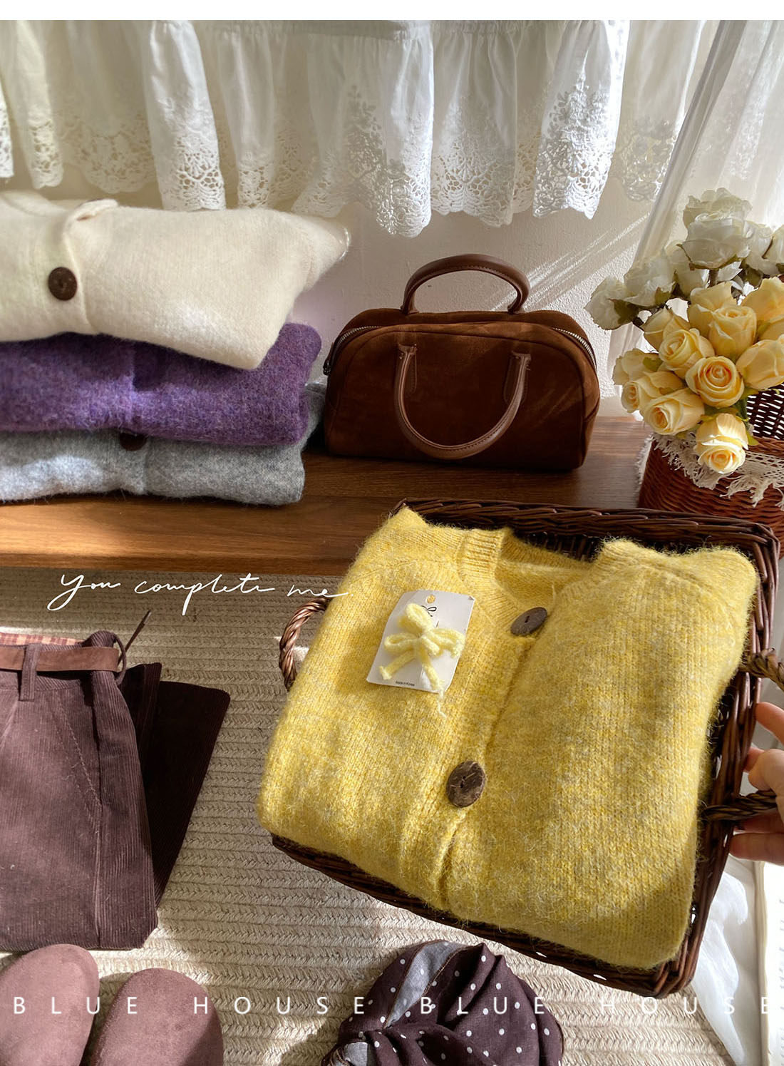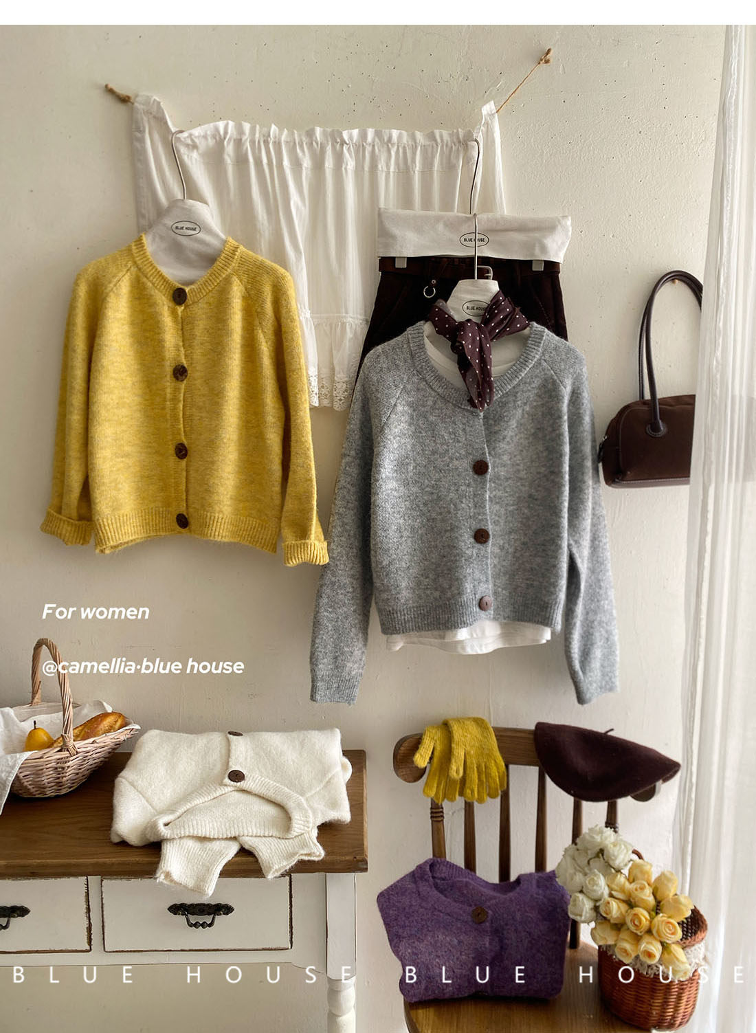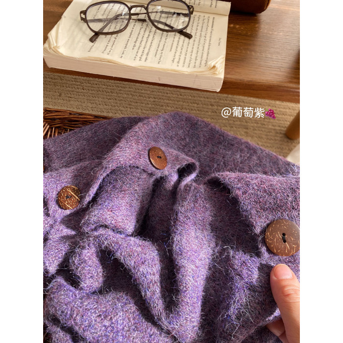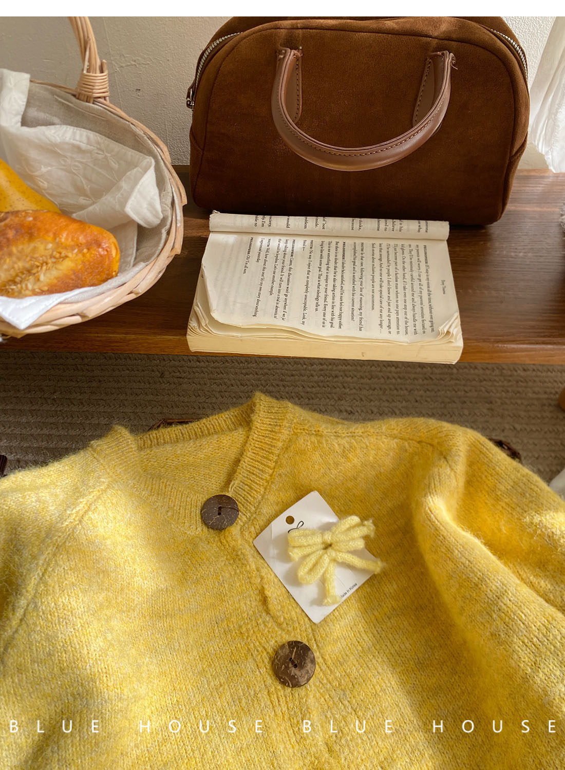 溫柔風黃色圓領針織毛衣女秋復古椰子釦小衆顯瘦休閒毛衣外套上衣