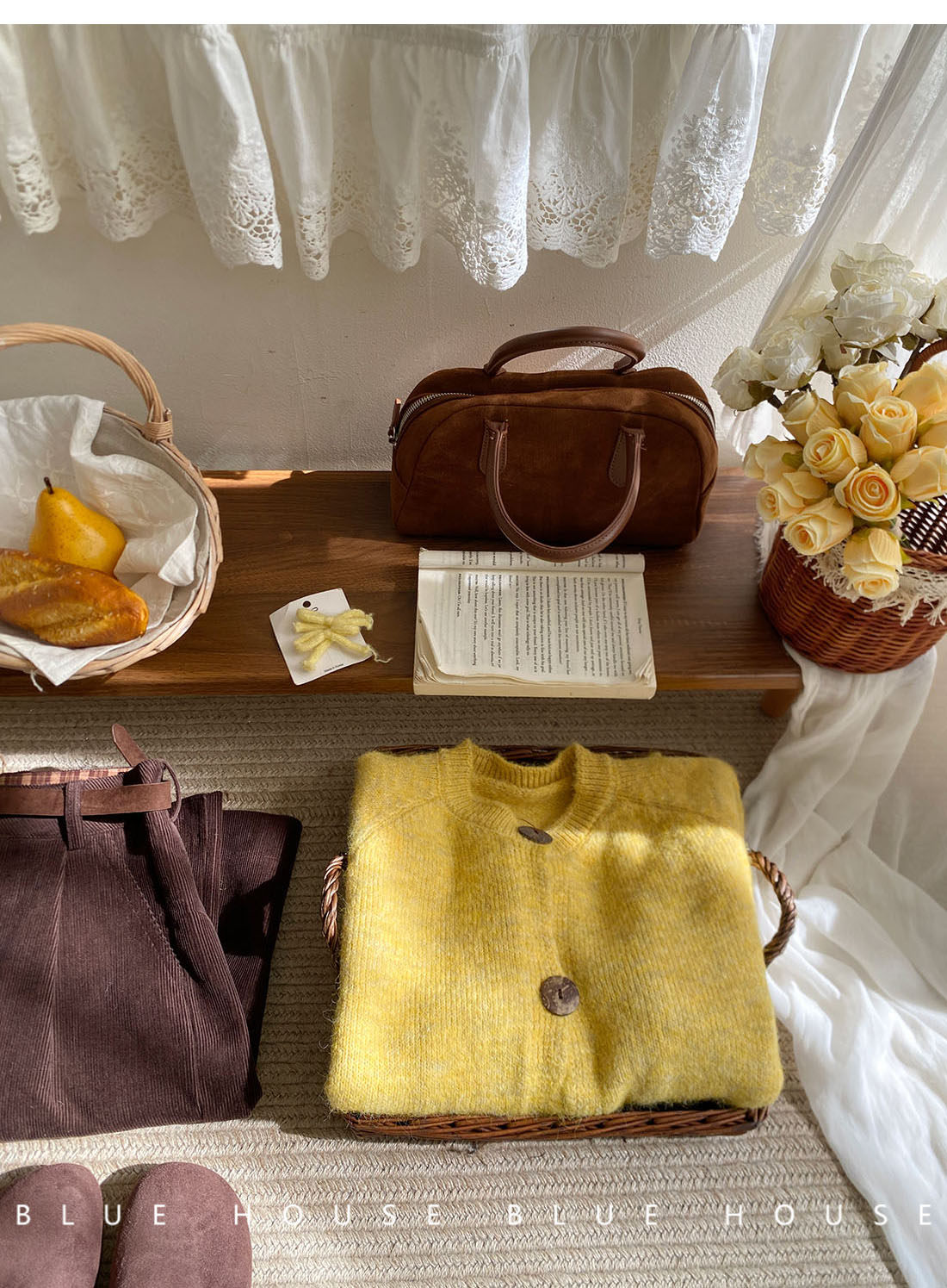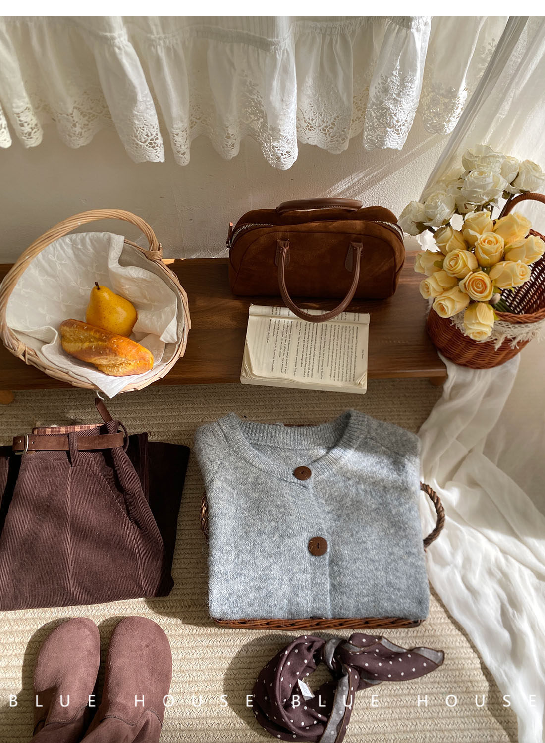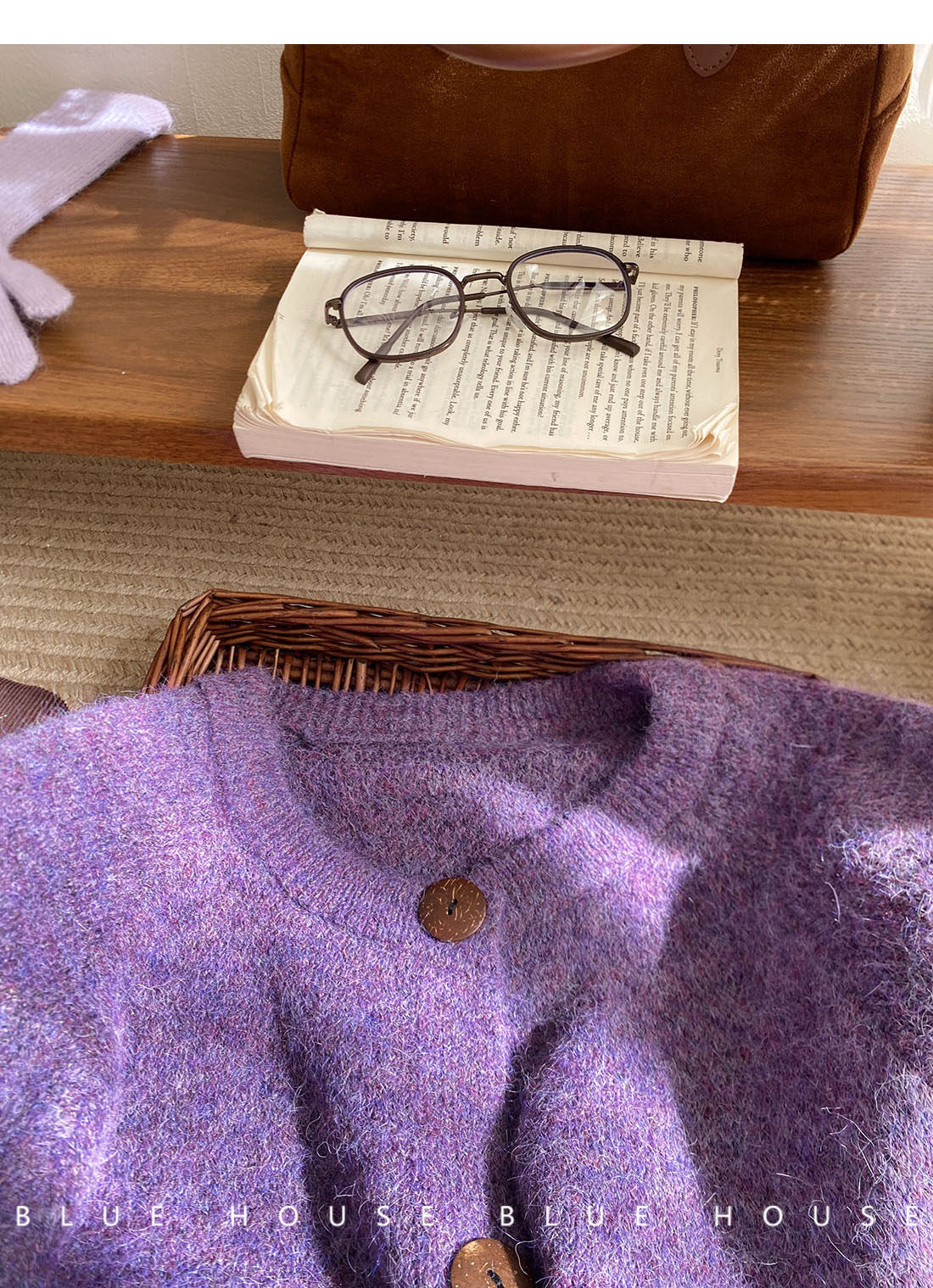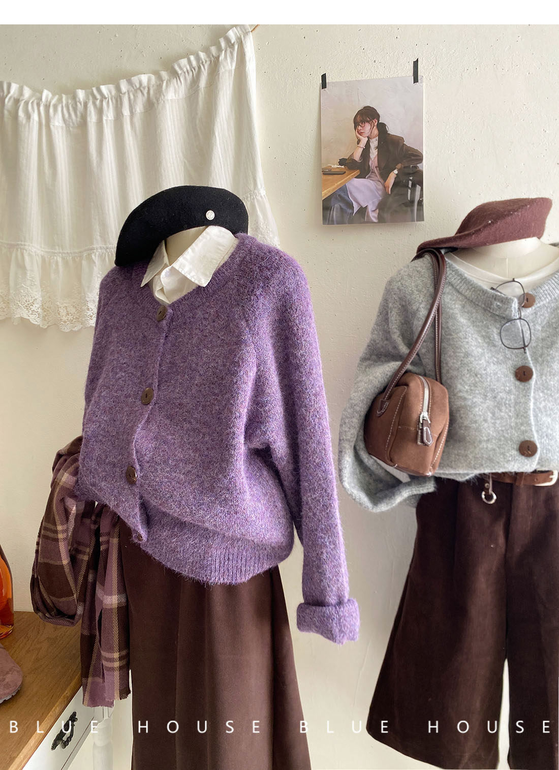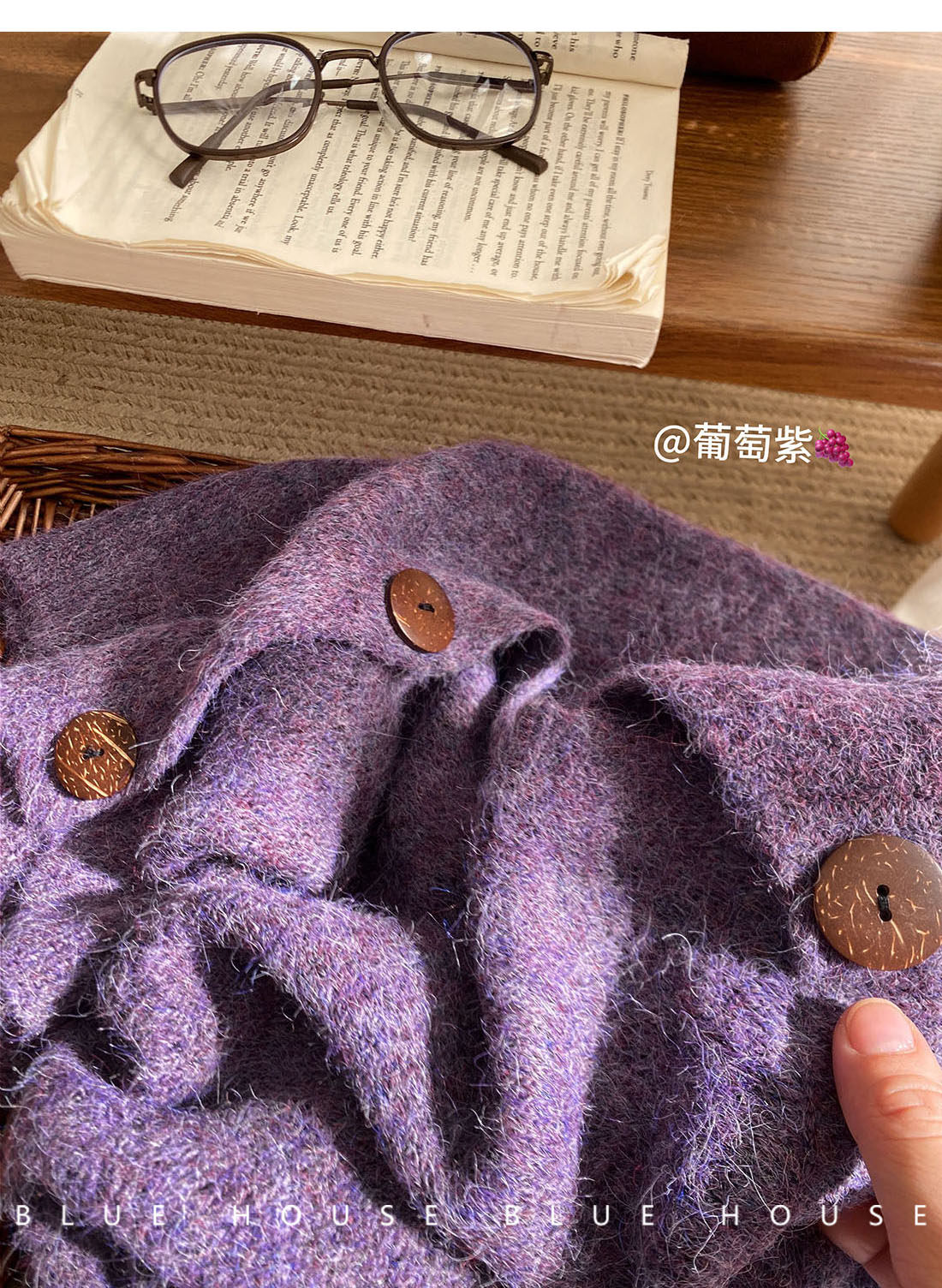 溫柔風黃色圓領針織毛衣女秋復古椰子釦小衆顯瘦休閒毛衣外套上衣