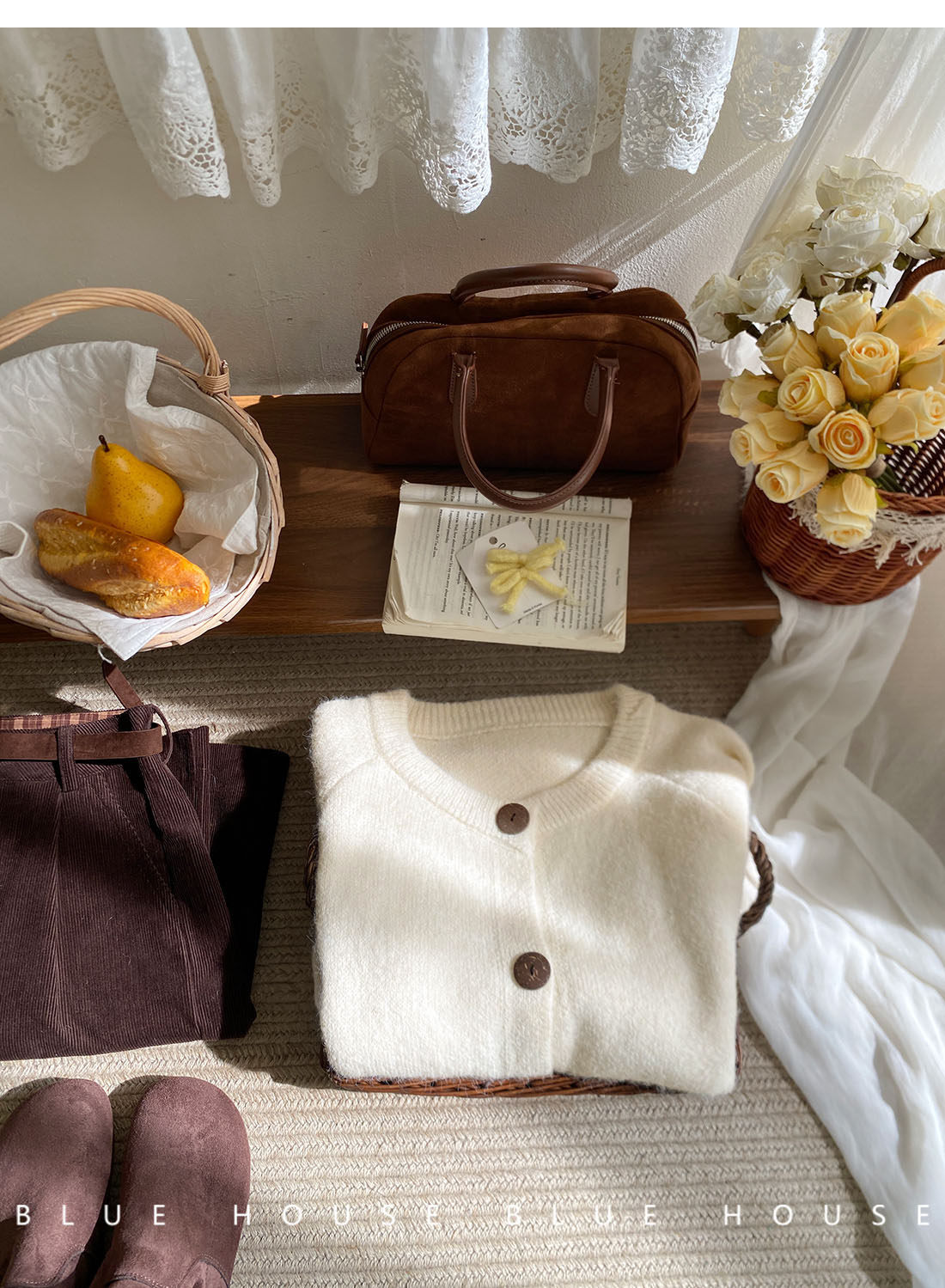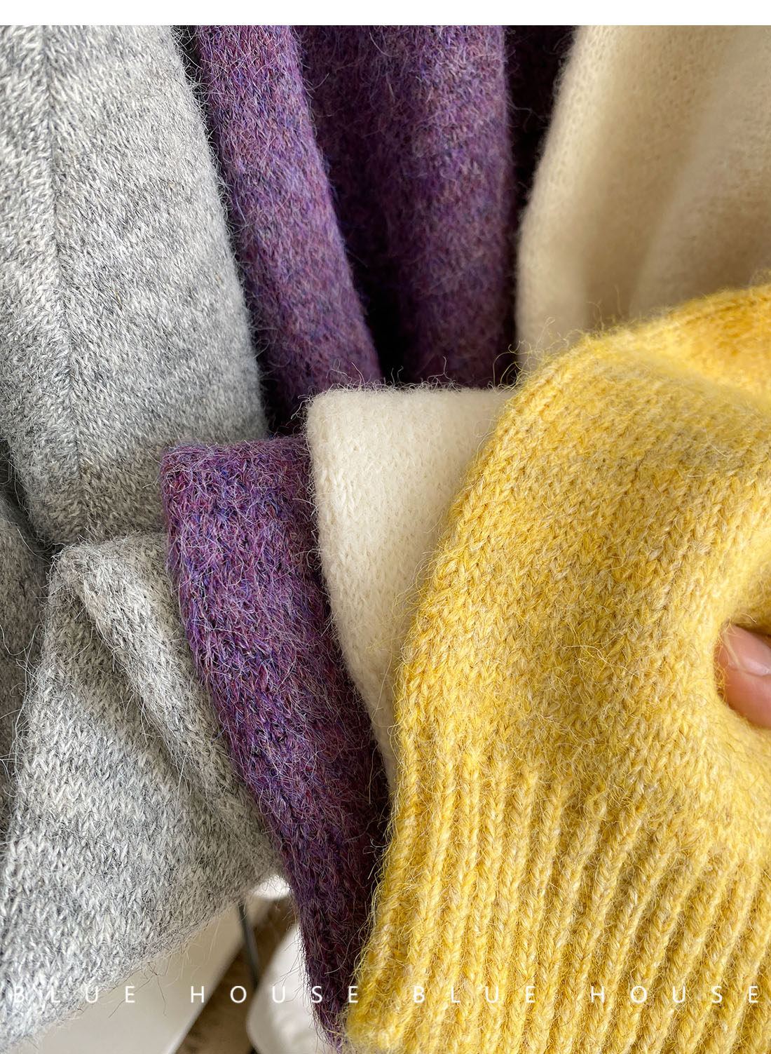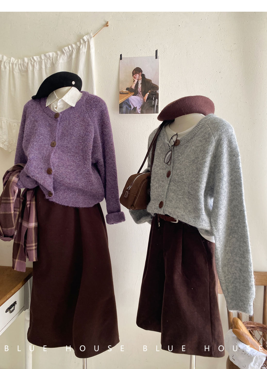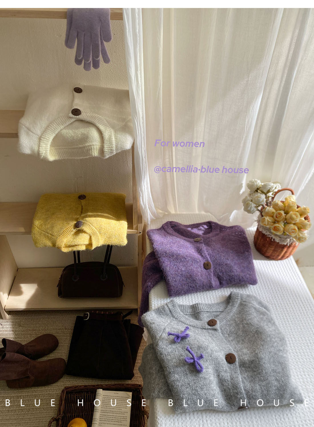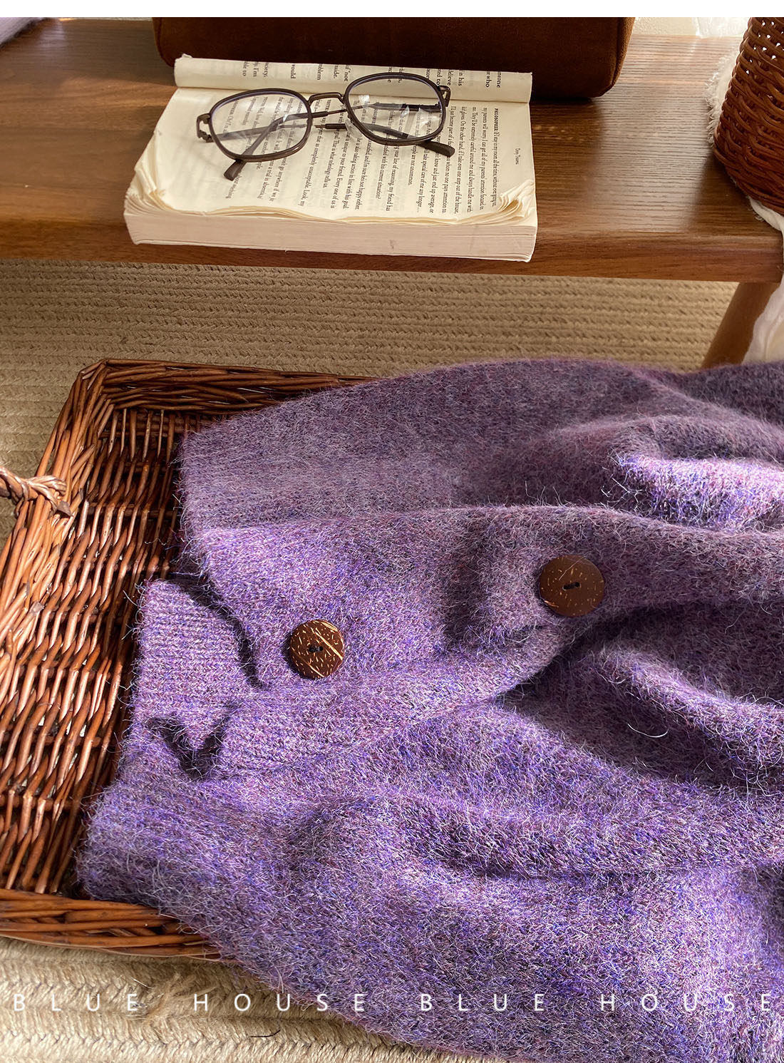 溫柔風黃色圓領針織毛衣女秋復古椰子釦小衆顯瘦休閒毛衣外套上衣
