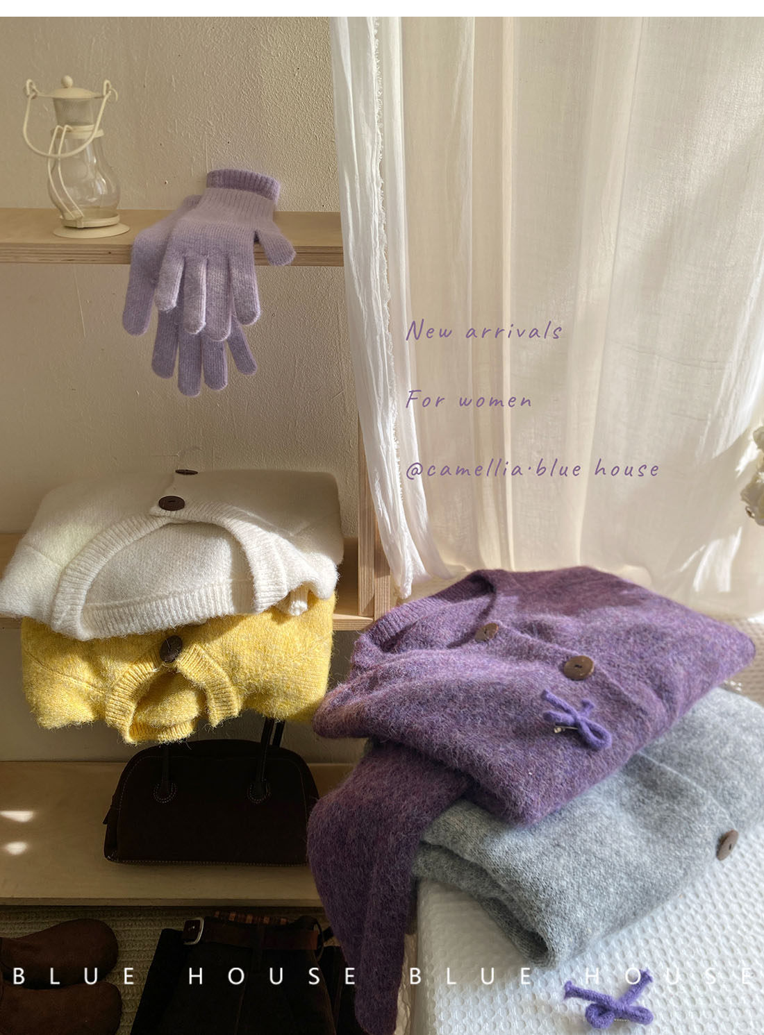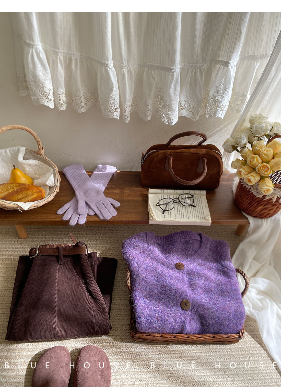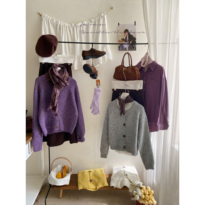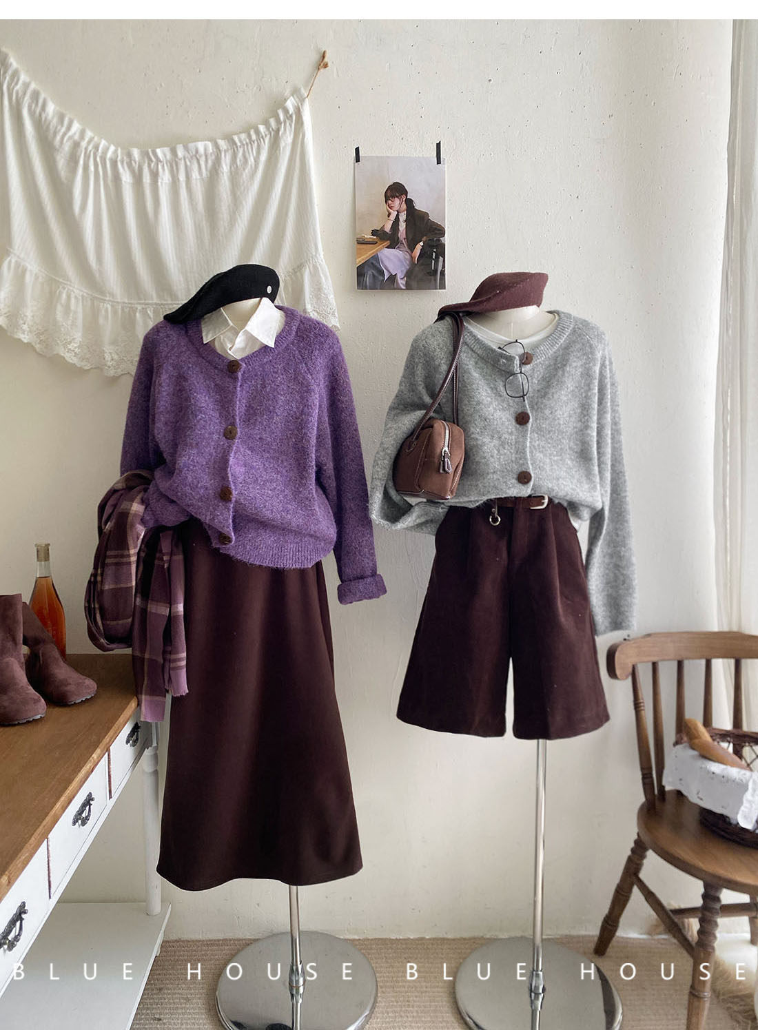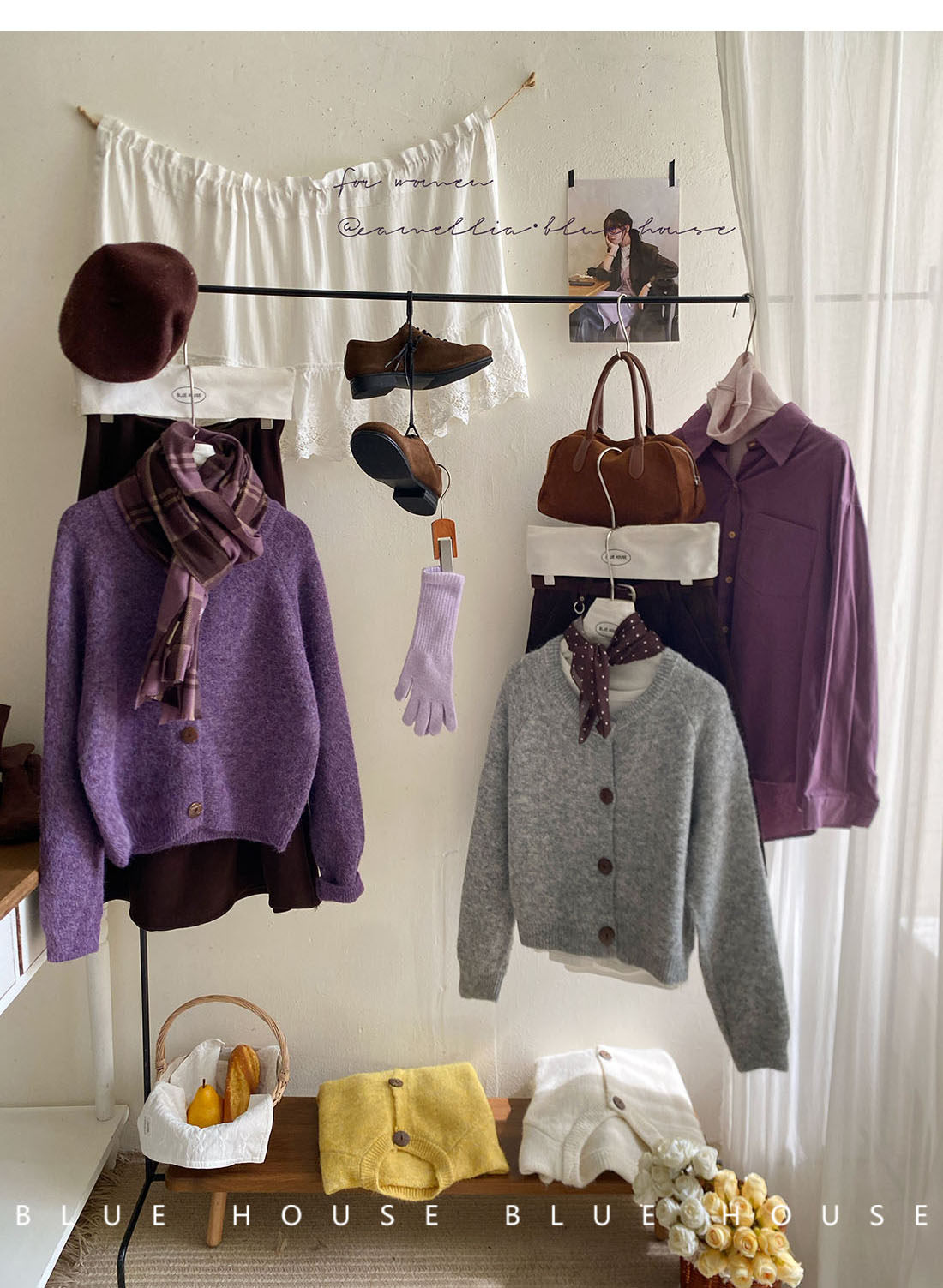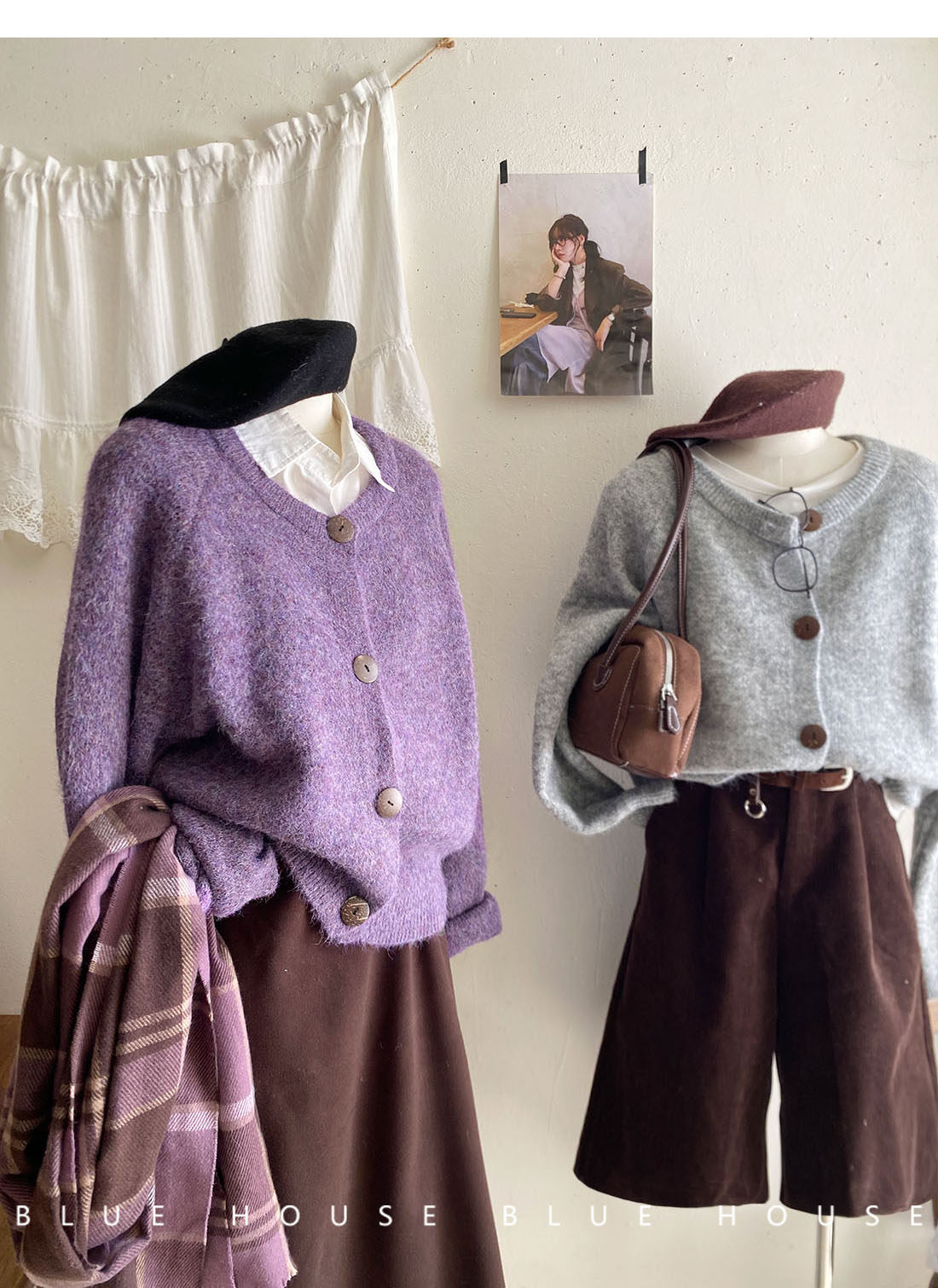 溫柔風黃色圓領針織毛衣女秋復古椰子釦小衆顯瘦休閒毛衣外套上衣