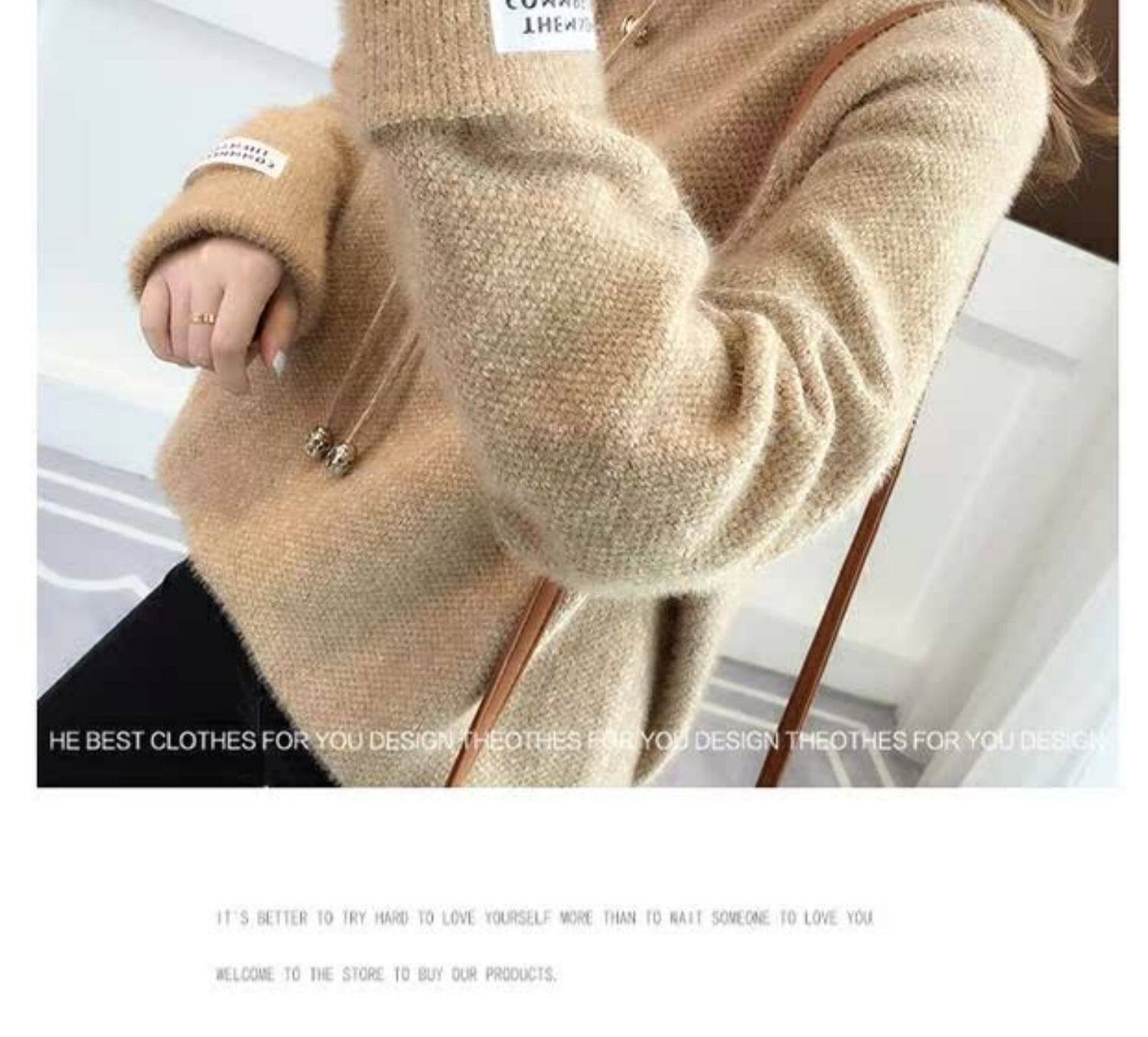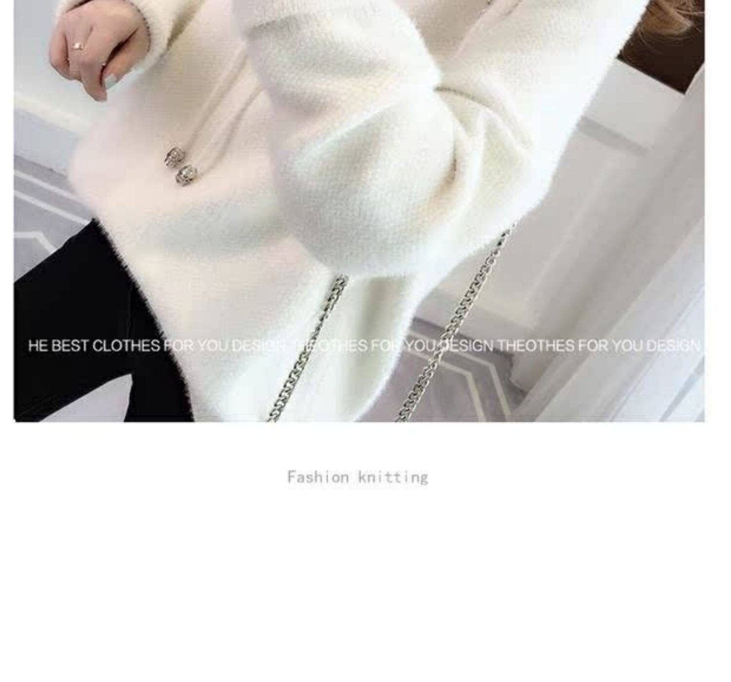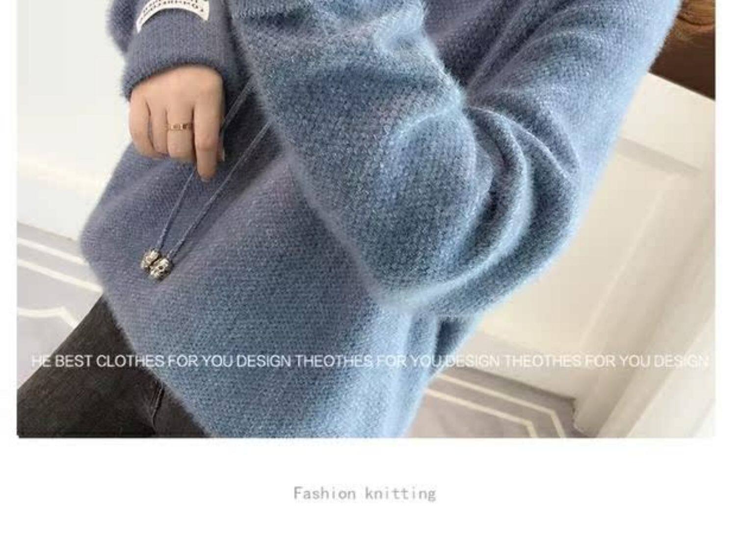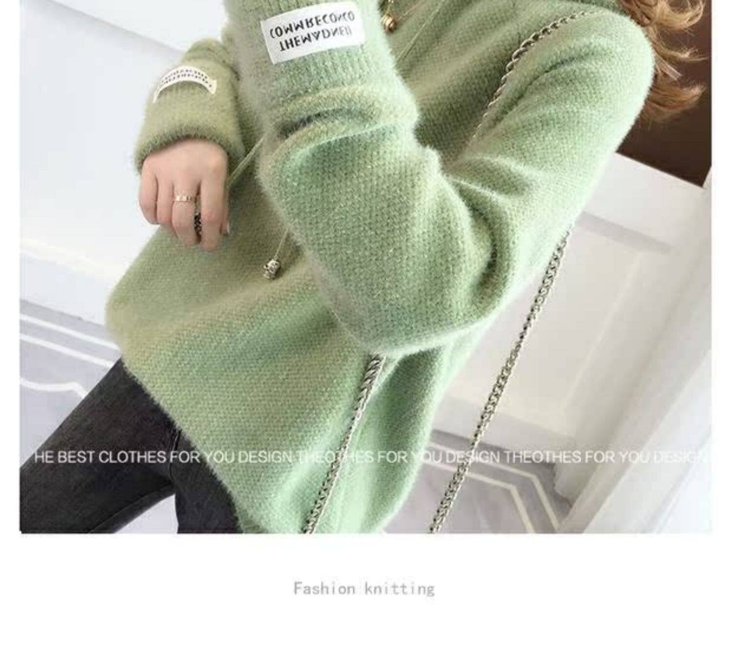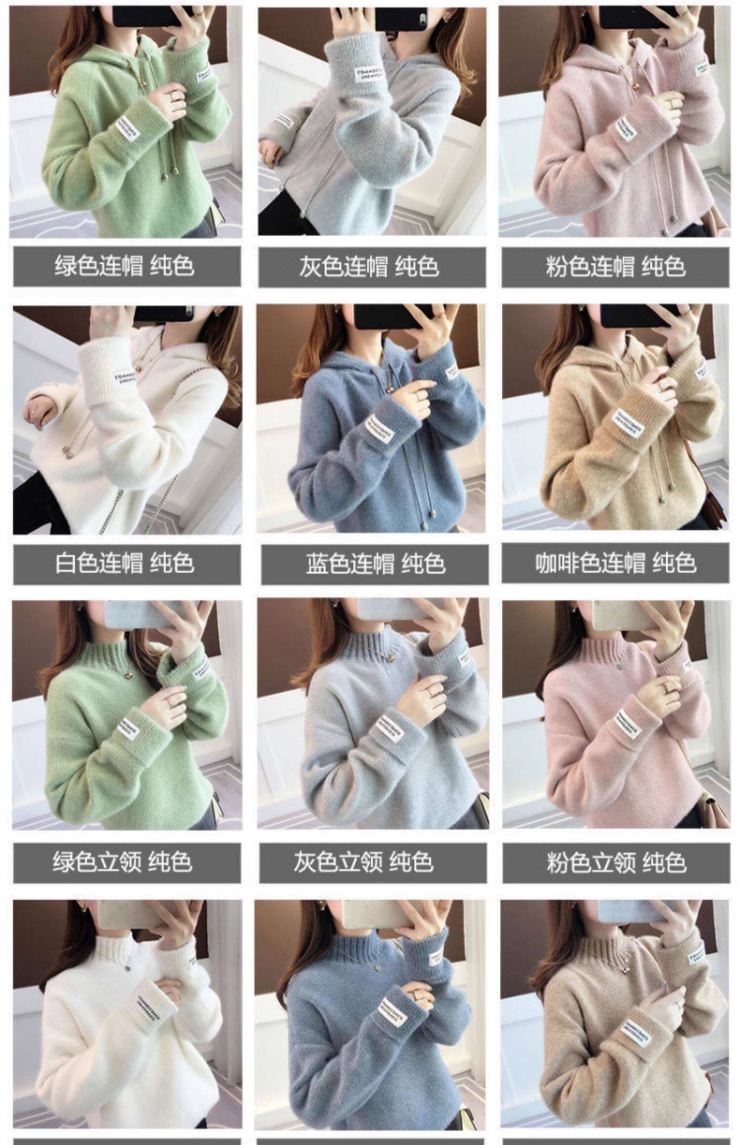 2025春秋新款毛衣女針織打底衫水貂絨寬松慵懶風外穿學生連帽衛衣