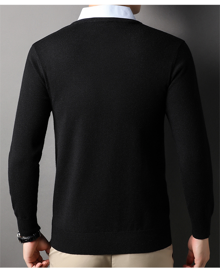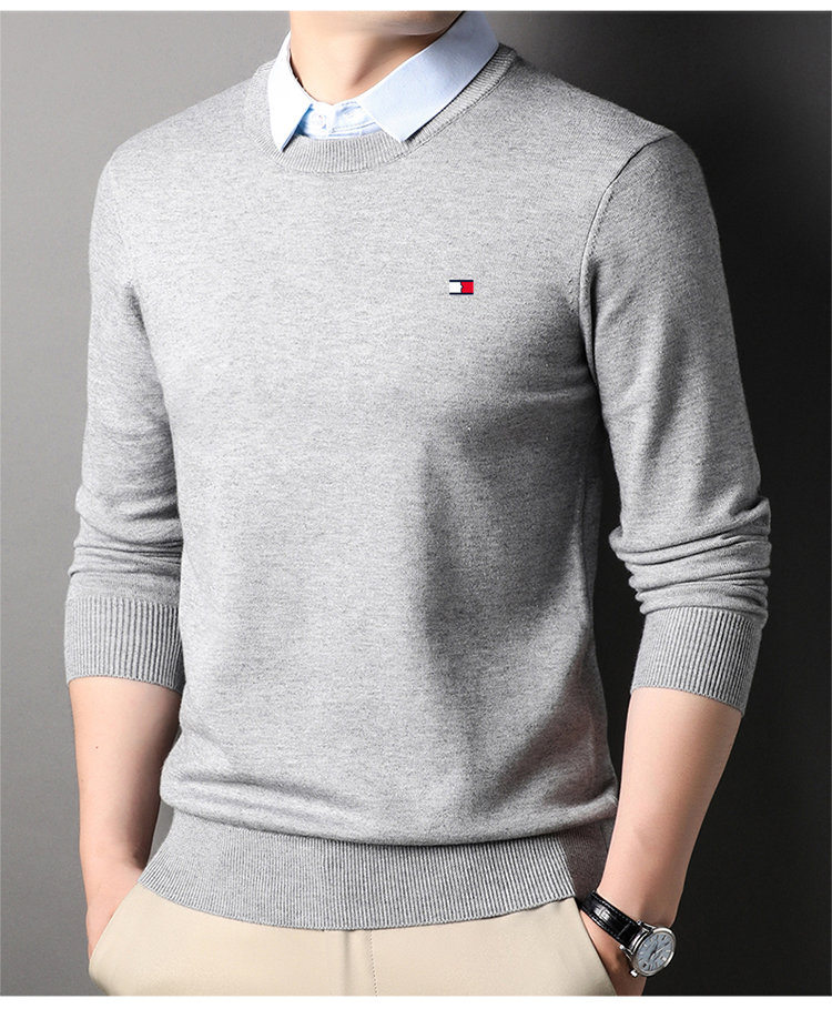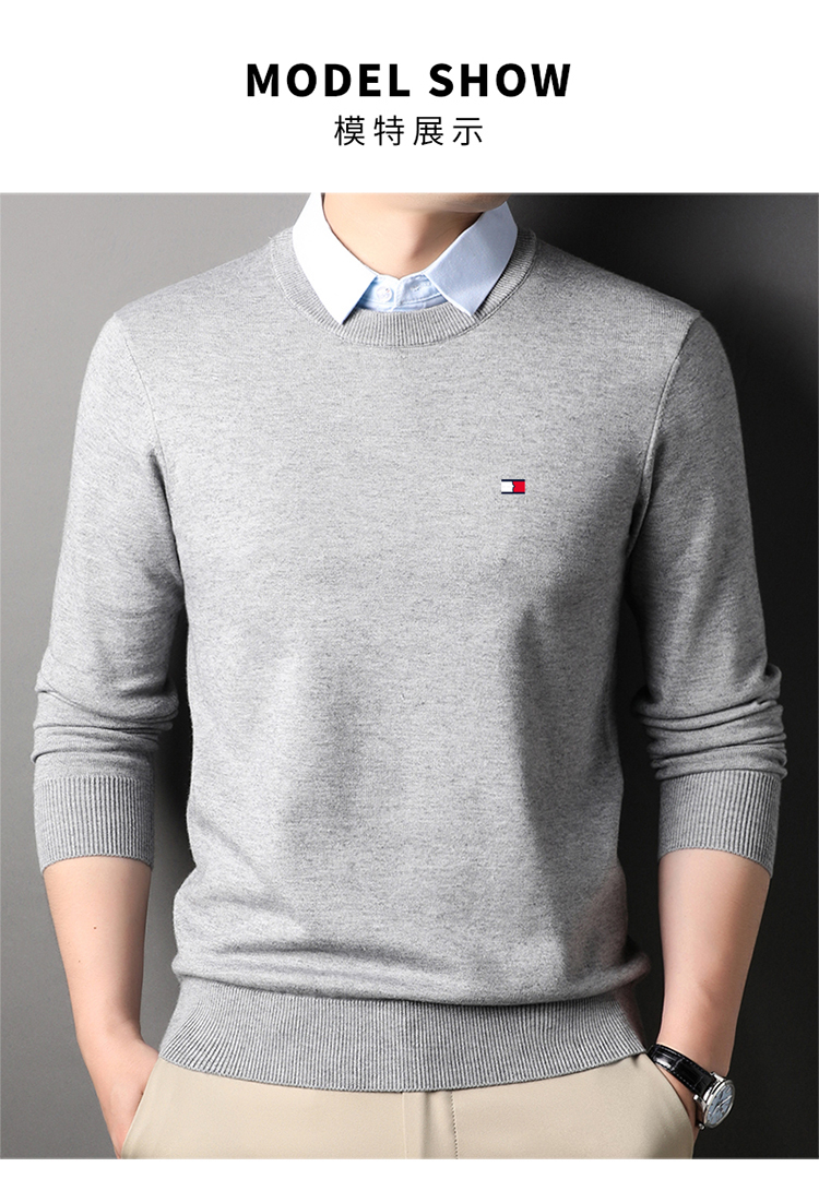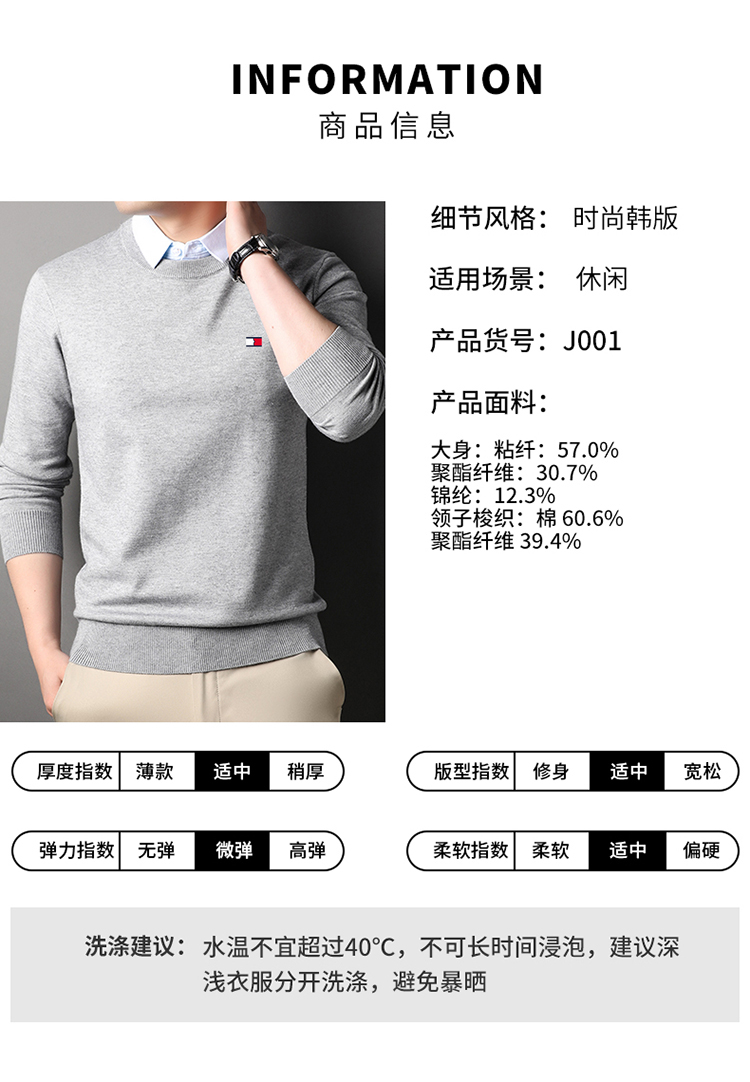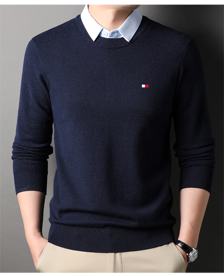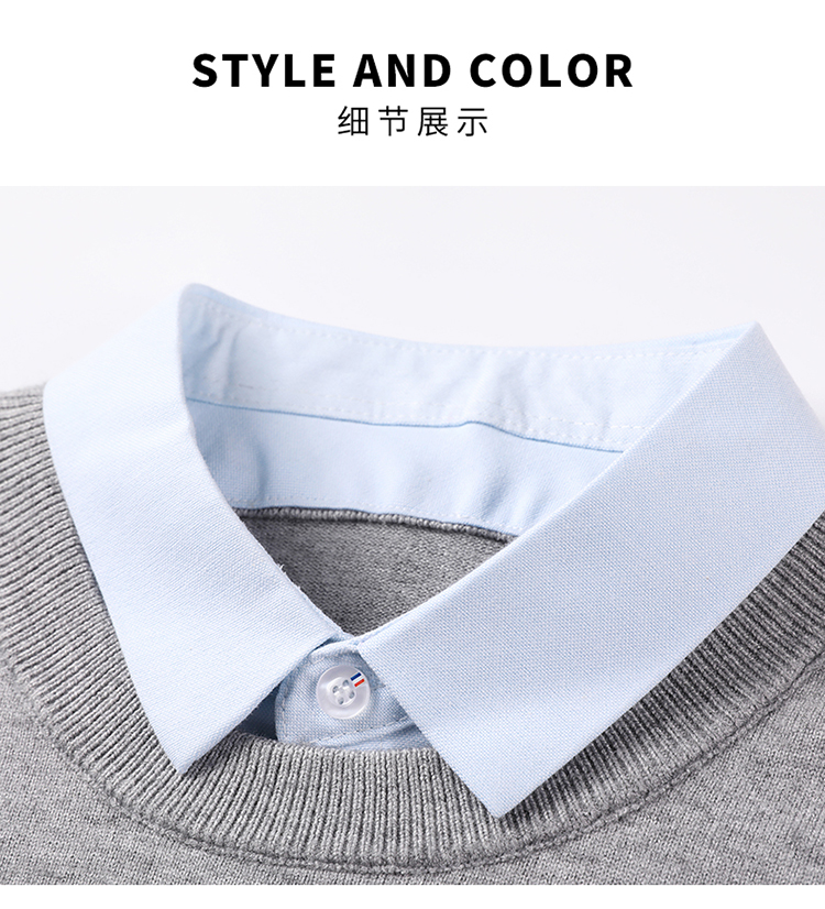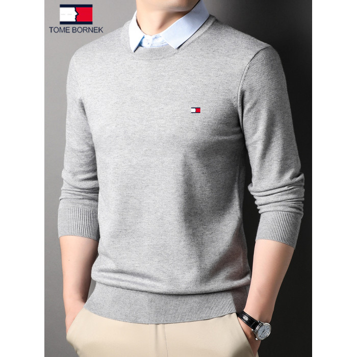 湯米希凱利秋冬季男士假兩件襯衫領毛衣保暖加厚款套頭針織衫休閒