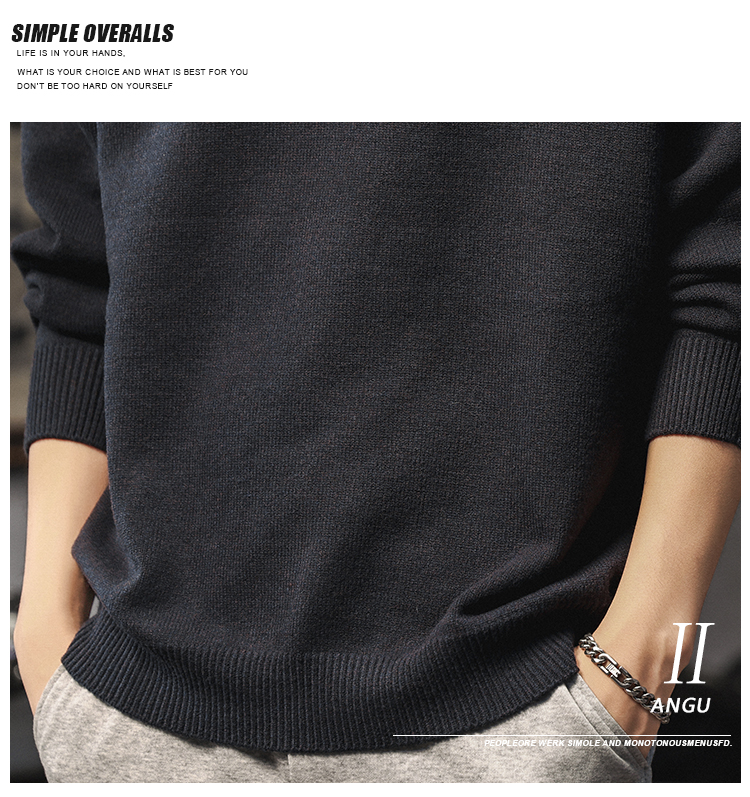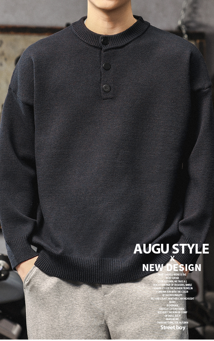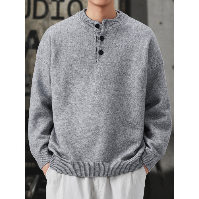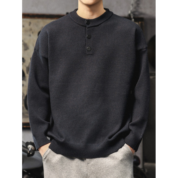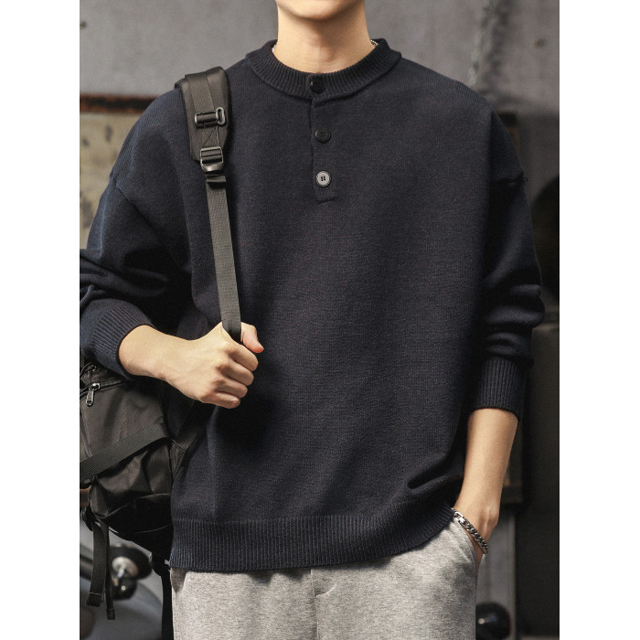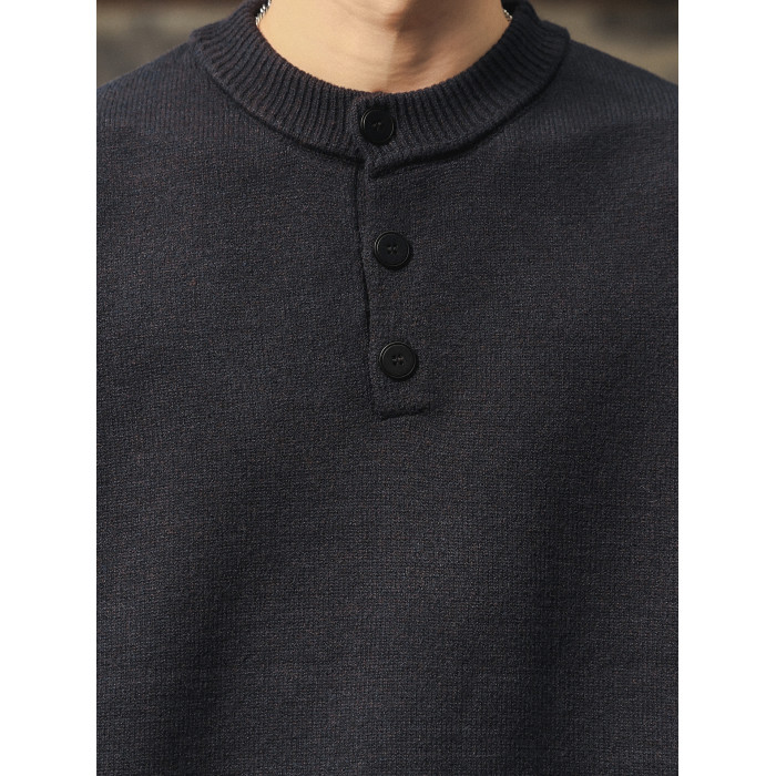 美式復古亨利領毛衣男輕熟風針織衫內搭冬季保暖男士黑色打底衫潮