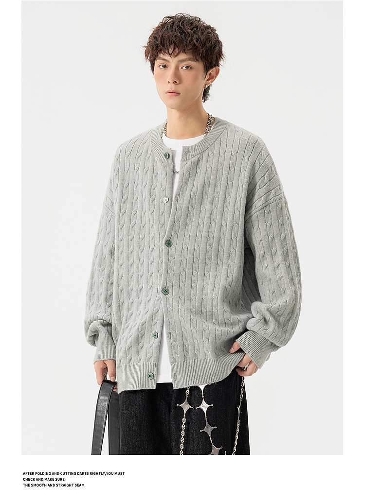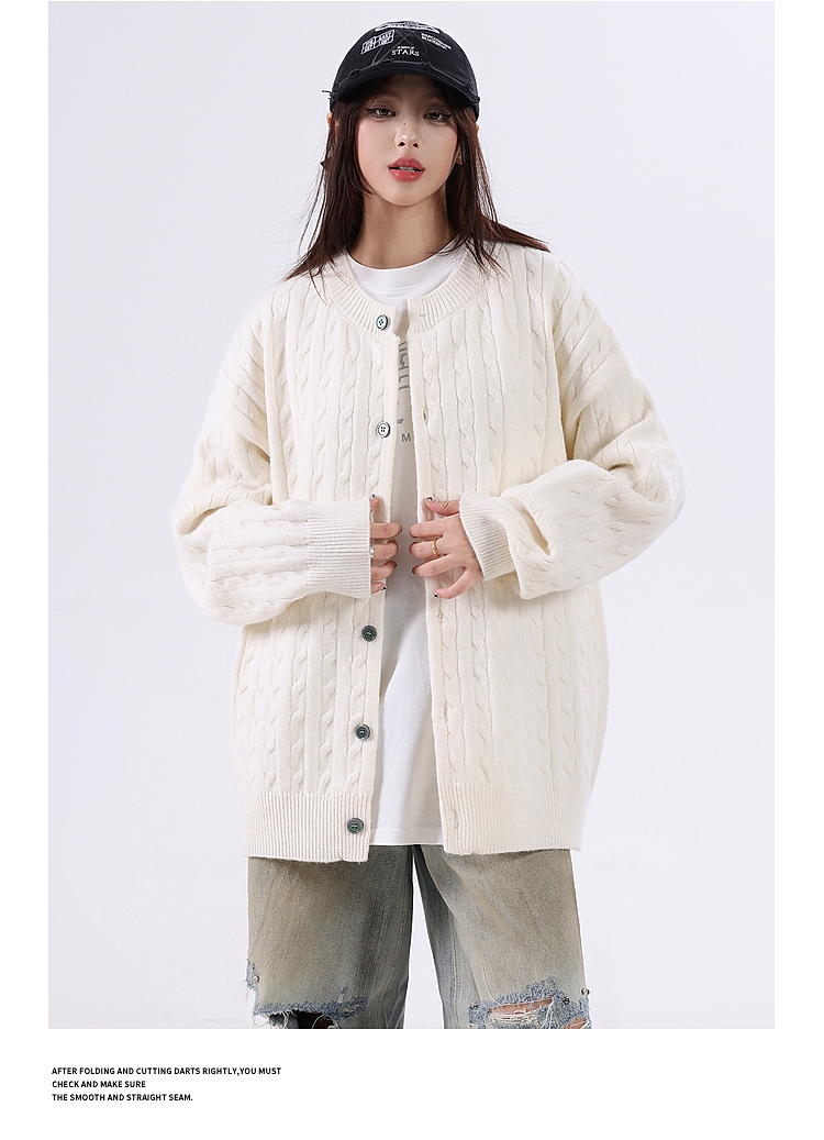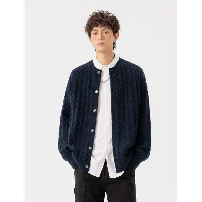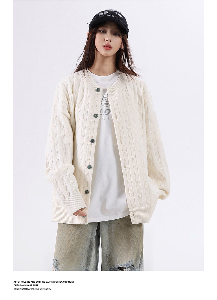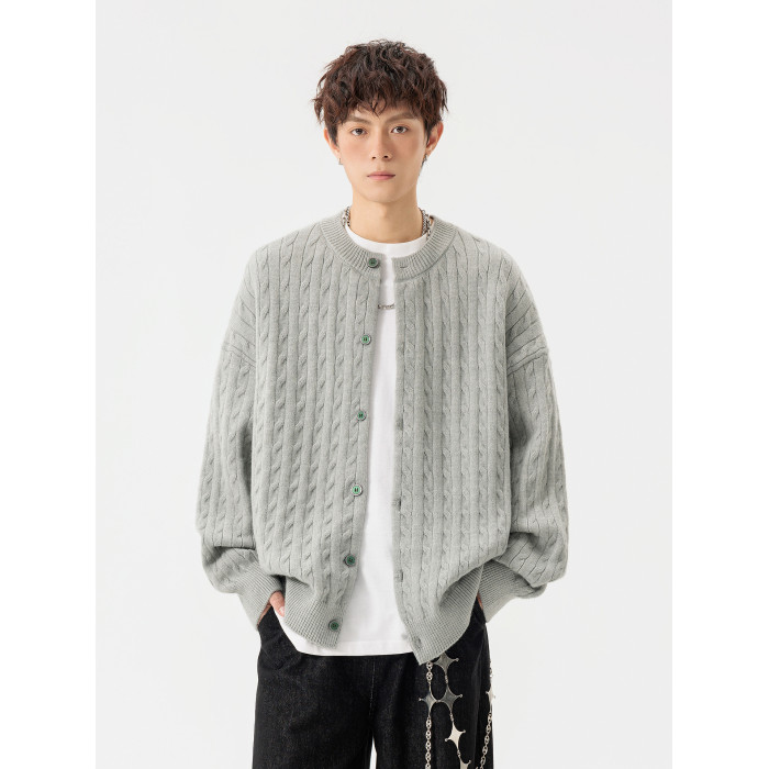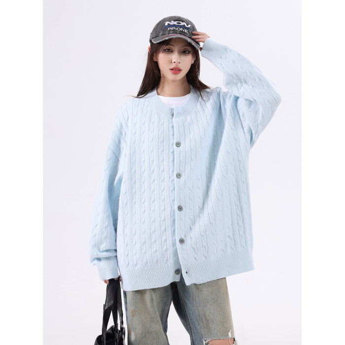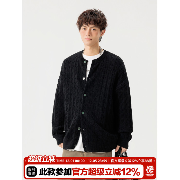 悟空有貨復古絞花紋理感開衫毛衣男女秋季慵懶寬松情侶休閒針織衫